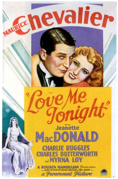 Love Me Tonight, poster, Maurice Chevalier, Jeanette MacDonald, 1932. (Photo by LMPC via Getty Images)