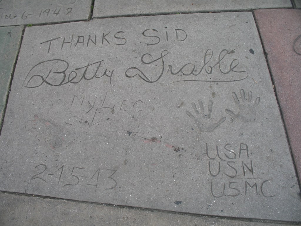 Additionally, Grable’s handprints and leg prints were immortalized in the forecourt of the TCL Chinese Theatre, located at 6925 Hollywood Blvd., Hollywood, California.