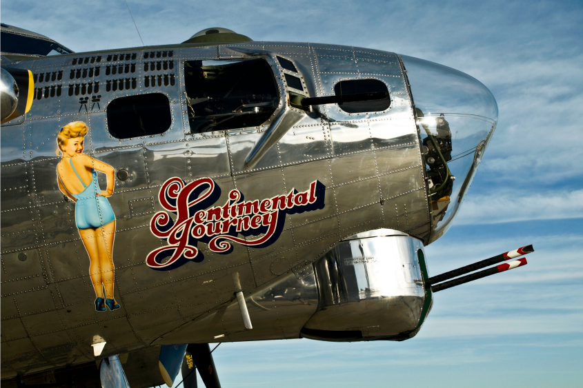 Grable’s image is featured as nose art on Sentimental Journey, a B-17G Flying Fortress bomber, based at the Commemorative Air Force Museum in Mesa, Arizona. The bomber is featured at various airshows throughout North America. The Commemorative Air Force Museum is located at 2017 N. Greenfield Rd., Mesa, Arizona.