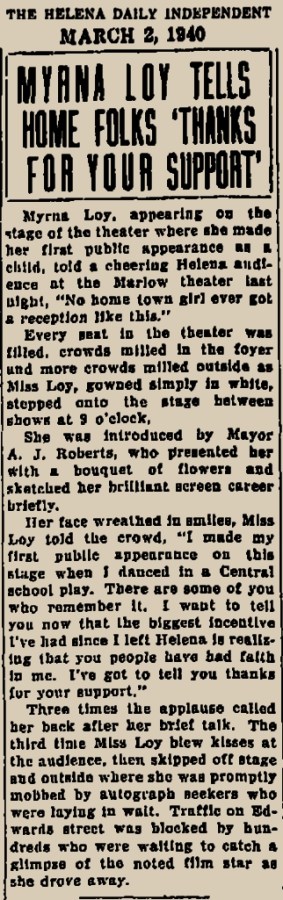 Marlow Theatre Myrna Loy Clipping March 2 1940