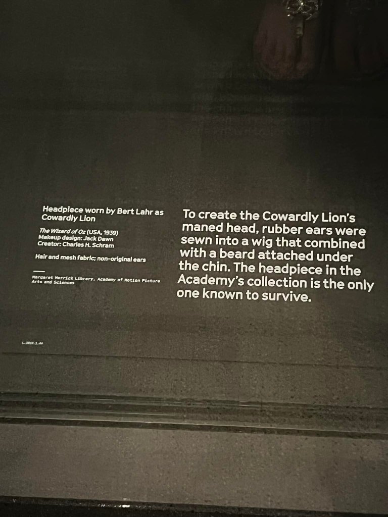 One of the Cowardly Lion’s manes is currently in the collection of the Academy Museum, which rotates its displays and exhibits often.
