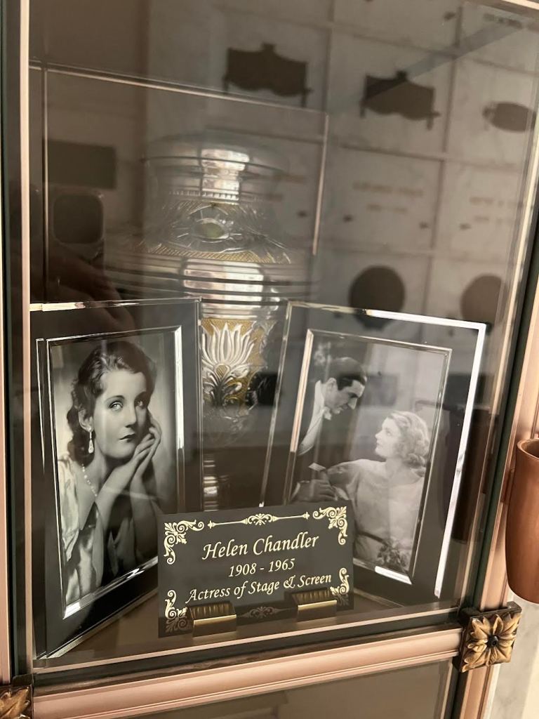 After a major fundraising effort led by researcher Jessica Wahl and Arthur Dark (of Hollywood Graveyard) and permission from her surviving family, Chandler’s ashes were relocated to the Cathedral Mausoleum at Hollywood Forever Cemetery in Los Angeles on July 13, 2023, where they can be viewed by the public.