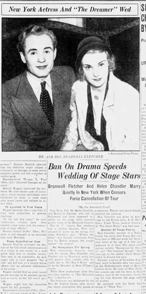 Chandler and Fletcher were married at Riverside Church in 1935, which stands at 490 Riverside Dr., New York, New York.