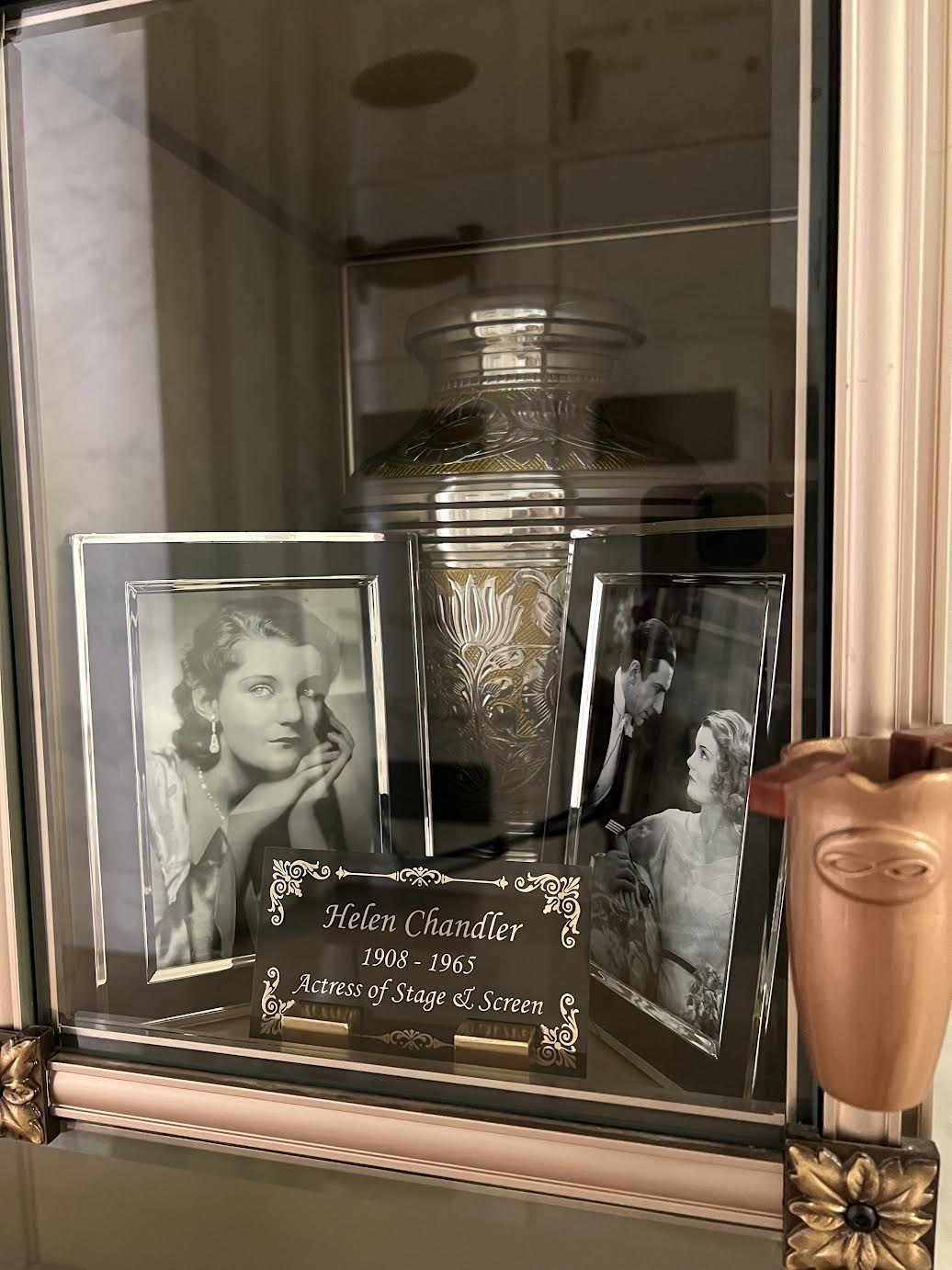 After a major fundraising effort led by researcher Jessica Wahl and Arthur Dark (of Hollywood Graveyard) and permission from her surviving family, Chandler’s ashes were relocated to the Cathedral Mausoleum at Hollywood Forever Cemetery in Los Angeles on July 13, 2023, where they can be viewed by the public.