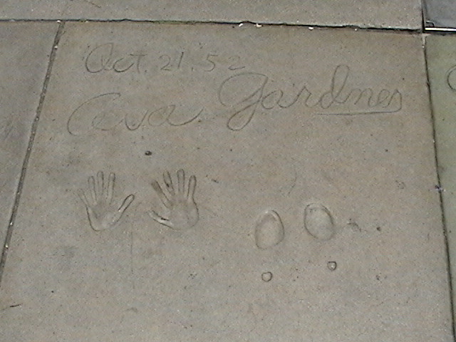 Gardner’s handprints are located in the forecourt of TCL Chinese Theatre at 6925 Hollywood Blvd., Hollywood, California.