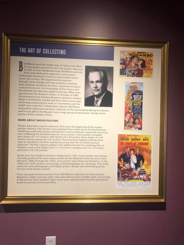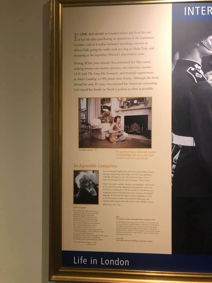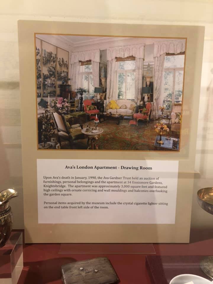 The Ava Gardner Museum is located at 325 E. Market St., Smithfield, North Carolina. The Museum organizes the Ava Gardner Festival annually, usually featuring the unveiling of new exhibits, a musical tribute to Gardner, films, and heritage tours.