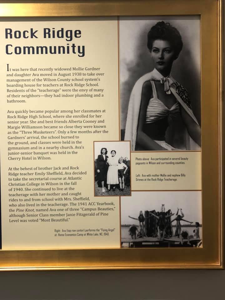 Following her father’s death, the family moved once again, this time to Rock Ridge, close to Wilson, North Carolina. There, Gardner attended high school, graduating in 1939. After graduation, Gardner went on to take secretarial courses at Atlantic Christian College.