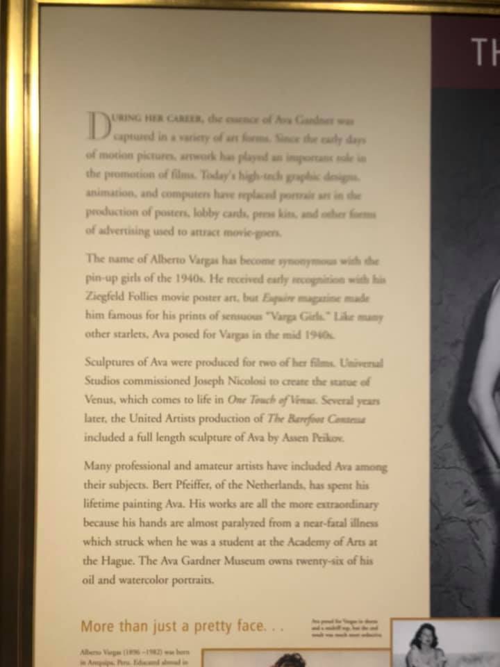 Today, there are numerous tributes to Gardner and her legacy in her hometown and beyond. One of the finest tributes to Gardner is the Ava Gardner Museum, located in her hometown, featuring an extensive collection from Gardner’s on- and off-screen life. The collection showcases personal effects, family heirlooms, movie costumes, and more, in addition to exciting exhibits, programs, and podcasts that celebrate the life of Gardner. With Gardner’s centennial coming up at the end of the year, there are many fine events and tributes to Gardner ahead.