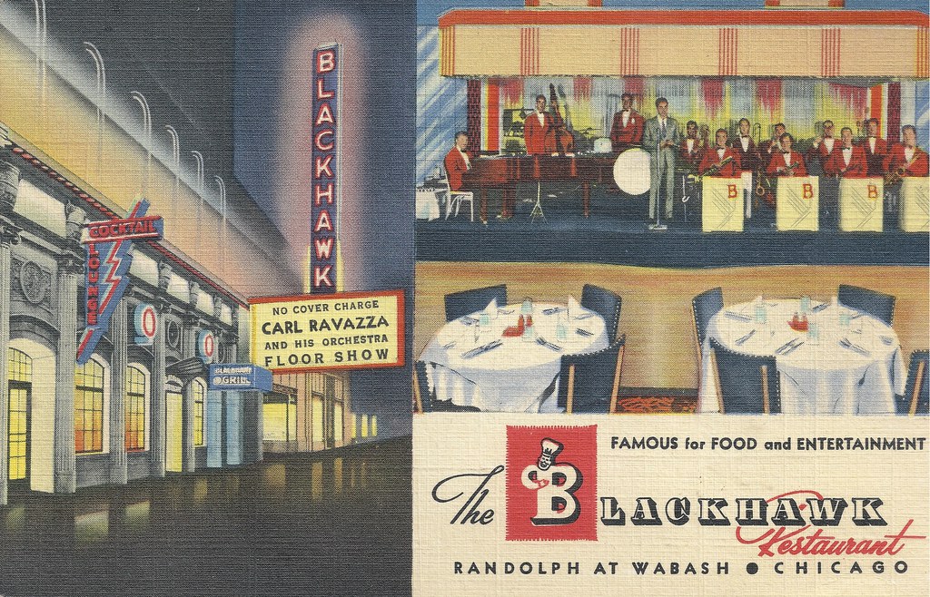 The Blackhawk Restaurant operated at 139 N. Wabash Ave., Chicago, Illinois. While the restaurant no longer remains, the building still stands.