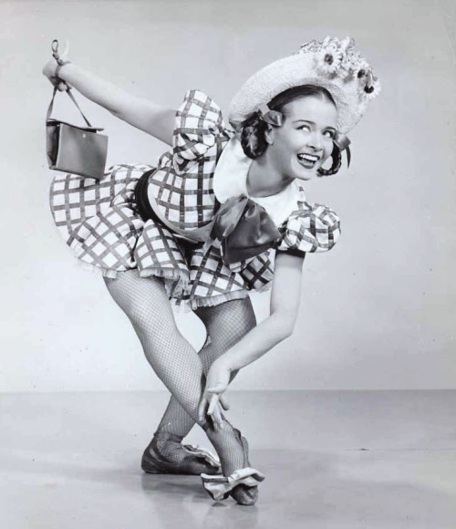 In 1940, McCracken married dancer Jack Dunphy and the couple moved to New York, where they both found work. She danced as part of Radio City Musical’s ballet, Jacob’s Pillow in ballet company in Massachusetts, and Eugene Loring’s Dance Players. McCracken and Dunphy later auditioned for Rodgers and Hammerstein’s Away We Go, securing anonymous dance roles in the show. As work on the show progressed, the name of the musical was changed to Oklahoma!, in which McCracken was crafting a more noticeable personality for her given role of Sylvie. Due to the pratfalls her character made in the “Many a New Day” dance sequence, McCracken was dubbed “The Girl Who Falls Down.”