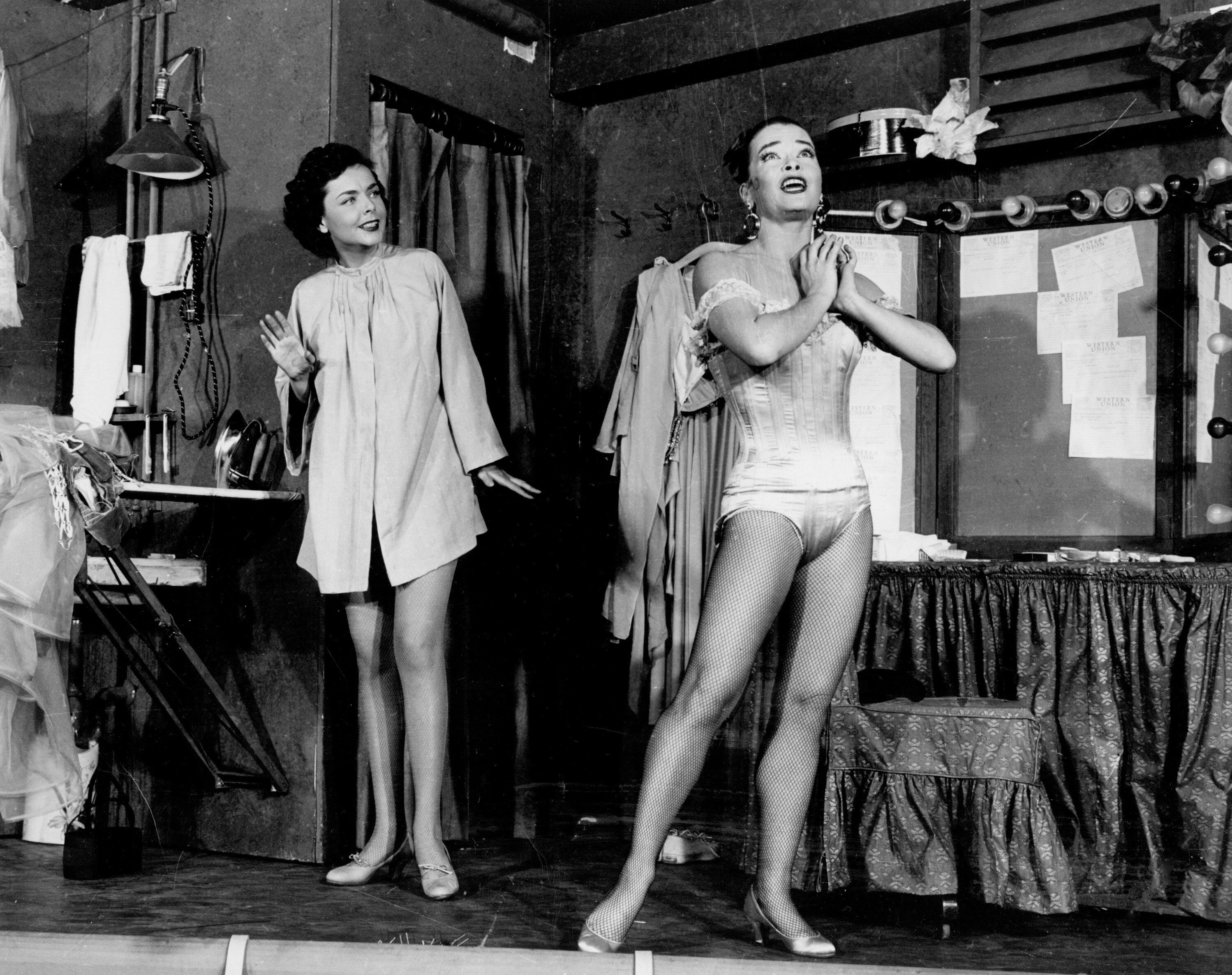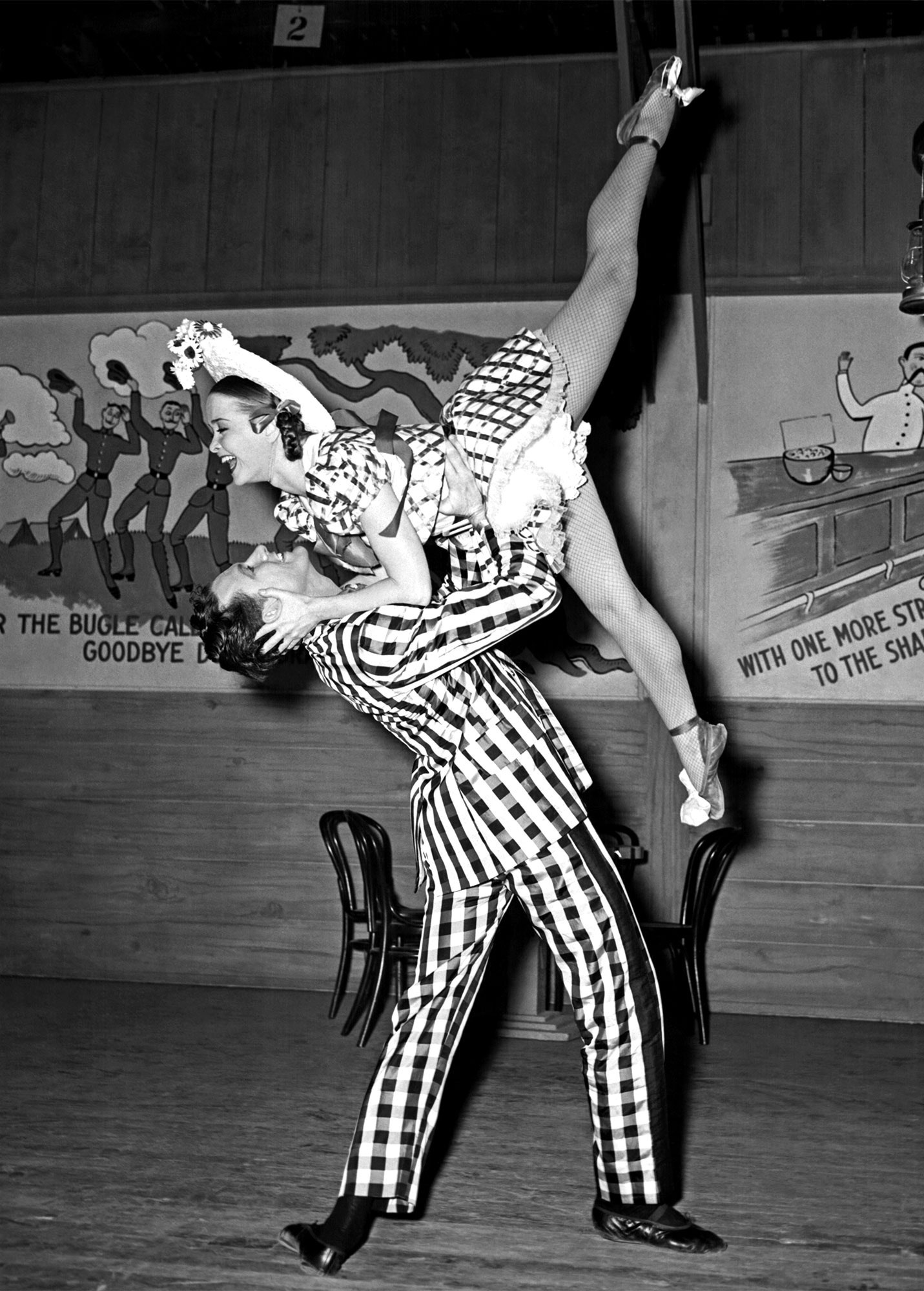 In 1940, McCracken married dancer Jack Dunphy and the couple moved to New York, where they both found work. She danced as part of Radio City Musical’s ballet, Jacob’s Pillow in ballet company in Massachusetts, and Eugene Loring’s Dance Players. McCracken and Dunphy later auditioned for Rodgers and Hammerstein’s Away We Go, securing anonymous dance roles in the show. As work on the show progressed, the name of the musical was changed to Oklahoma!, in which McCracken was crafting a more noticeable personality for her given role of Sylvie. Due to the pratfalls her character made in the “Many a New Day” dance sequence, McCracken was dubbed “The Girl Who Falls Down.”