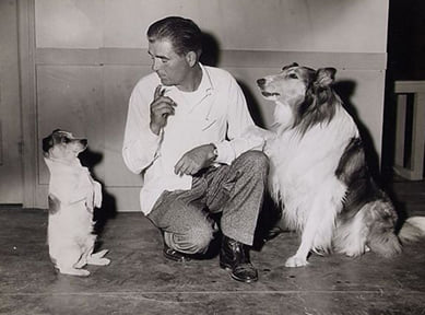 Howard Peck, an animal trainer, brought the eight-month-old collie to Hollywood animal trainer Rudd Weatherwax in order to break the animal of uncontrolled barking and a habit of chasing motorcycles.After working with the dog, Weatherwax gained control of the barking but was unable to break Pal of his motorcycle-chasing habit. Disappointed, Peck gave the dog to Weatherwax in exchange for the money Peck owed him.