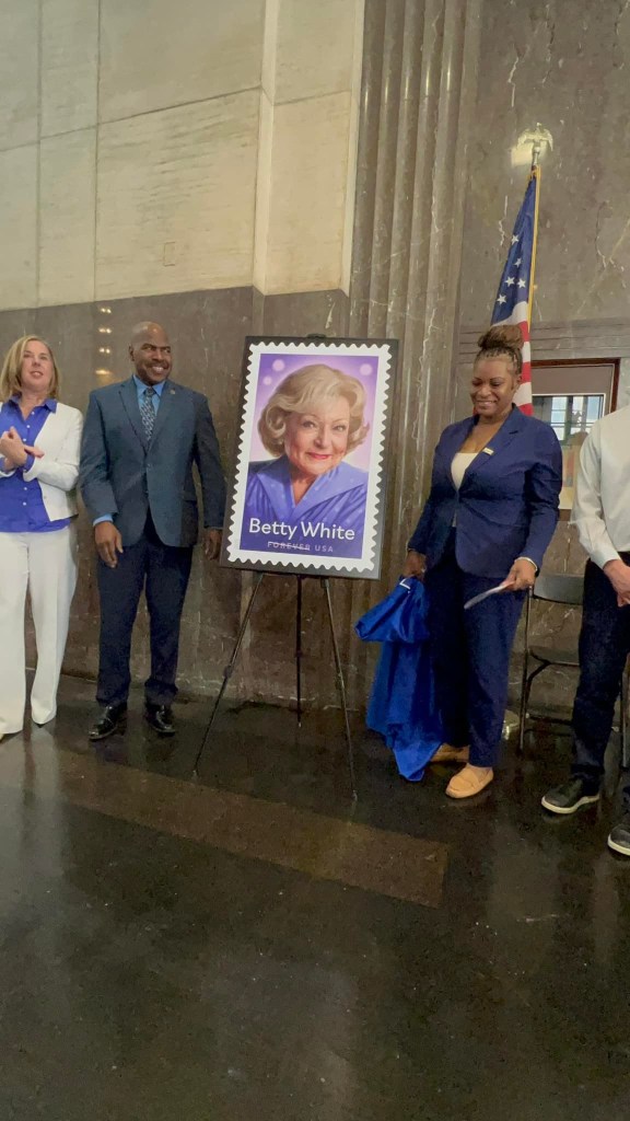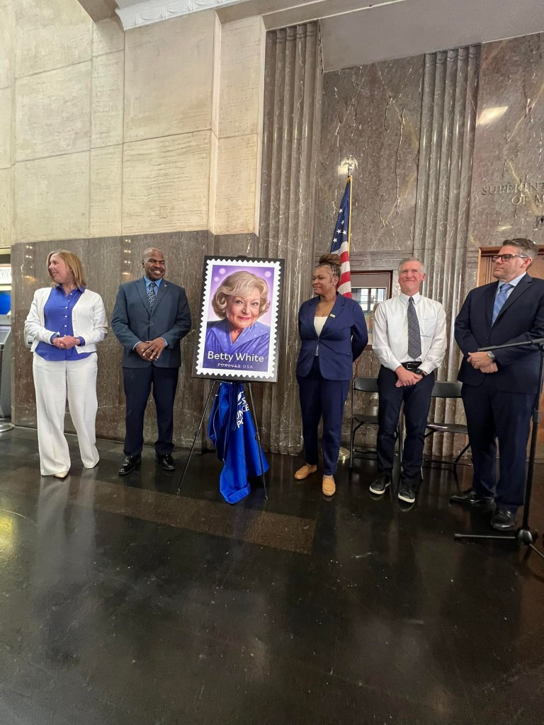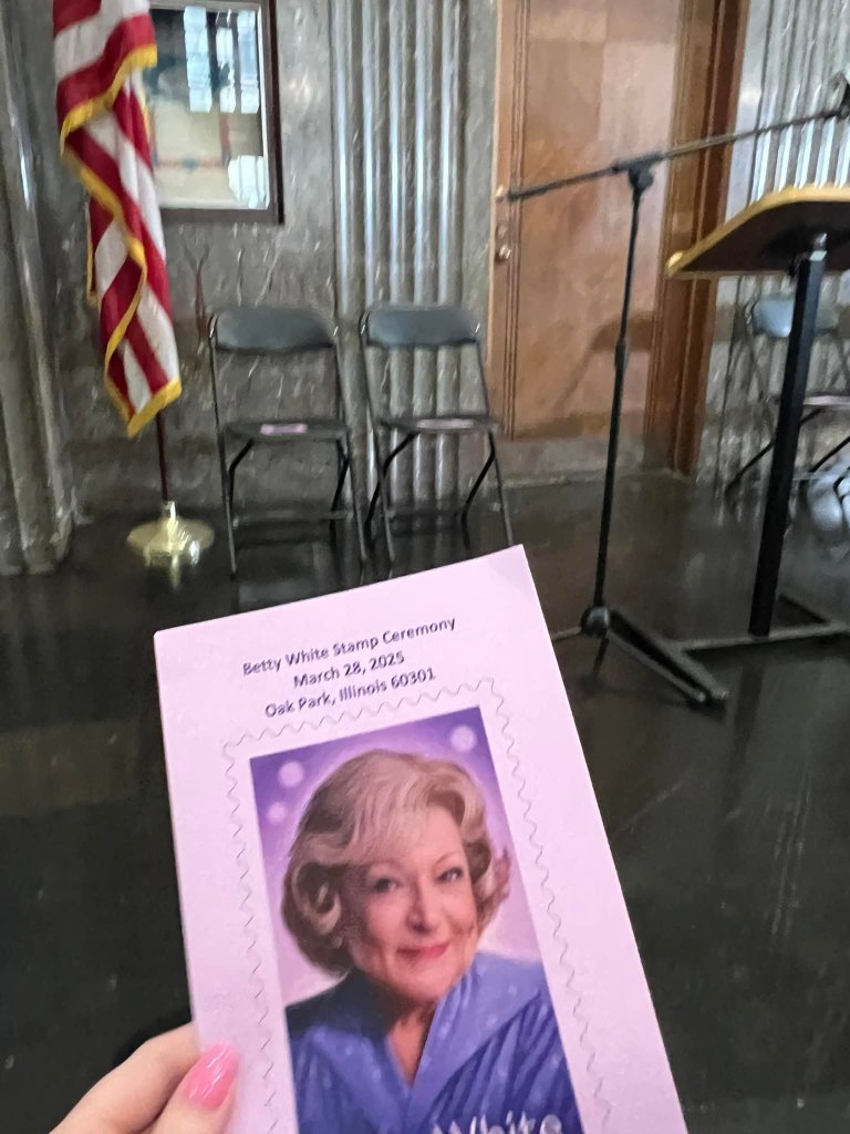 On March 28, 2025, I attended the 2nd-day-of-Issue event for the honorary Betty White stamp held in the late comedienne’s hometown of Oak Park, Illinois, at the Oak Park Post Office. The event was held the day after the First-day-of-Issue event in Los Angeles, California, at the Los Angeles Zoo and Botanical Gardens.