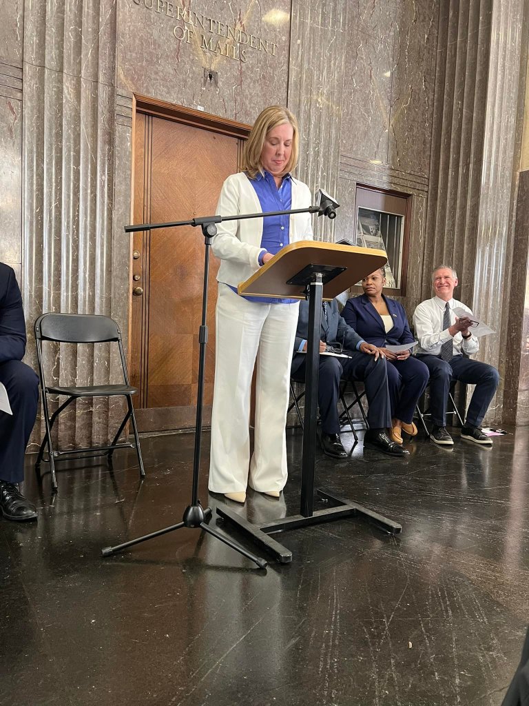 Afterward, there was a series of remarks about White’s career, legacy, and ties to her hometown. Attendees heard speeches from Oak Park Postmaster Kenya Thomas, Village President for the Village of Oak Park Vicki Scaman, Executive Director of the Oak Park River Forest Museum Frank Lipo, and the District Manager for the Illinois 1 District USPS Jeff Drake.