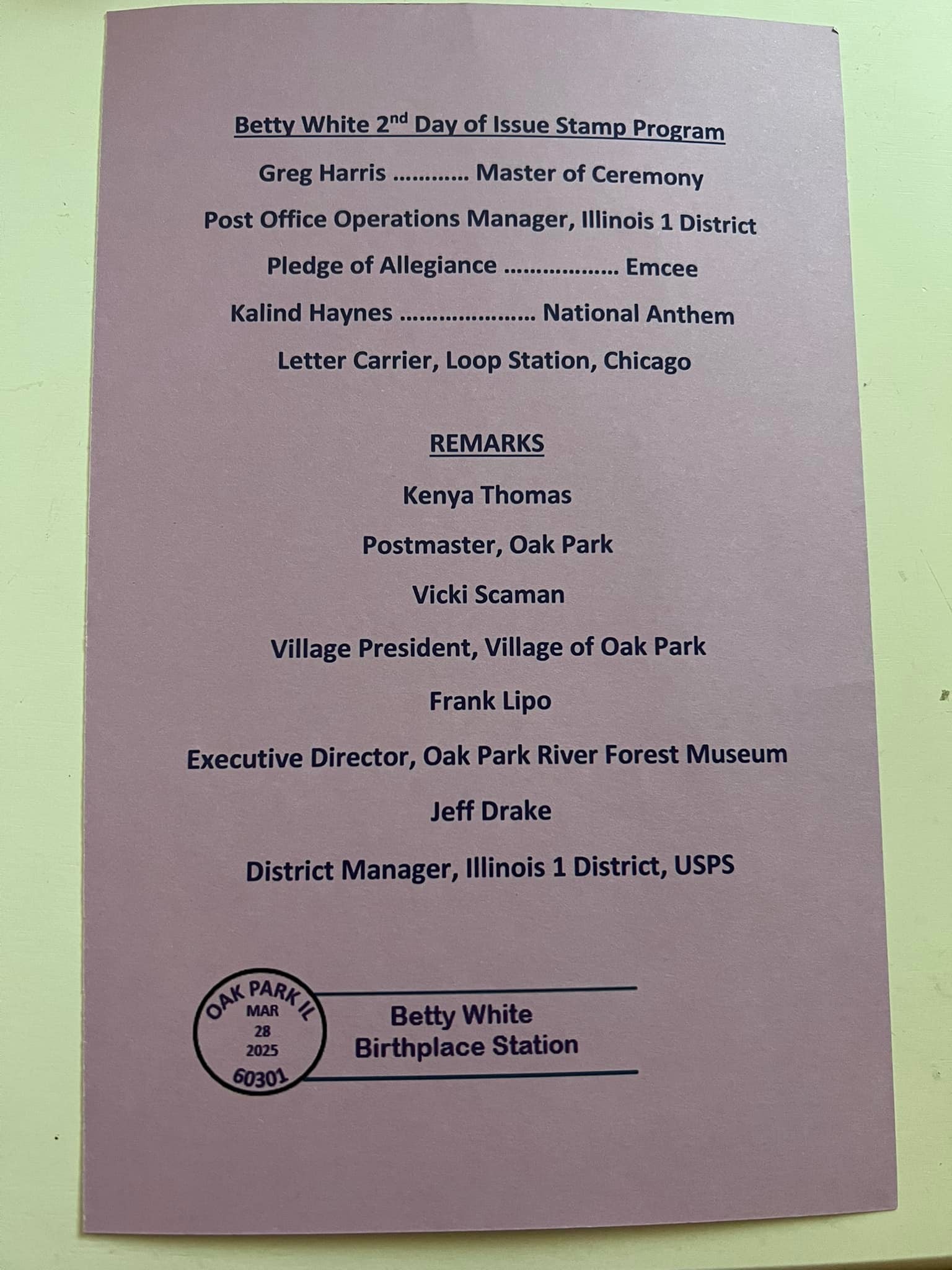 On March 28, 2025, I attended the 2nd-day-of-Issue event for the honorary Betty White stamp held in the late comedienne’s hometown of Oak Park, Illinois, at the Oak Park Post Office. The event was held the day after the First-day-of-Issue event in Los Angeles, California, at the Los Angeles Zoo and Botanical Gardens.