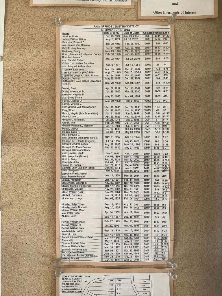 This cemetery has many notable individuals at rest here with strong ties to the entertainment industry and the Palm Springs area.