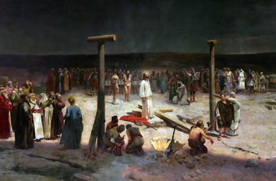 Center detail of Jan Styka’s 195-foot long by 45-foot tall oil on canvas titled “The Crucifixion” on permanent display at the Hall of The Crucifixion-Resurrection at Forest Lawn Glendale on Thursday, April 1, 2010. (Raul Roa/News-Press)