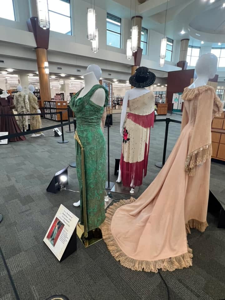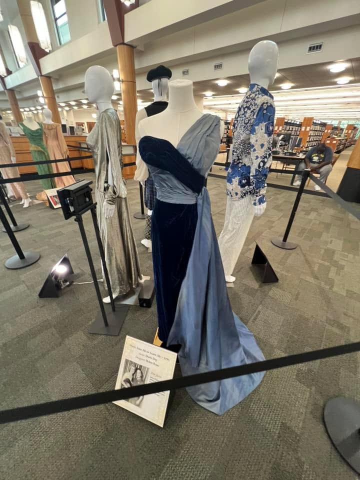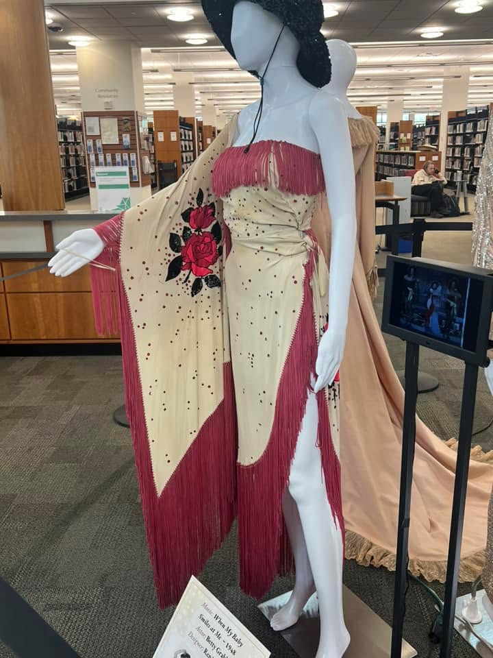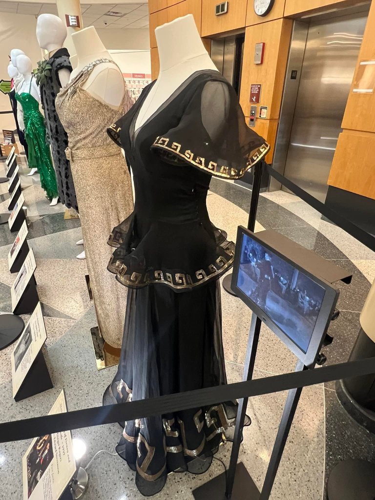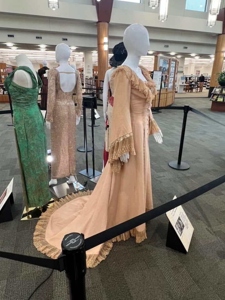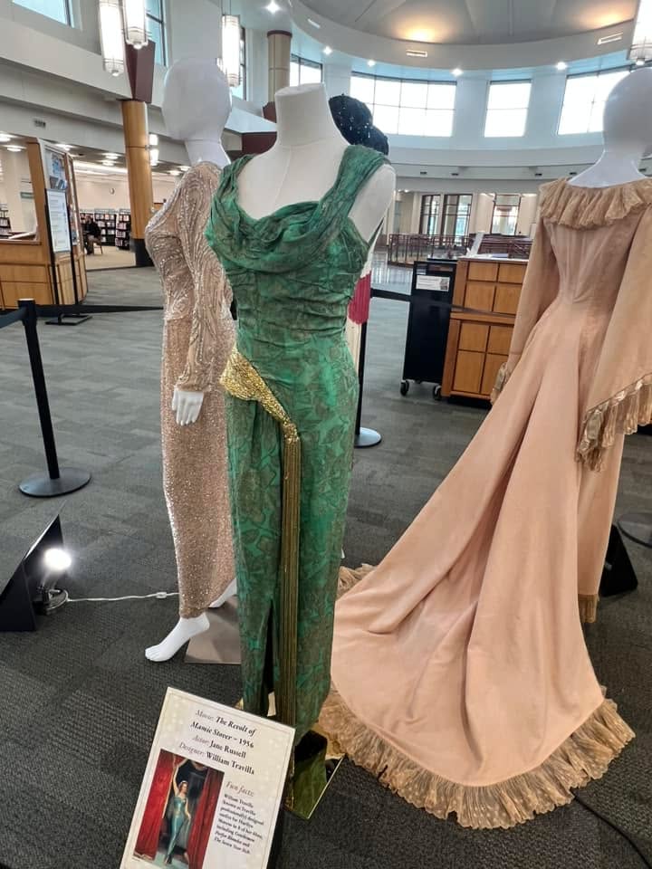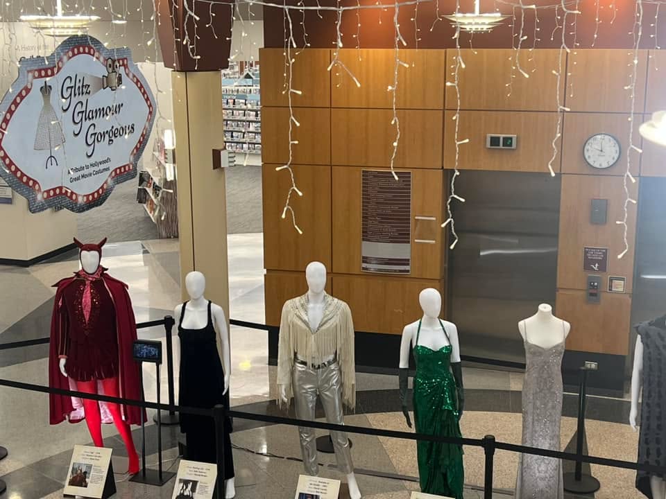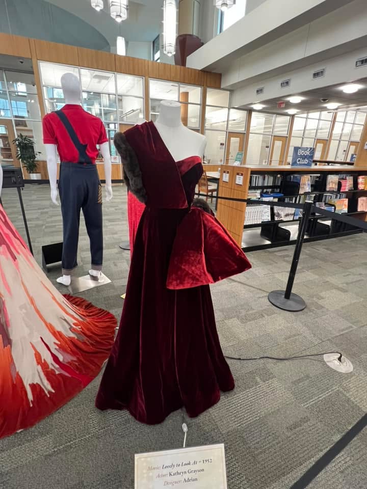 In Summer 2025, I was delighted to visit the Gail Borden Public Library’s exhibition entitled “Glitz-Glamour-Gorgeous: A Tribute to Hollywood Movie Costumes.” This exhibit showcased costumes from the collection of Greg Schreiner on display at the library in Elgin, Illinois. The exhibit included 33 screen-worn costumes. I am thrilled to share some photographs of the costumes, specifically focusing on ones with stronger ties to Hollywood’s Golden Age.