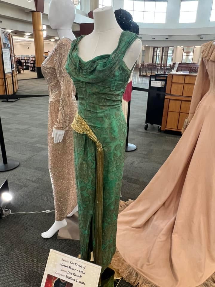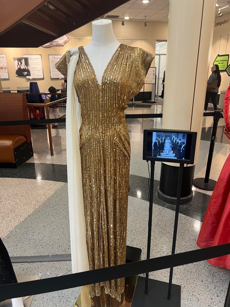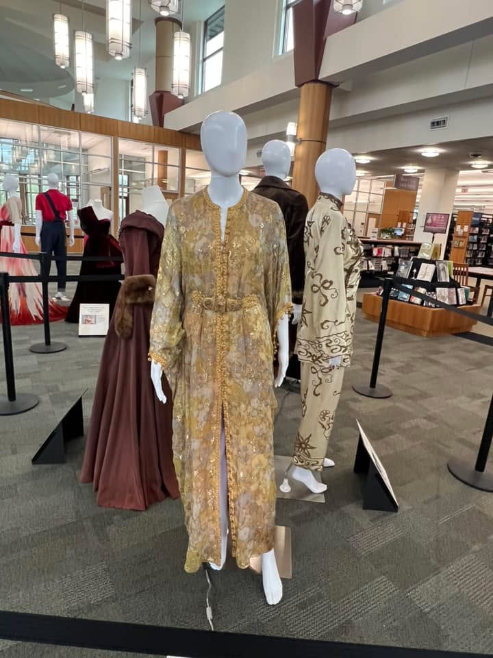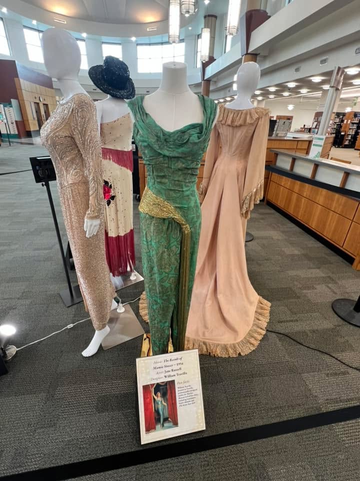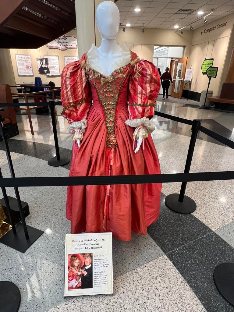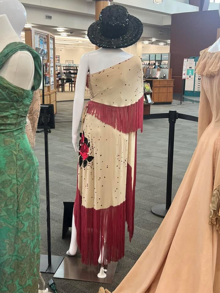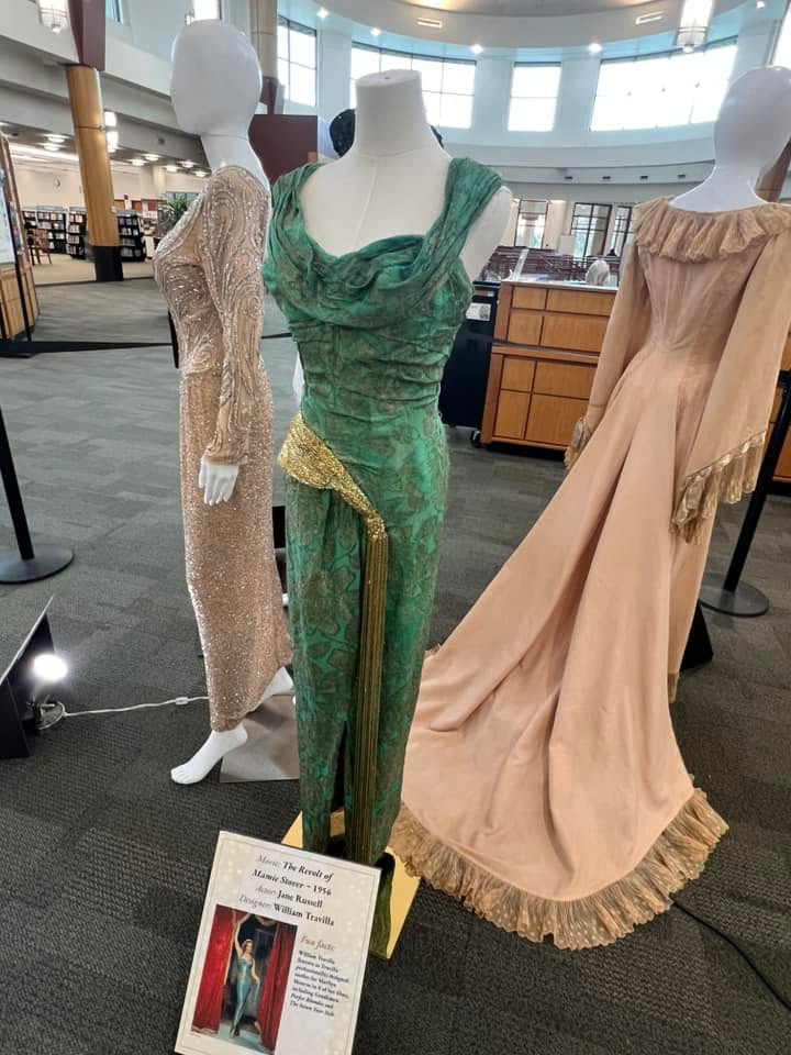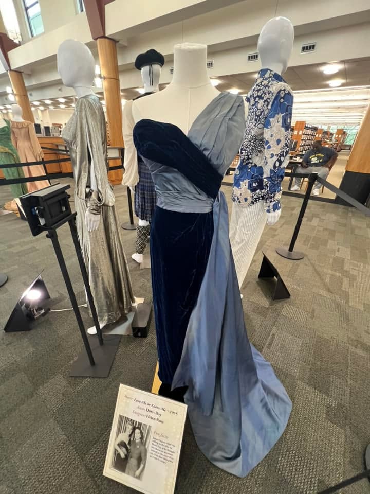 In Summer 2025, I was delighted to visit the Gail Borden Public Library’s exhibition entitled “Glitz-Glamour-Gorgeous: A Tribute to Hollywood Movie Costumes.” This exhibit showcased costumes from the collection of Greg Schreiner on display at the library in Elgin, Illinois. The exhibit included 33 screen-worn costumes. I am thrilled to share some photographs of the costumes, specifically focusing on ones with stronger ties to Hollywood’s Golden Age.