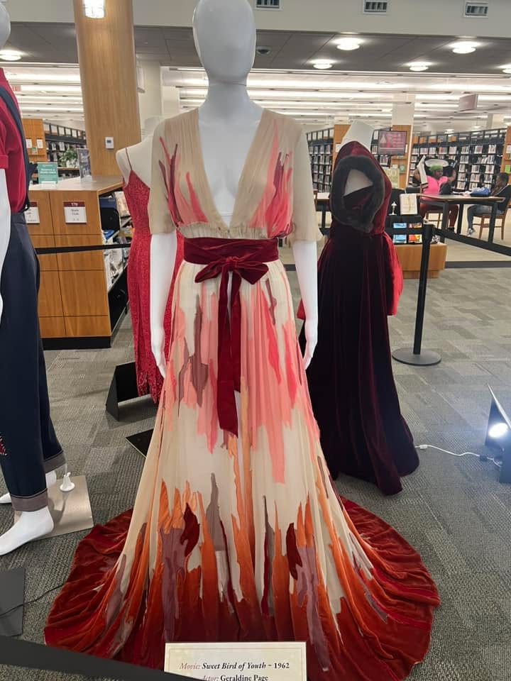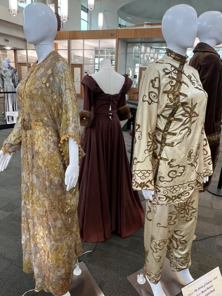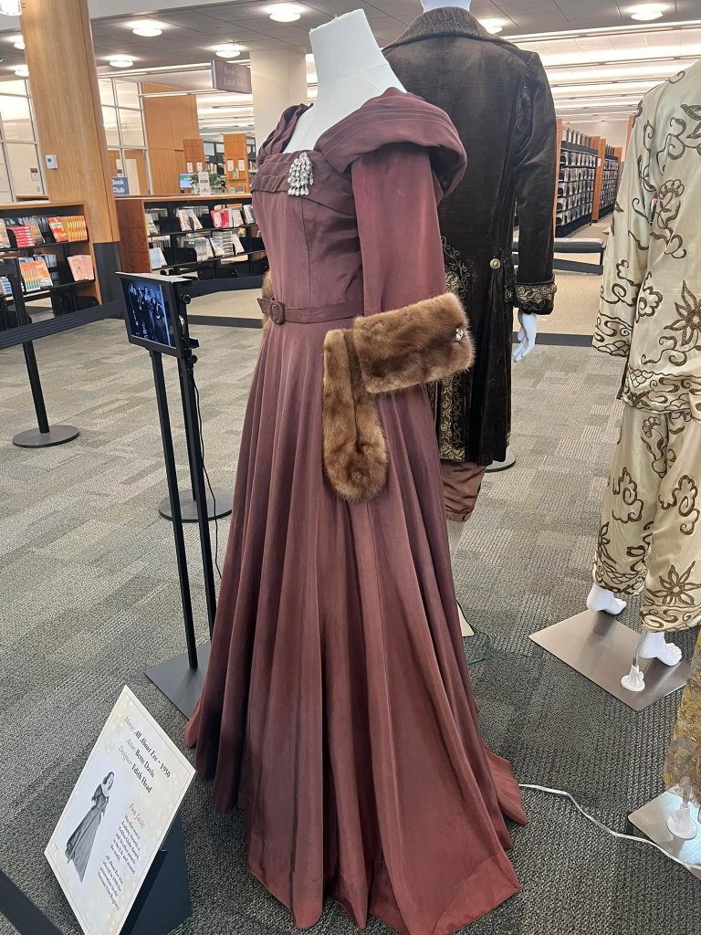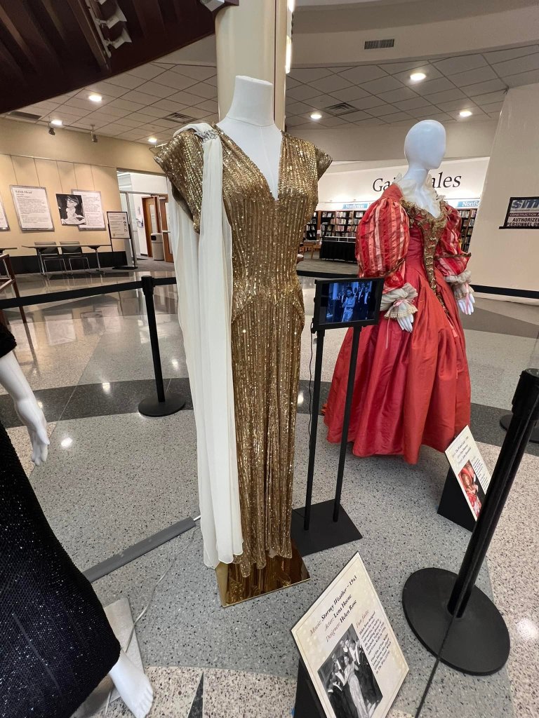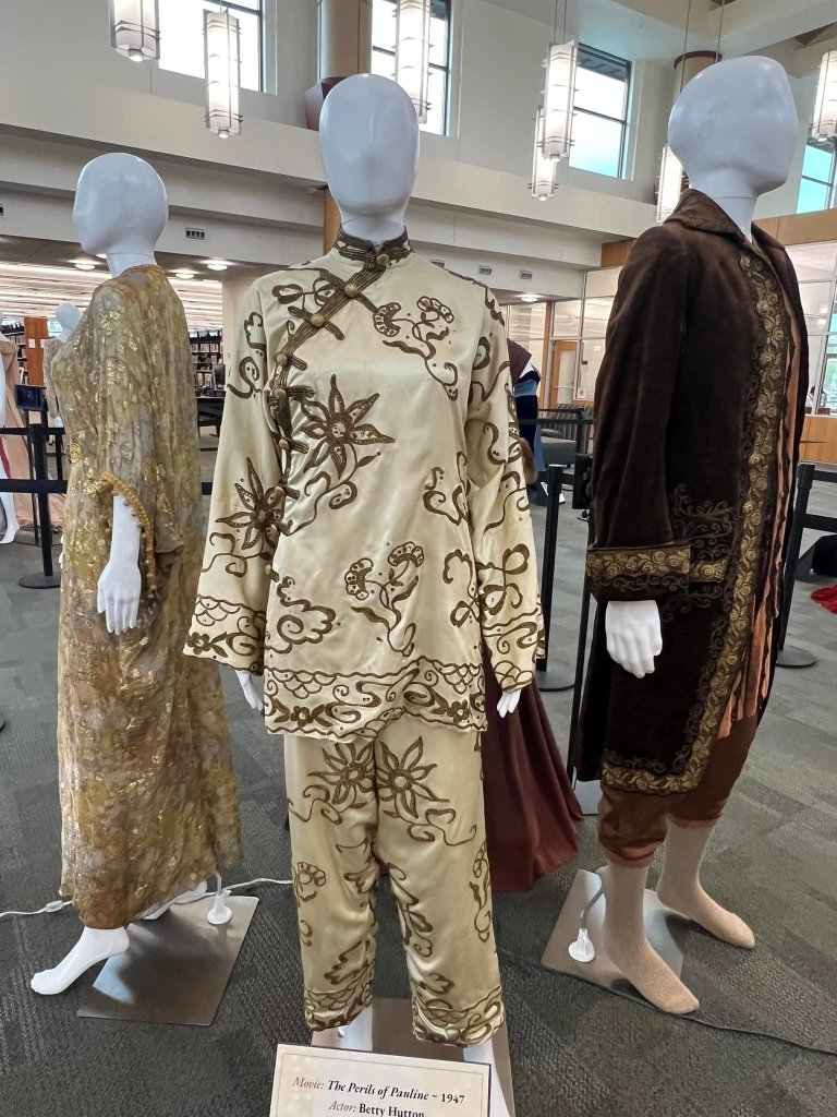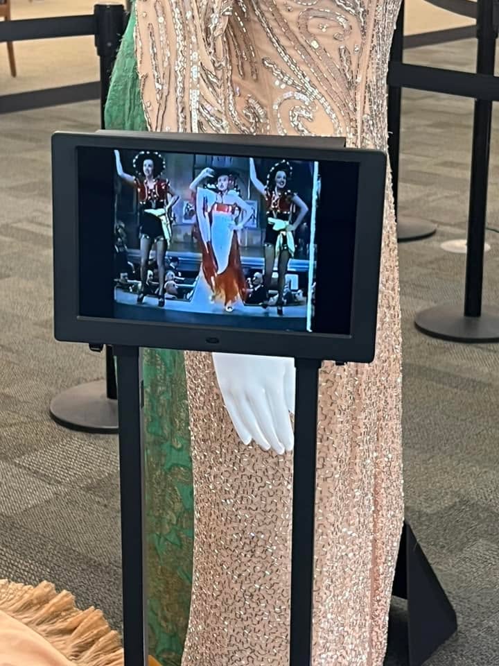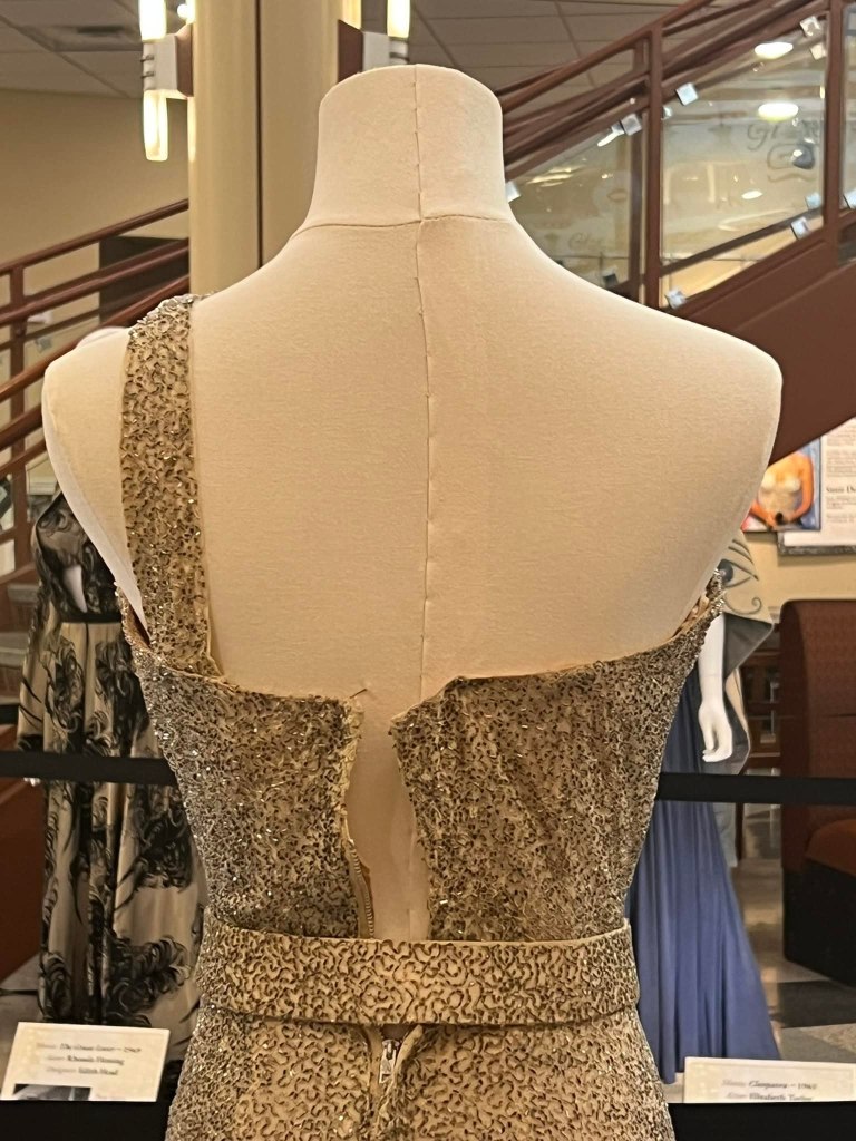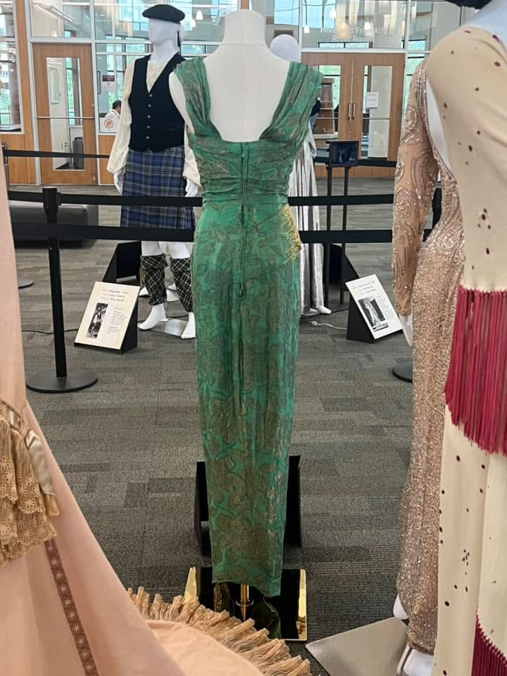 In Summer 2025, I was delighted to visit the Gail Borden Public Library’s exhibition entitled “Glitz-Glamour-Gorgeous: A Tribute to Hollywood Movie Costumes.” This exhibit showcased costumes from the collection of Greg Schreiner on display at the library in Elgin, Illinois. The exhibit included 33 screen-worn costumes. I am thrilled to share some photographs of the costumes, specifically focusing on ones with stronger ties to Hollywood’s Golden Age.