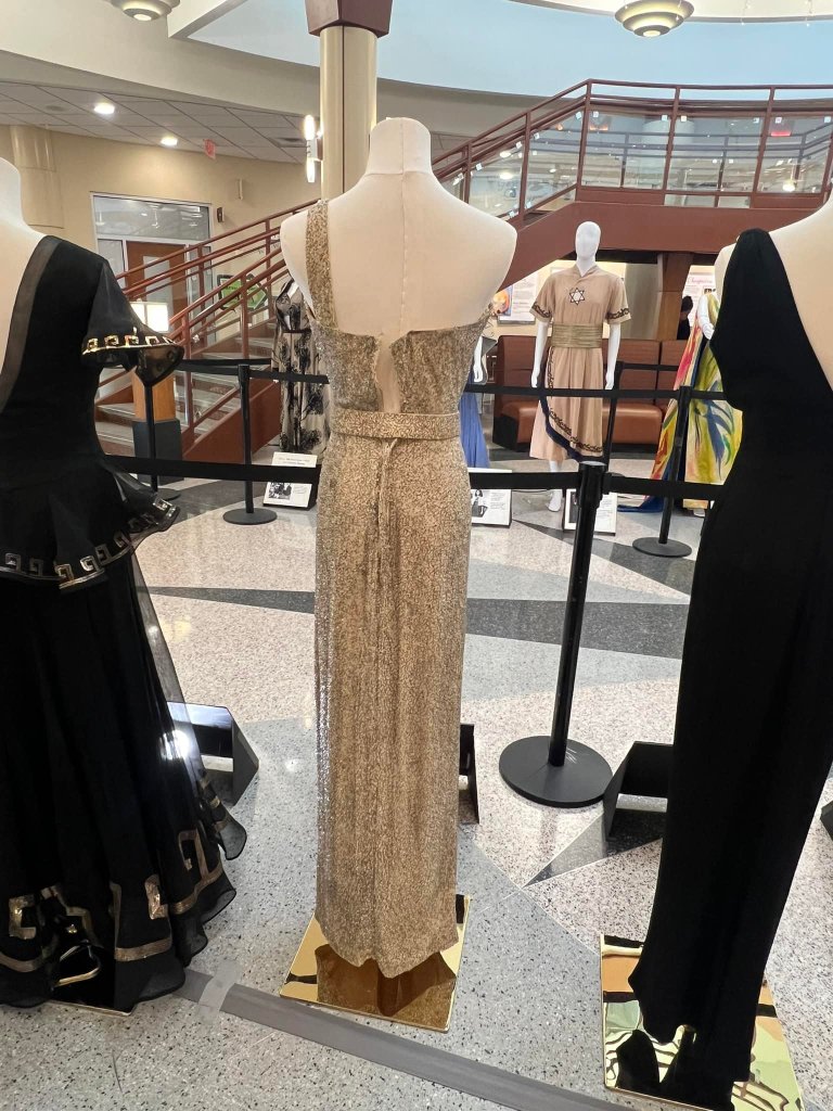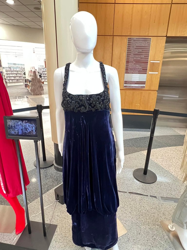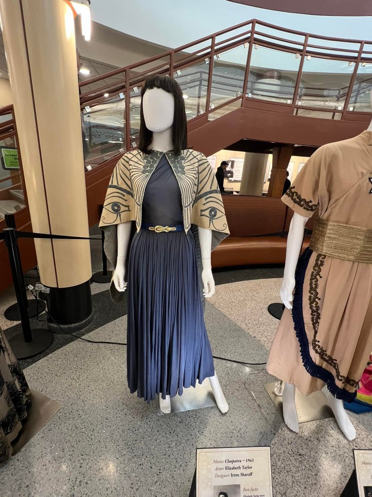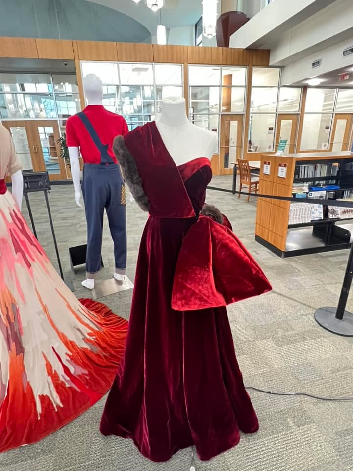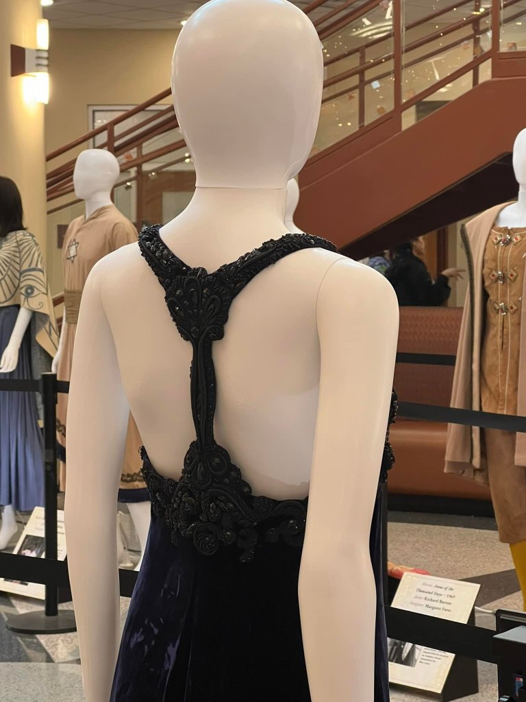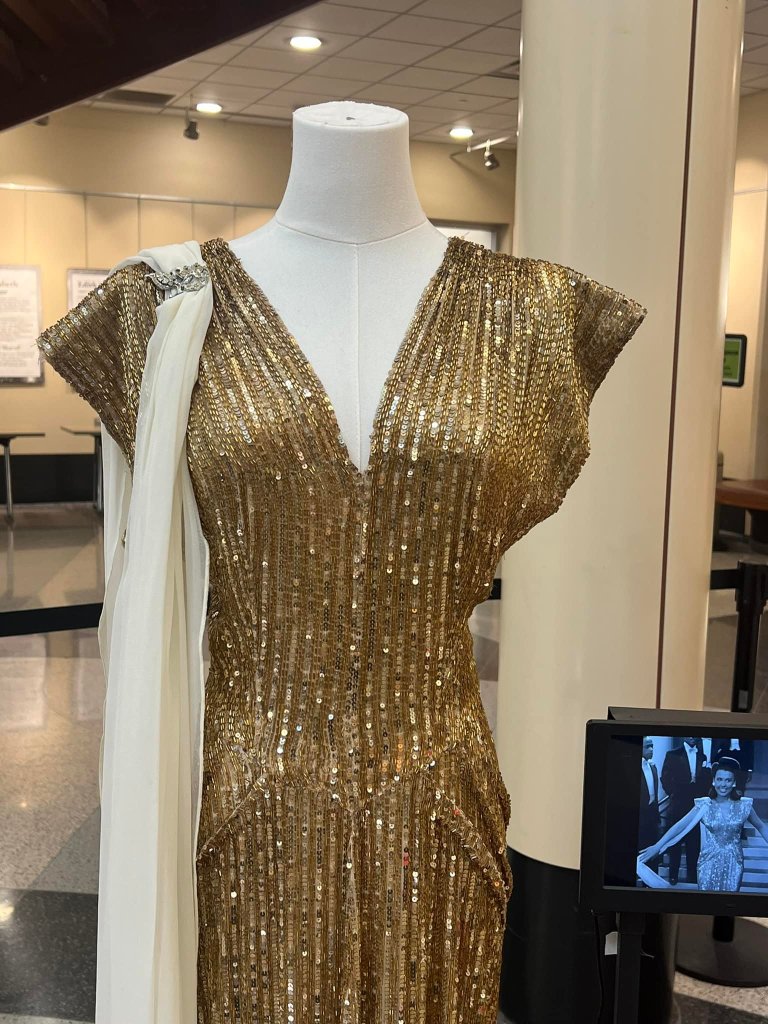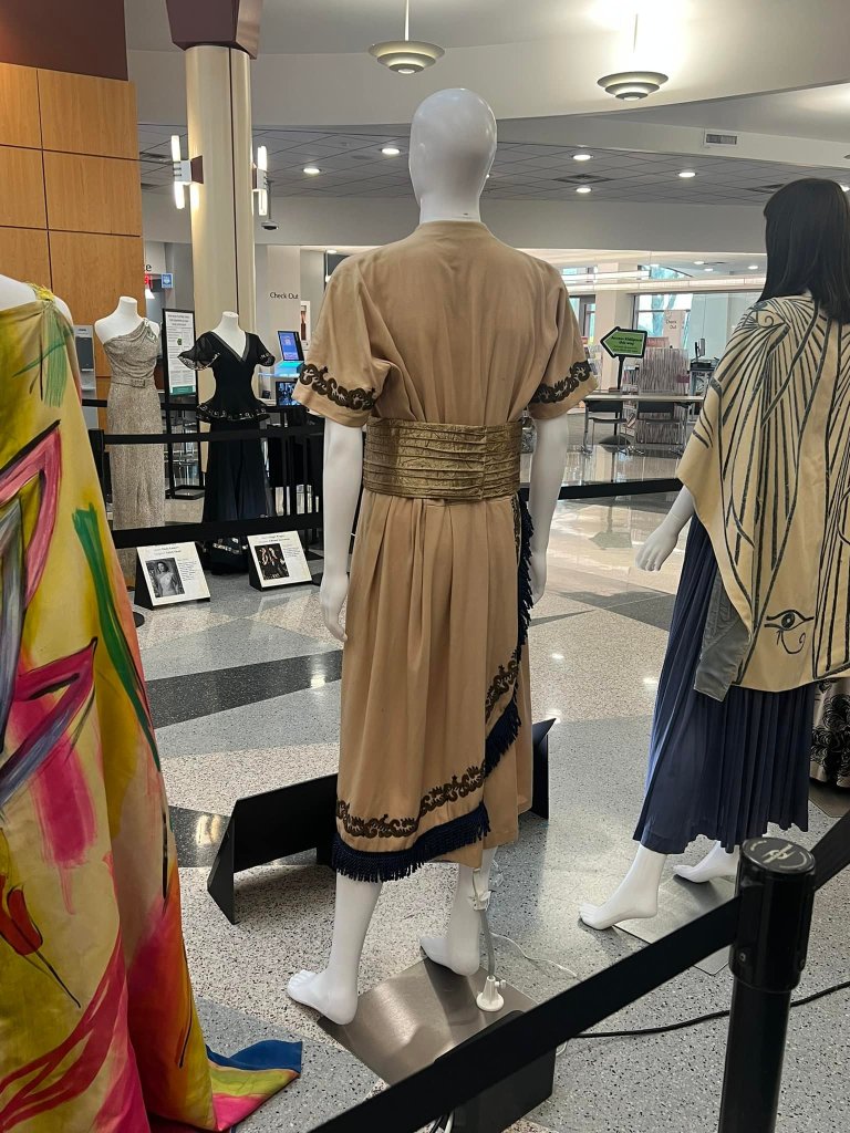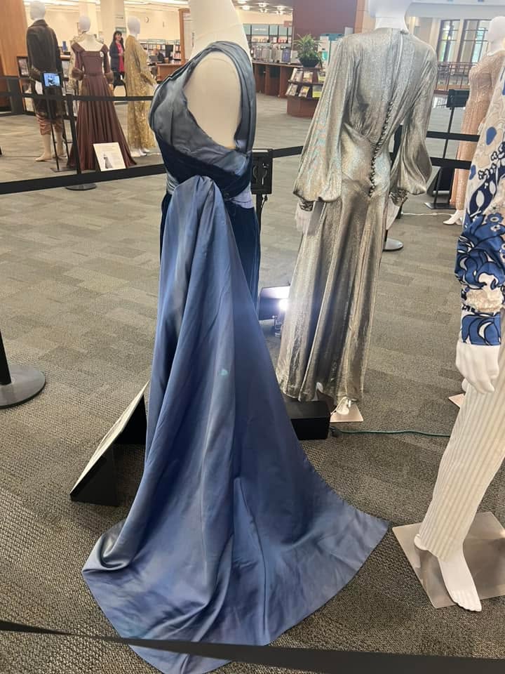 In Summer 2025, I was delighted to visit the Gail Borden Public Library’s exhibition entitled “Glitz-Glamour-Gorgeous: A Tribute to Hollywood Movie Costumes.” This exhibit showcased costumes from the collection of Greg Schreiner on display at the library in Elgin, Illinois. The exhibit included 33 screen-worn costumes. I am thrilled to share some photographs of the costumes, specifically focusing on ones with stronger ties to Hollywood’s Golden Age.