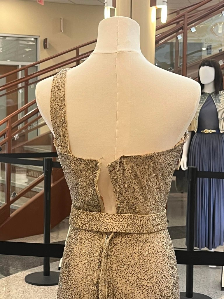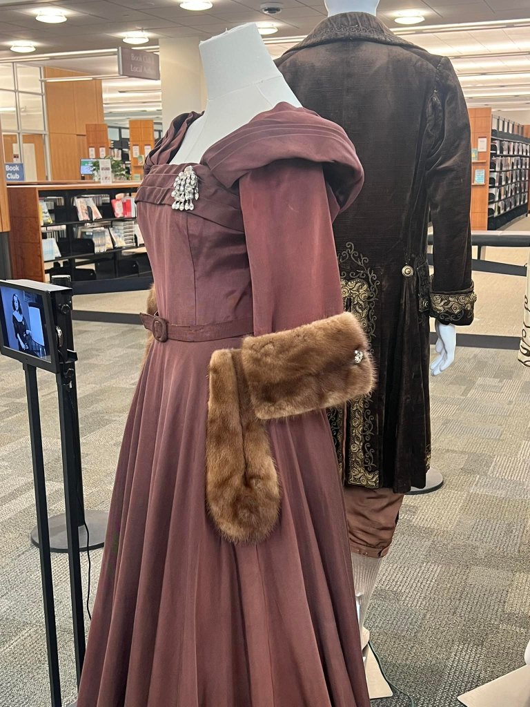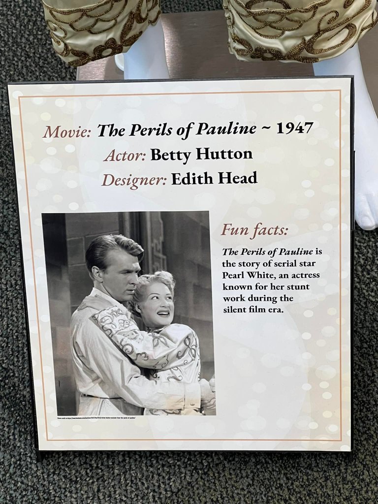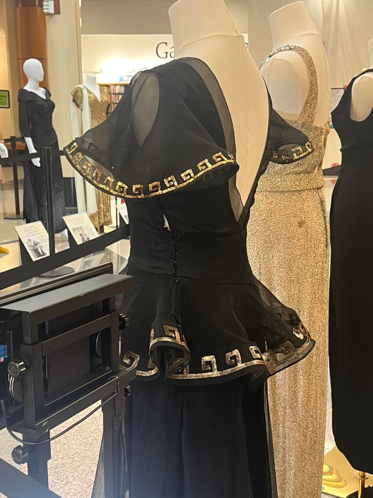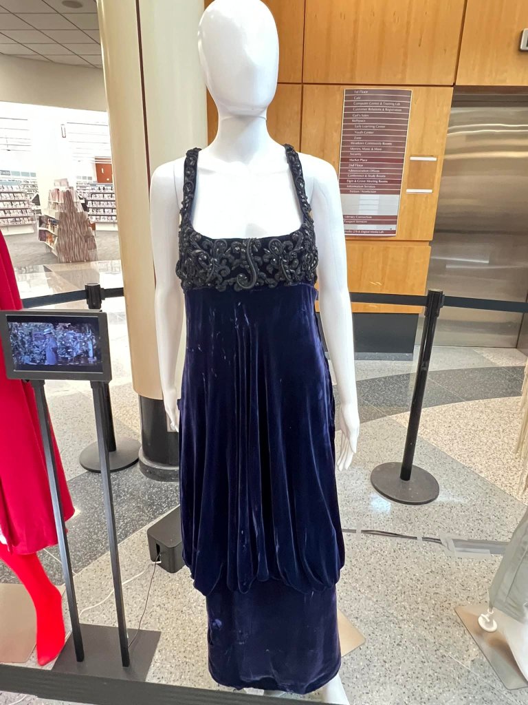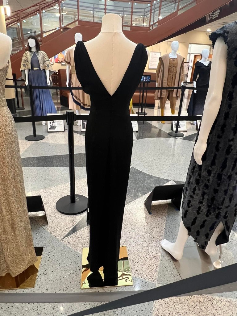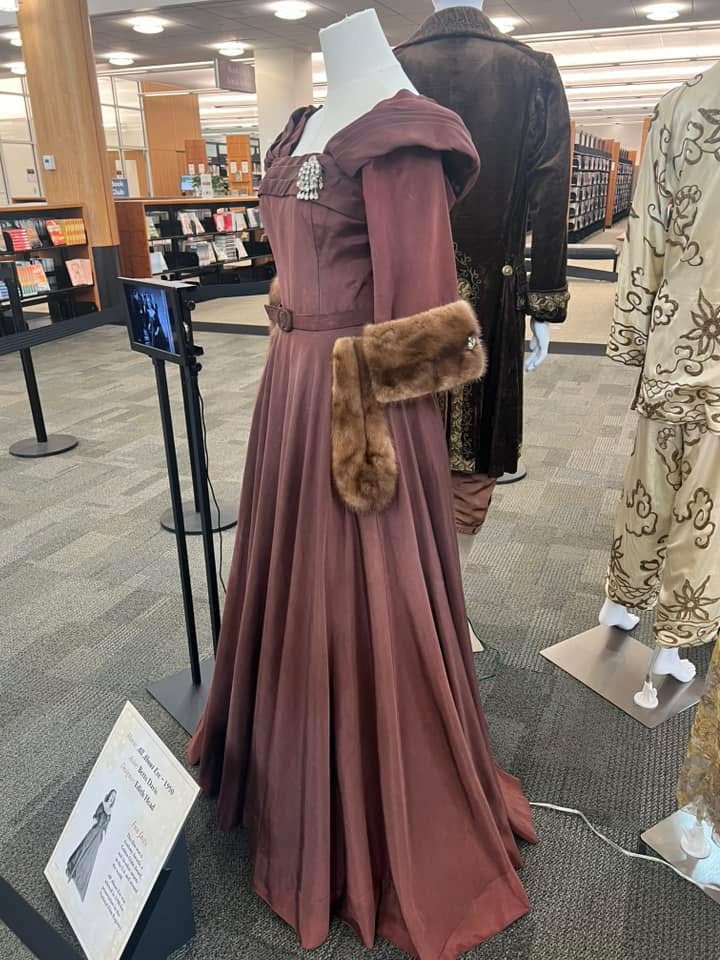 In Summer 2025, I was delighted to visit the Gail Borden Public Library’s exhibition entitled “Glitz-Glamour-Gorgeous: A Tribute to Hollywood Movie Costumes.” This exhibit showcased costumes from the collection of Greg Schreiner on display at the library in Elgin, Illinois. The exhibit included 33 screen-worn costumes. I am thrilled to share some photographs of the costumes, specifically focusing on ones with stronger ties to Hollywood’s Golden Age.