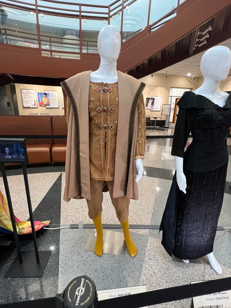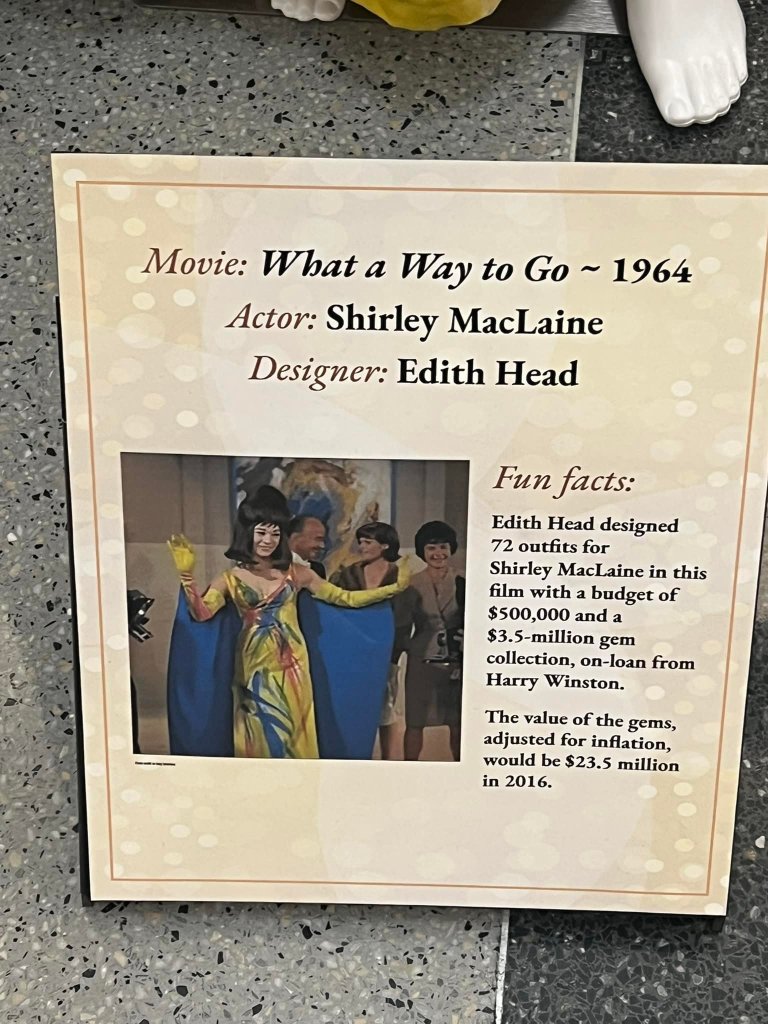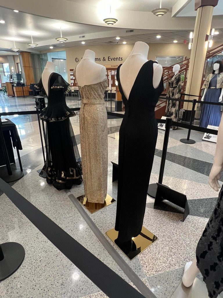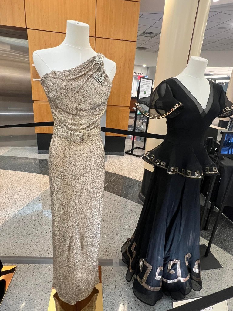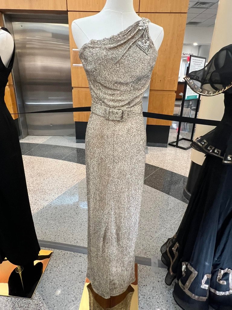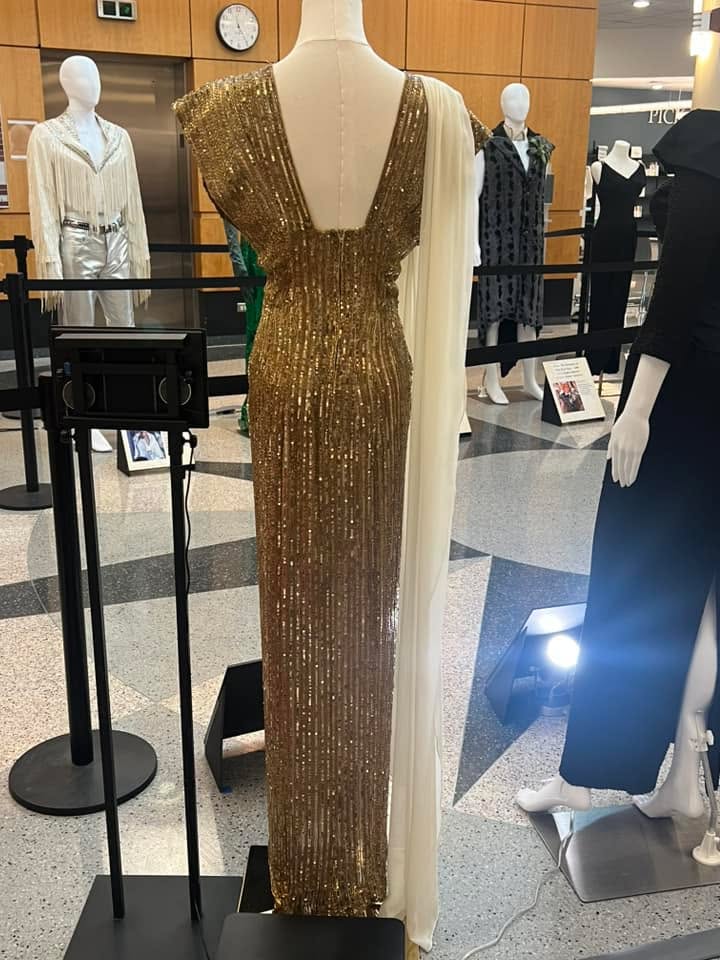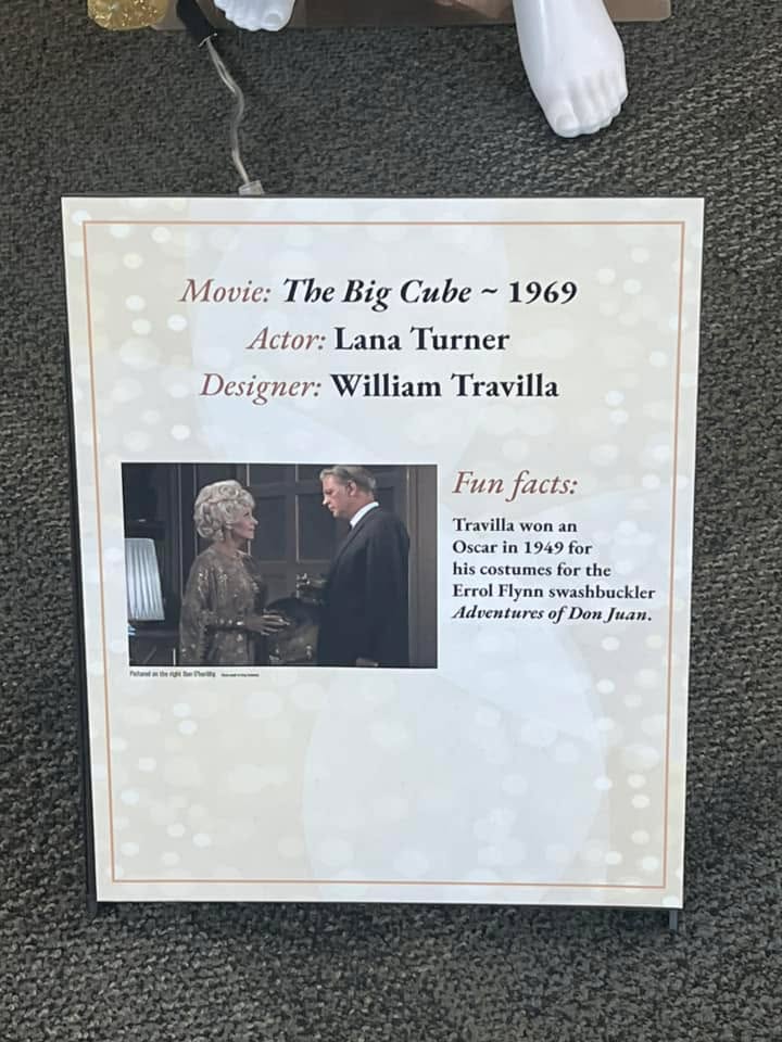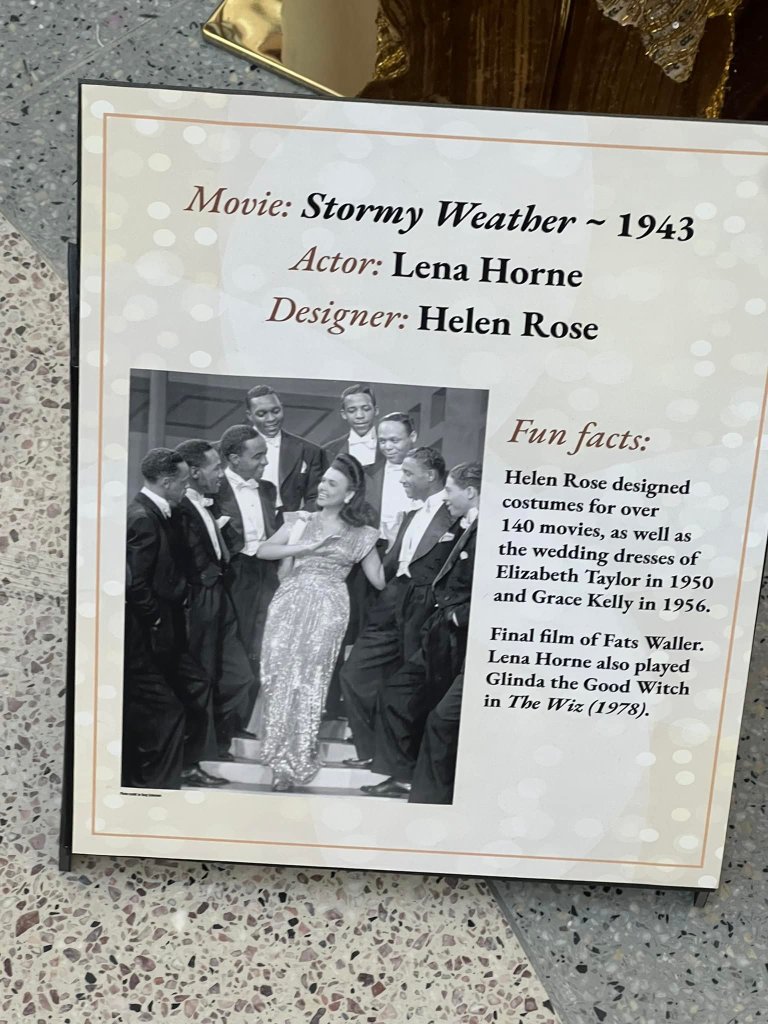 In Summer 2025, I was delighted to visit the Gail Borden Public Library’s exhibition entitled “Glitz-Glamour-Gorgeous: A Tribute to Hollywood Movie Costumes.” This exhibit showcased costumes from the collection of Greg Schreiner on display at the library in Elgin, Illinois. The exhibit included 33 screen-worn costumes. I am thrilled to share some photographs of the costumes, specifically focusing on ones with stronger ties to Hollywood’s Golden Age.
