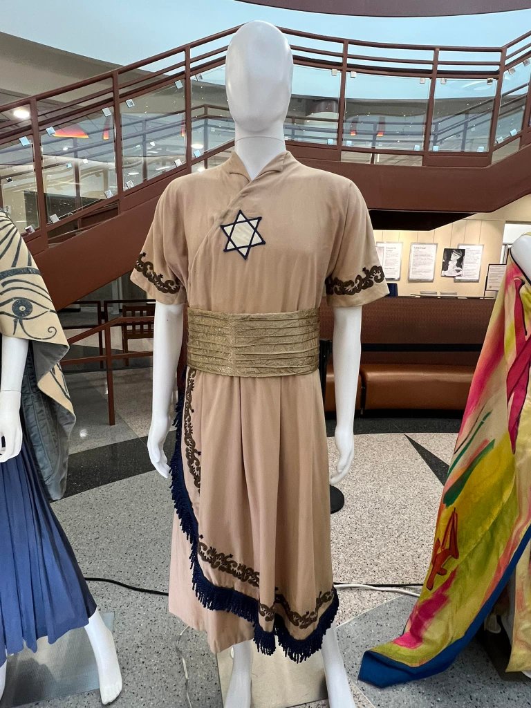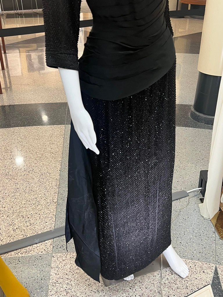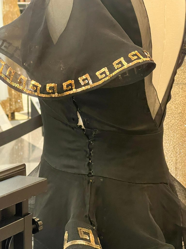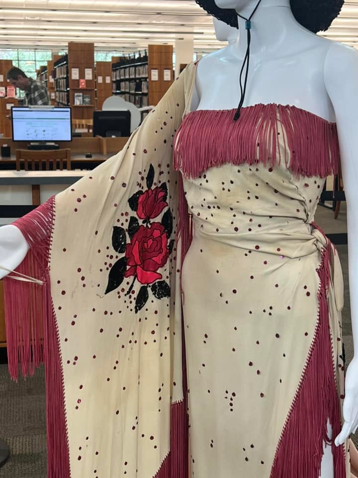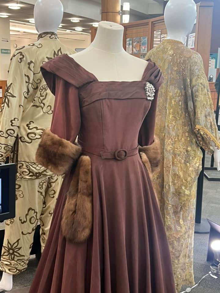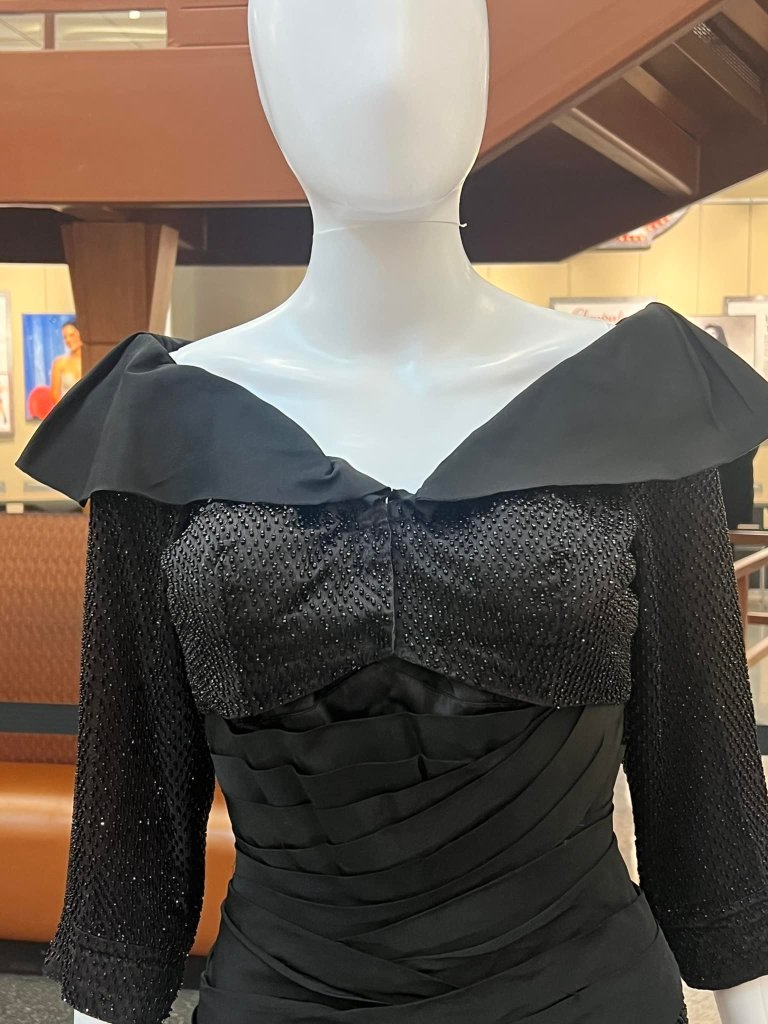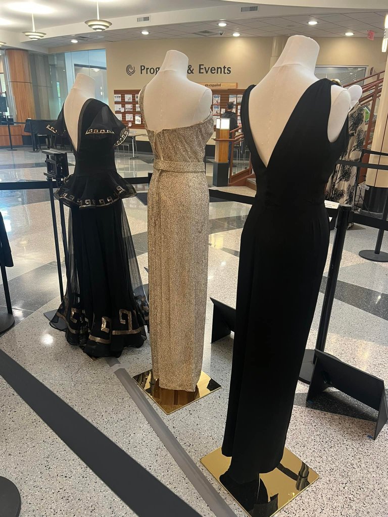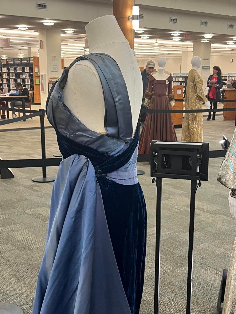 In Summer 2025, I was delighted to visit the Gail Borden Public Library’s exhibition entitled “Glitz-Glamour-Gorgeous: A Tribute to Hollywood Movie Costumes.” This exhibit showcased costumes from the collection of Greg Schreiner on display at the library in Elgin, Illinois. The exhibit included 33 screen-worn costumes. I am thrilled to share some photographs of the costumes, specifically focusing on ones with stronger ties to Hollywood’s Golden Age.