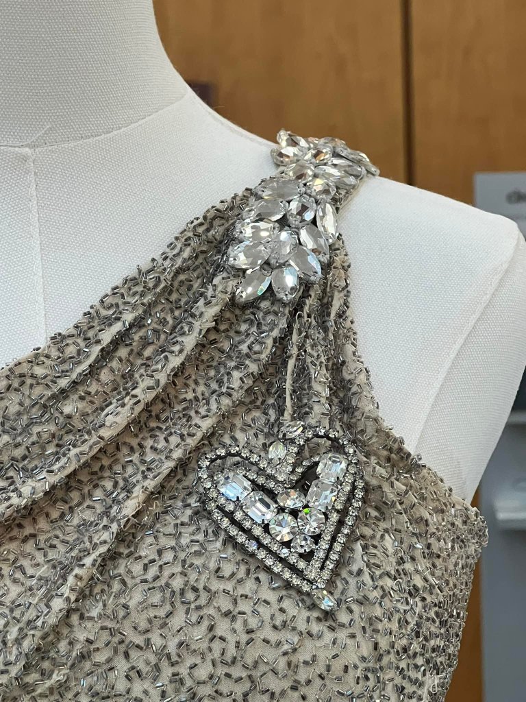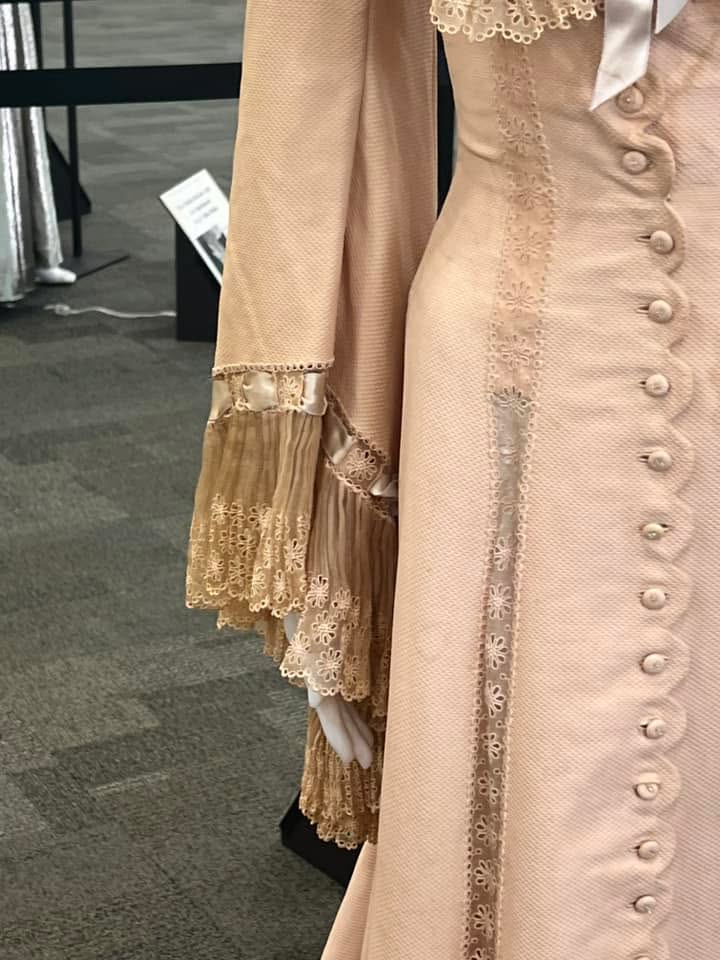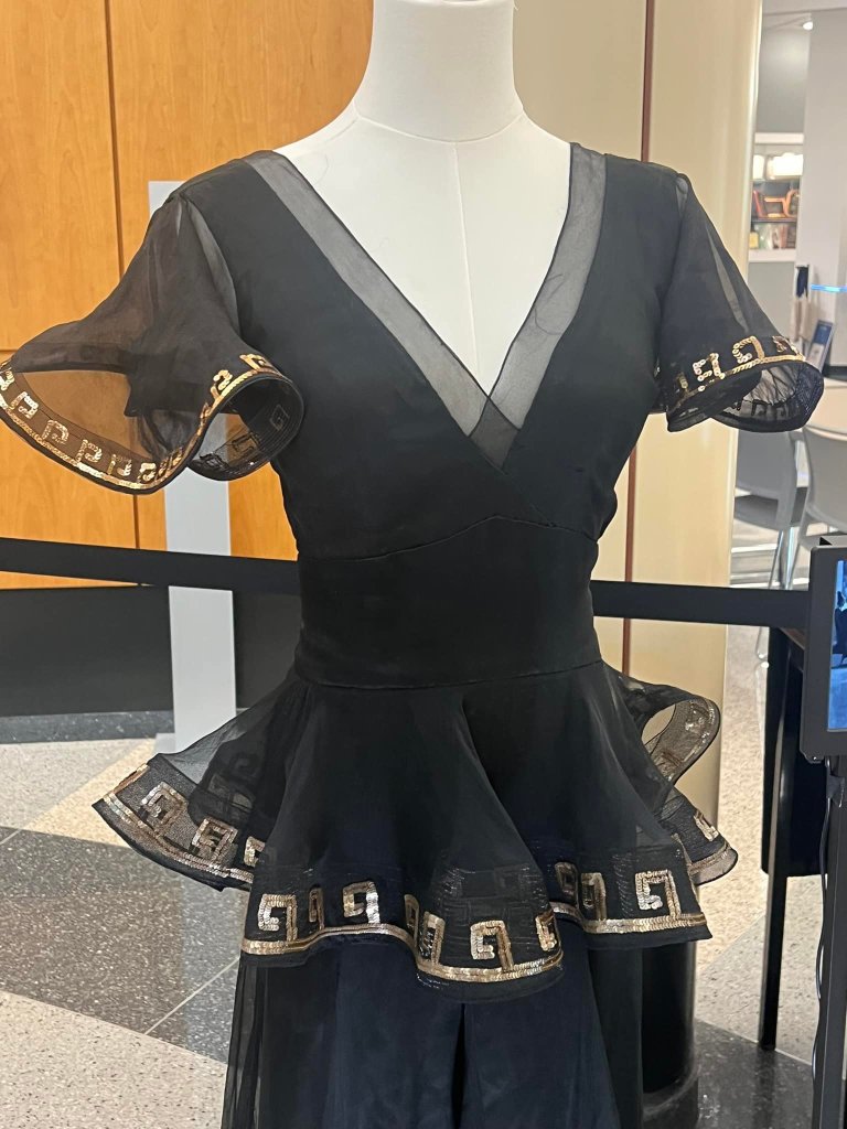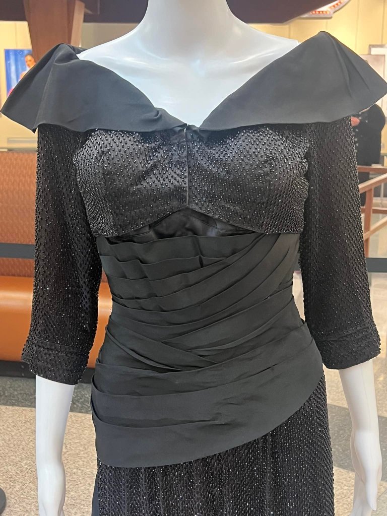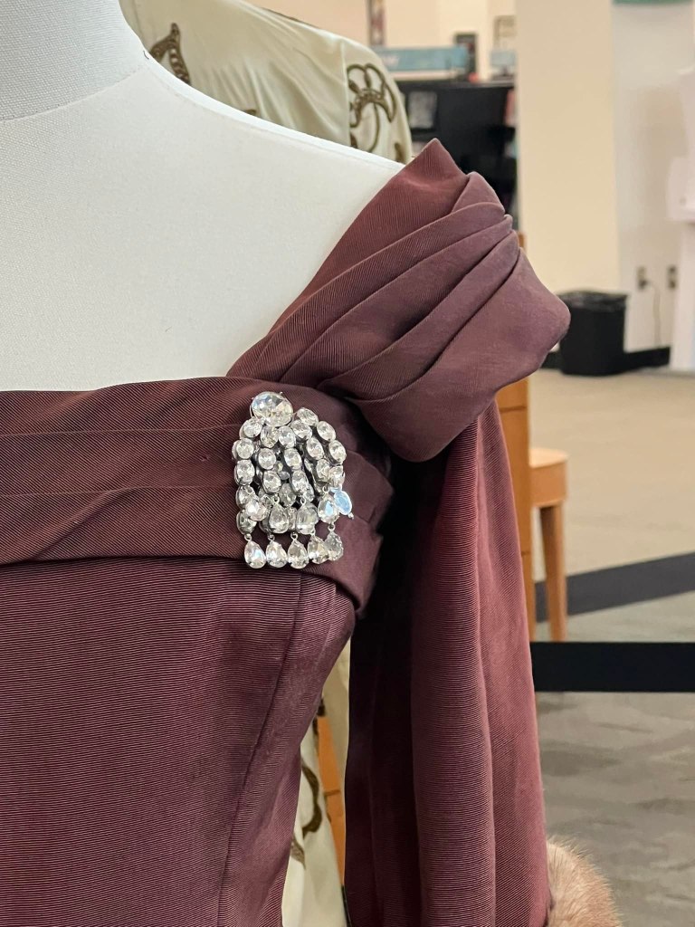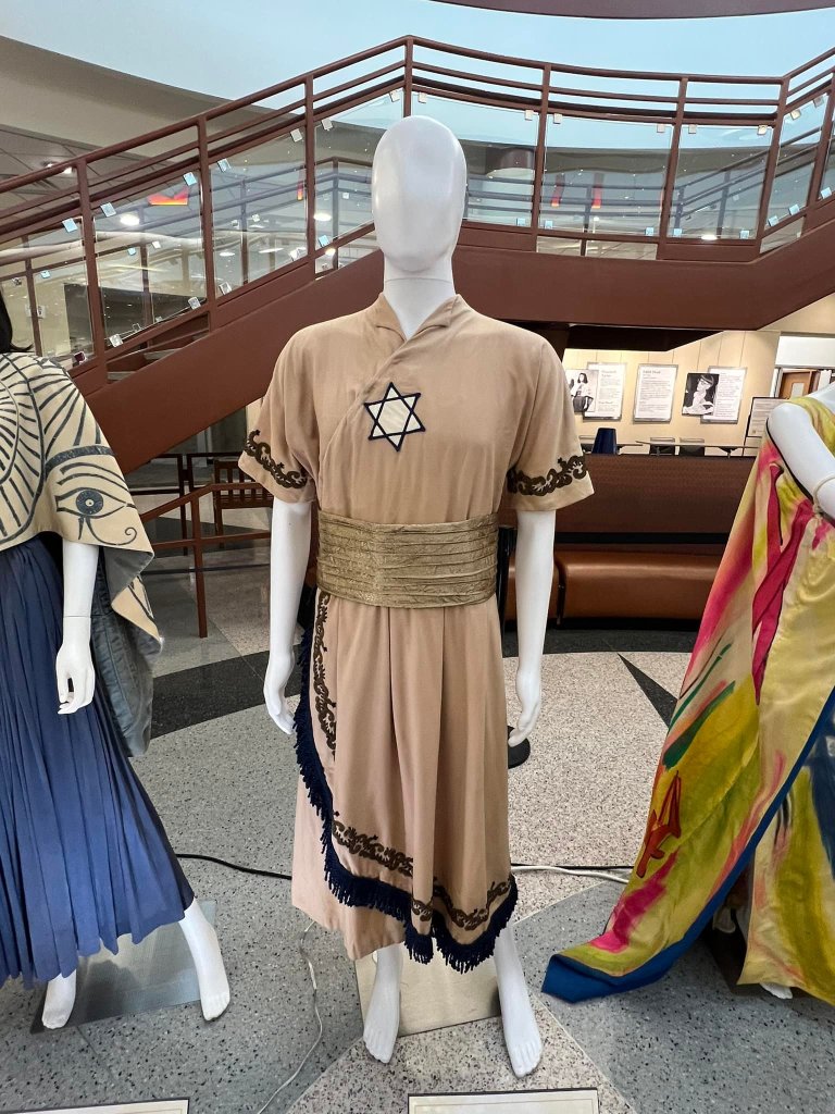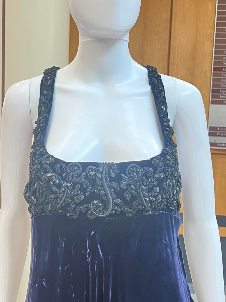 In Summer 2025, I was delighted to visit the Gail Borden Public Library’s exhibition entitled “Glitz-Glamour-Gorgeous: A Tribute to Hollywood Movie Costumes.” This exhibit showcased costumes from the collection of Greg Schreiner on display at the library in Elgin, Illinois. The exhibit included 33 screen-worn costumes. I am thrilled to share some photographs of the costumes, specifically focusing on ones with stronger ties to Hollywood’s Golden Age.