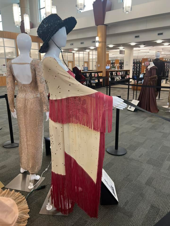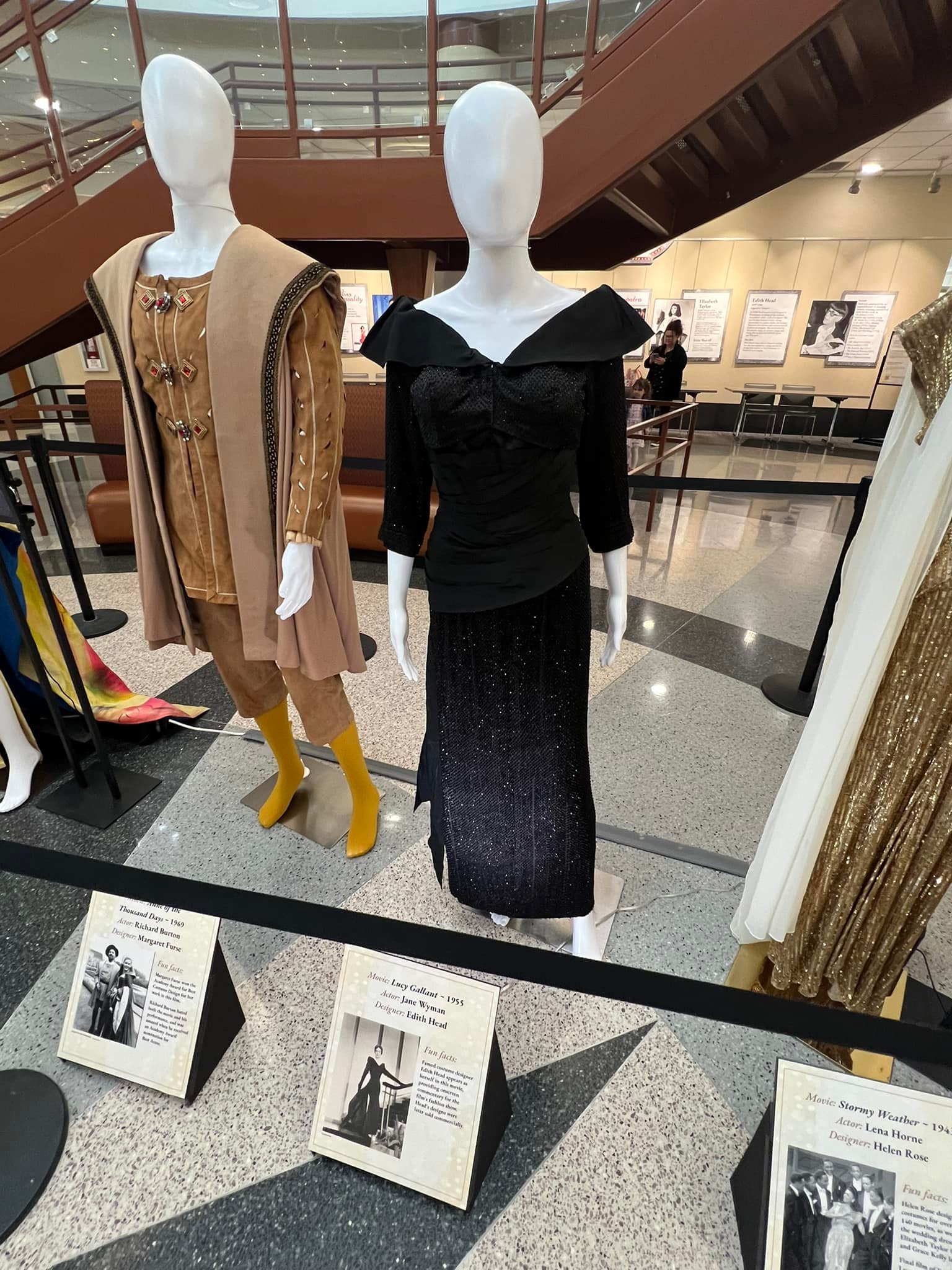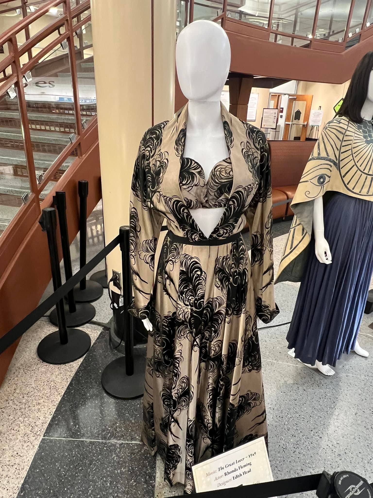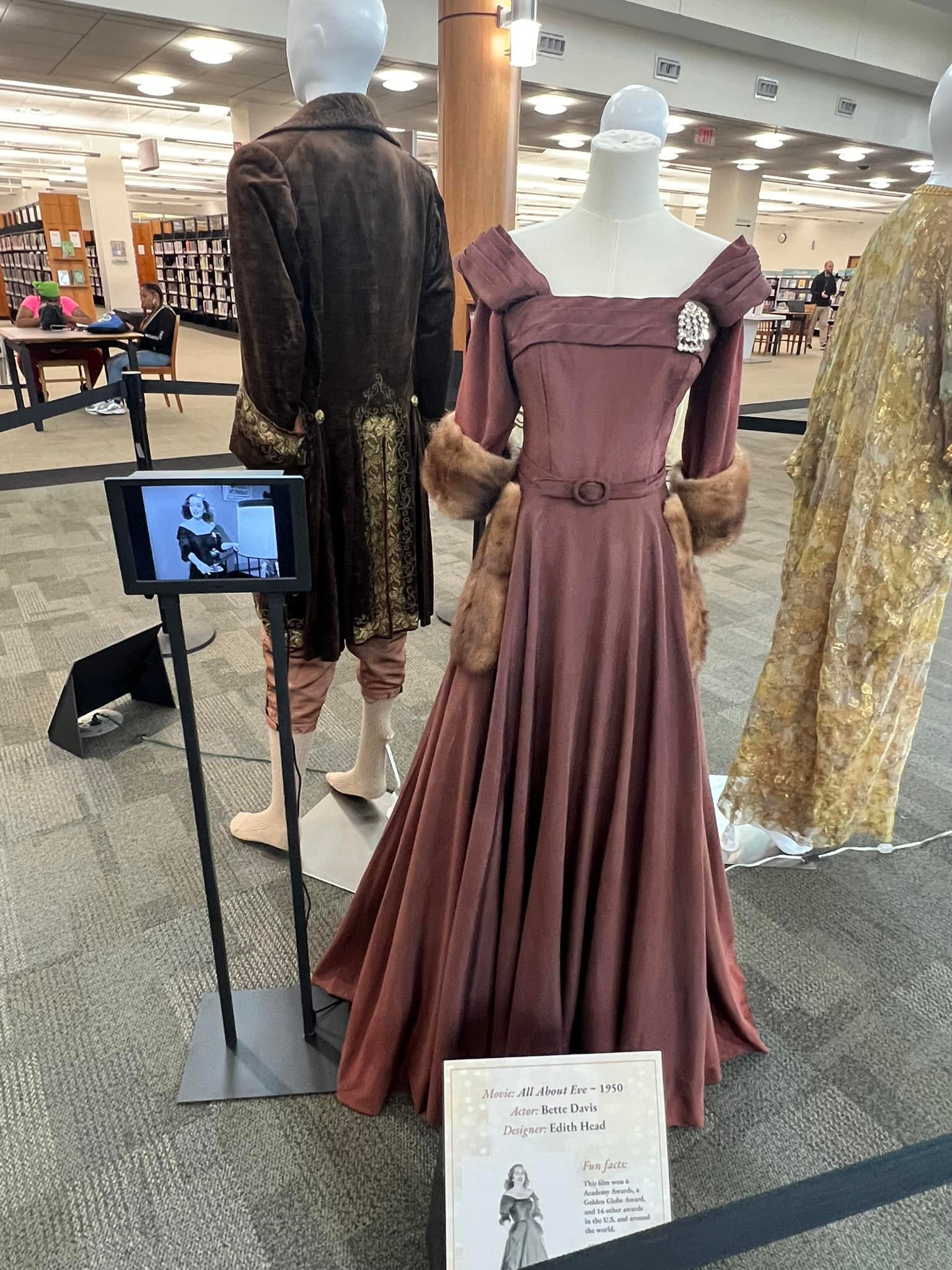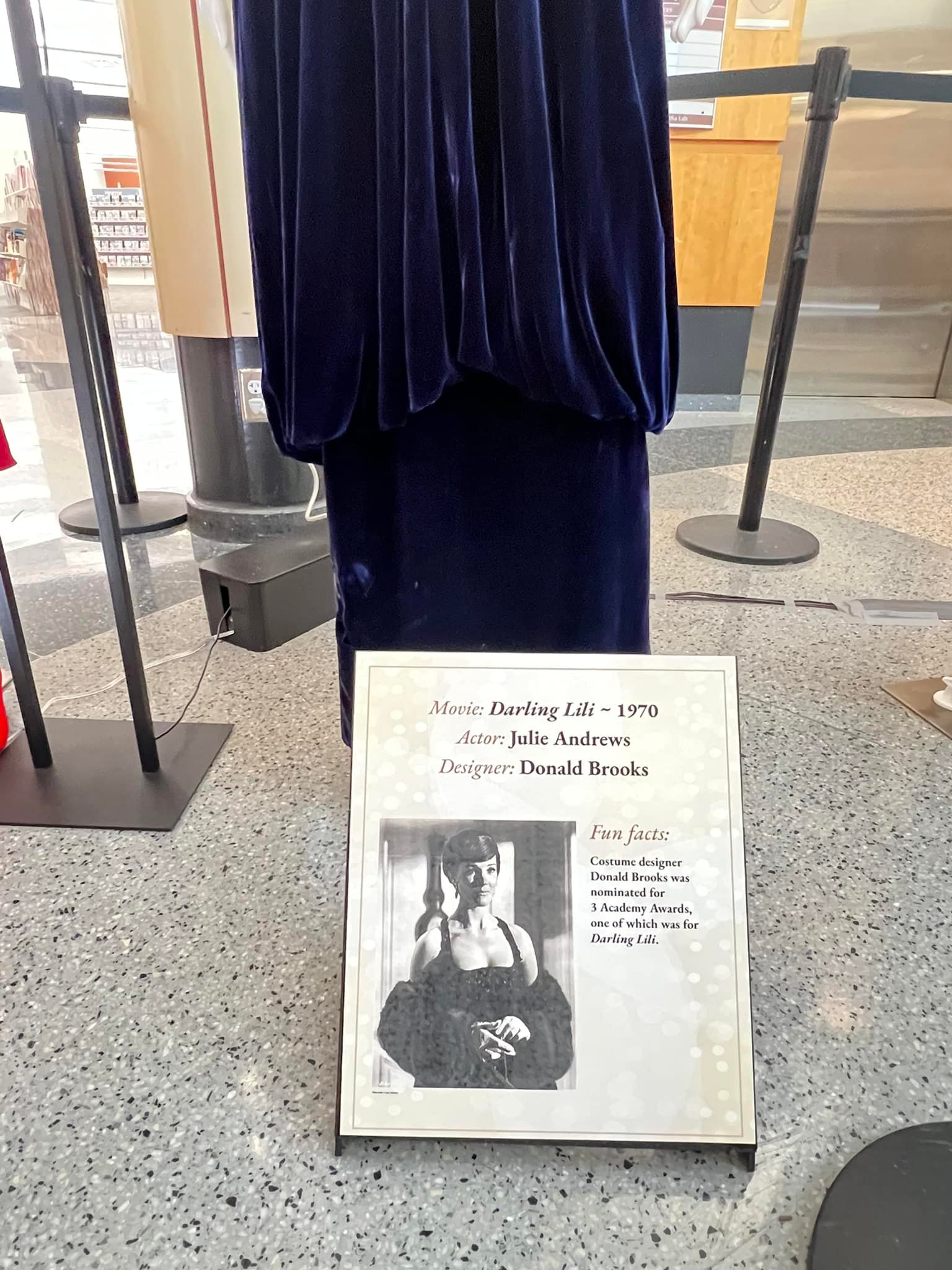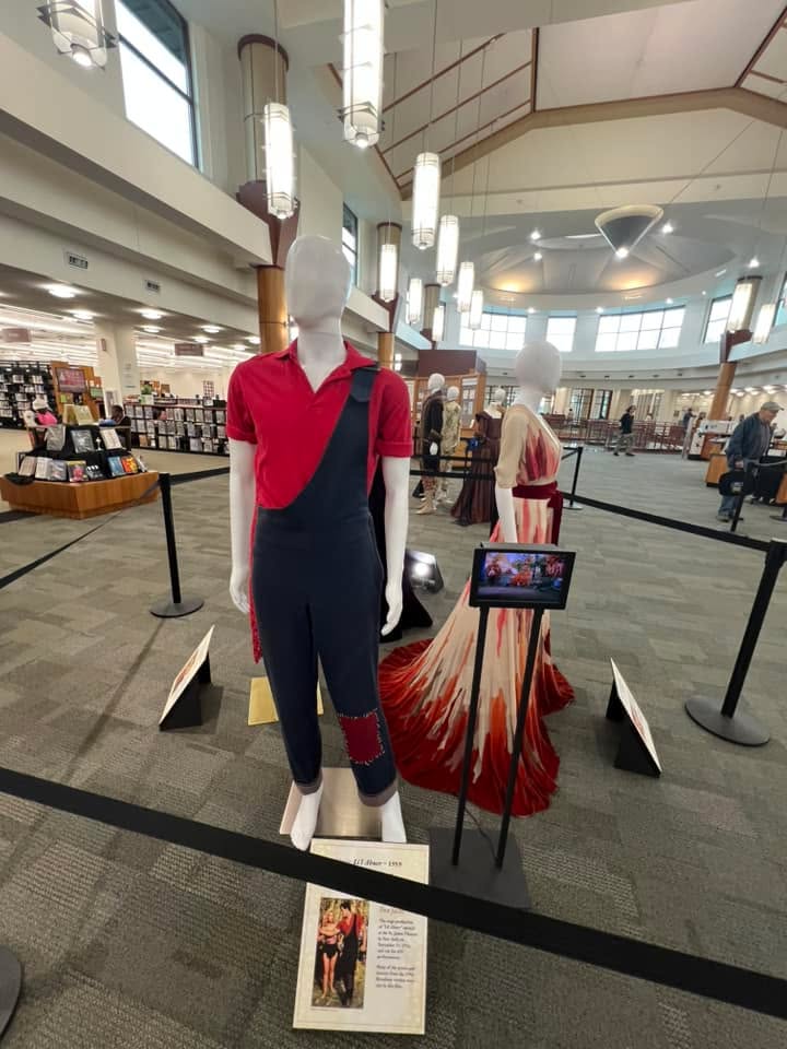In Summer 2025, I was delighted to visit the Gail Borden Public Library’s exhibition entitled “Glitz-Glamour-Gorgeous: A Tribute to Hollywood Movie Costumes.” This exhibit showcased costumes from the collection of Greg Schreiner on display at the library in Elgin, Illinois. The exhibit included 33 screen-worn costumes. I am thrilled to share some photographs of the costumes, specifically focusing on ones with stronger ties to Hollywood’s Golden Age.