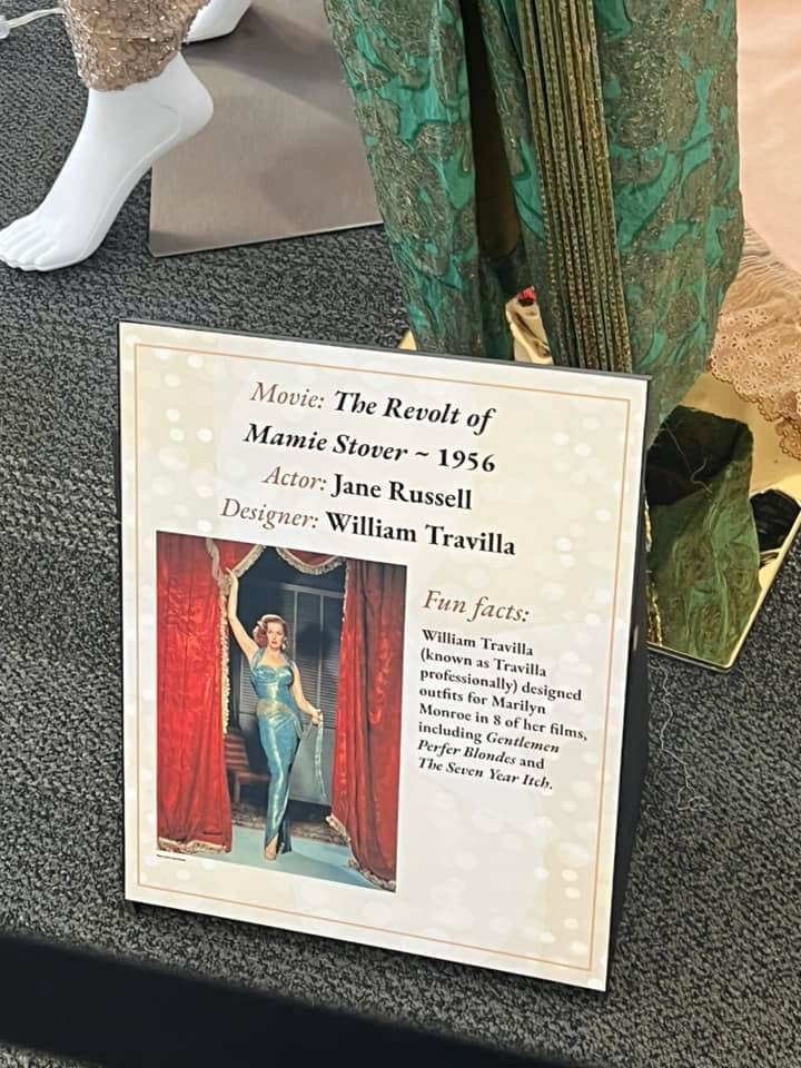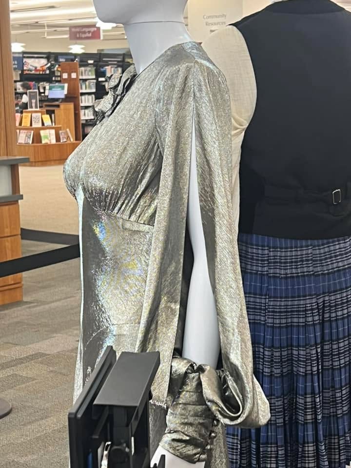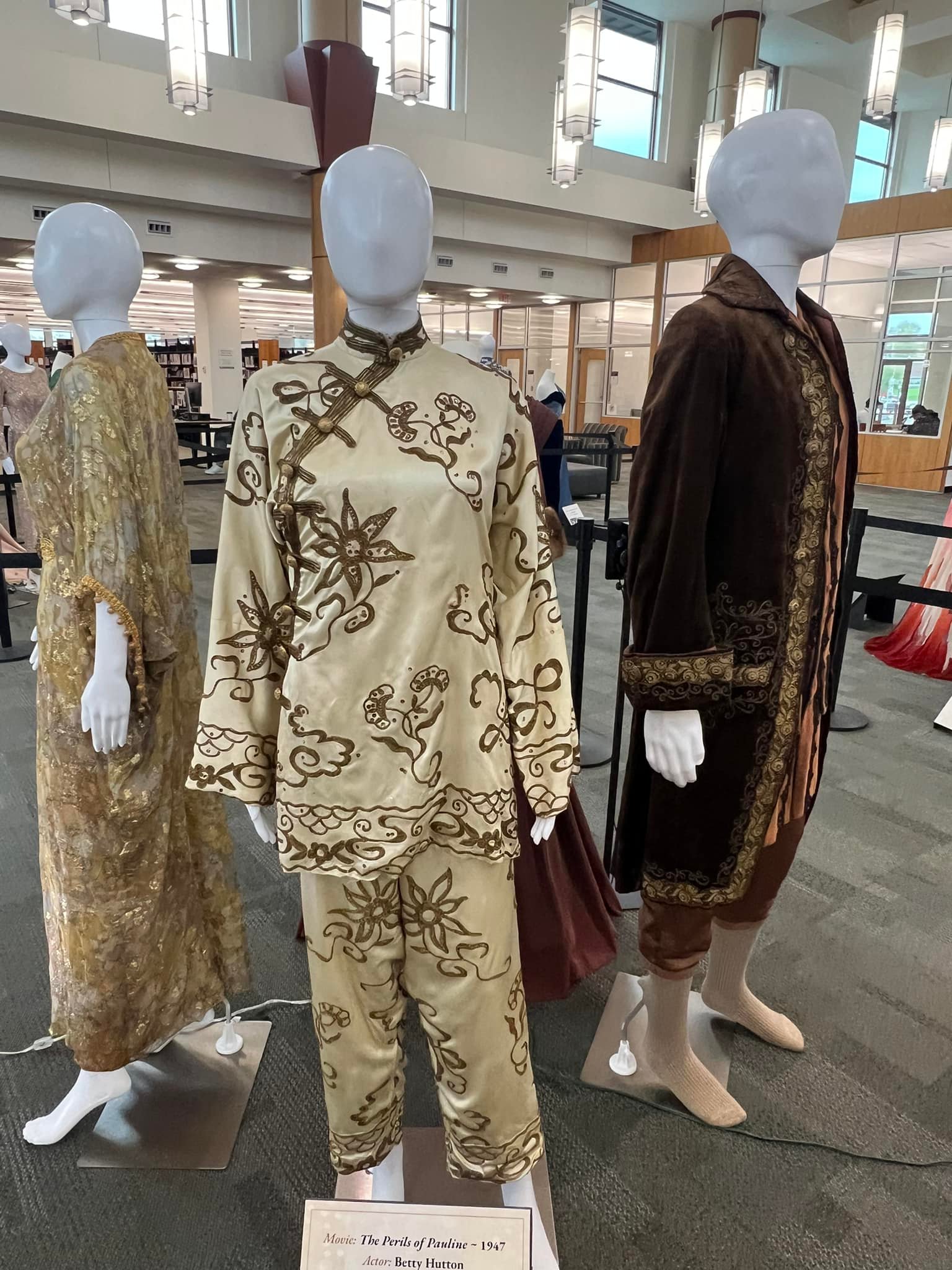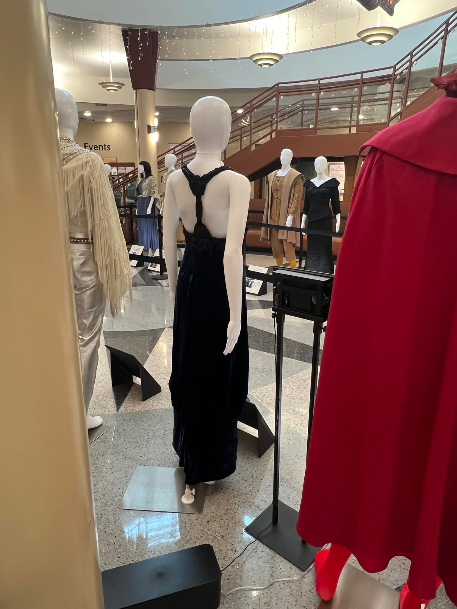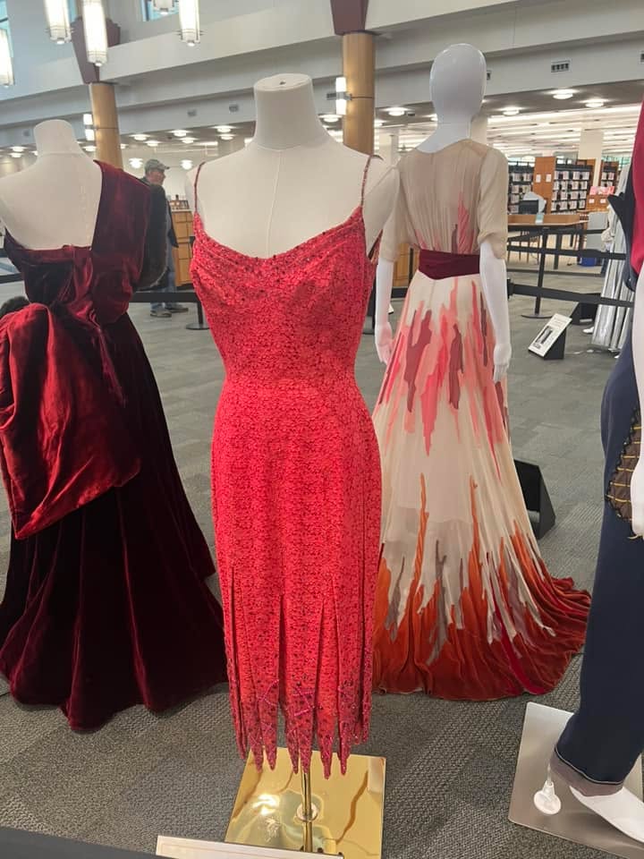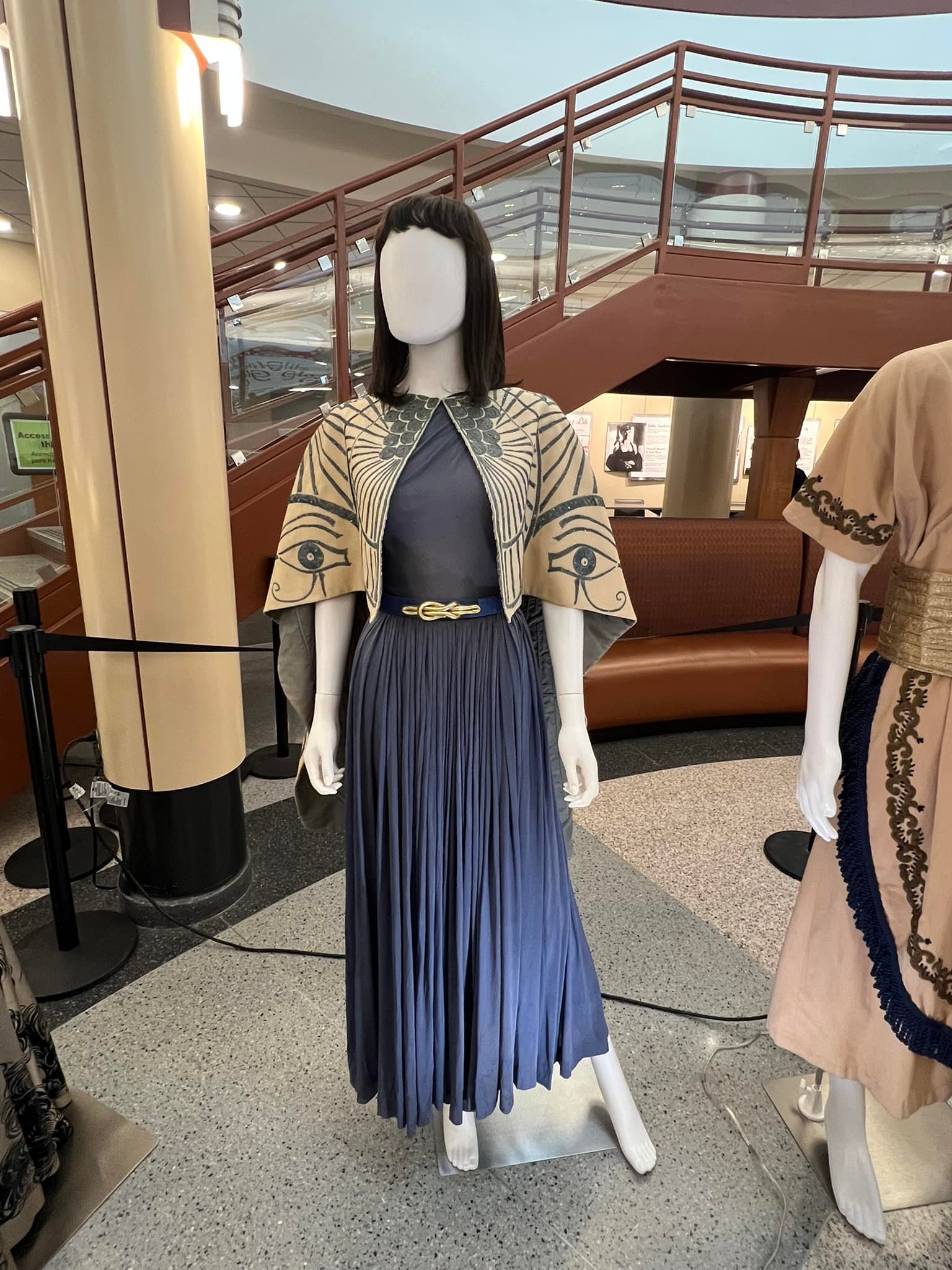In Summer 2025, I was delighted to visit the Gail Borden Public Library’s exhibition entitled “Glitz-Glamour-Gorgeous: A Tribute to Hollywood Movie Costumes.” This exhibit showcased costumes from the collection of Greg Schreiner on display at the library in Elgin, Illinois. The exhibit included 33 screen-worn costumes. I am thrilled to share some photographs of the costumes, specifically focusing on ones with stronger ties to Hollywood’s Golden Age.