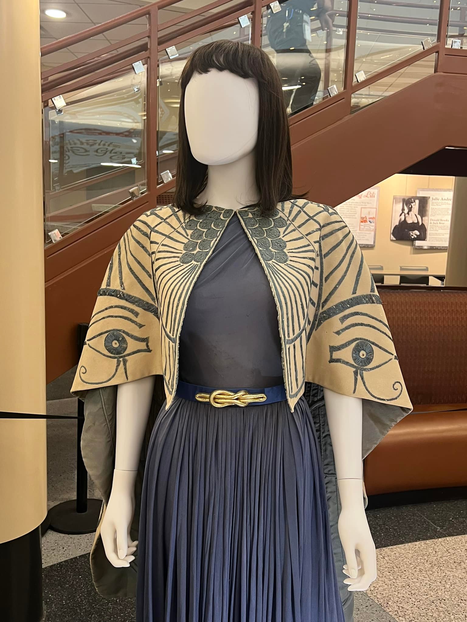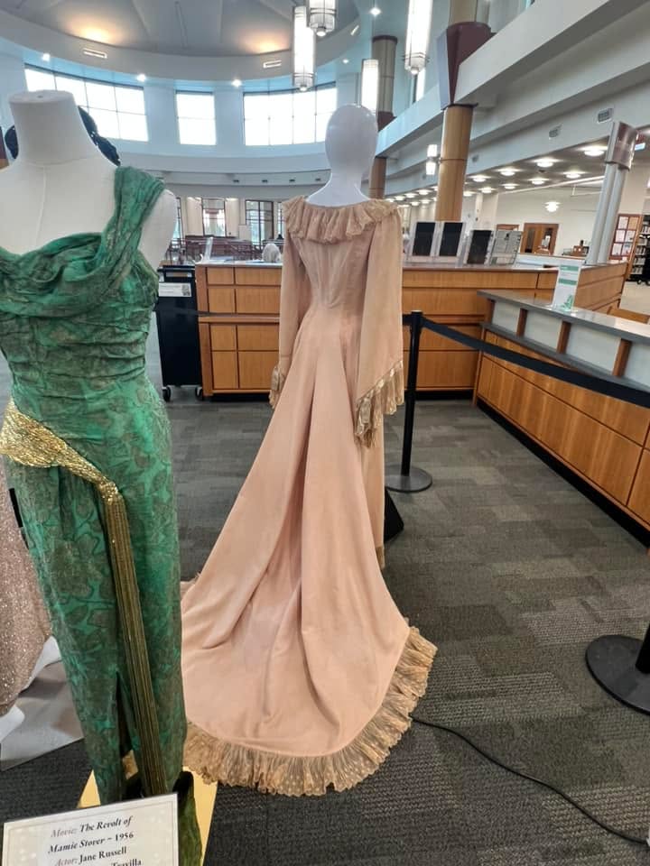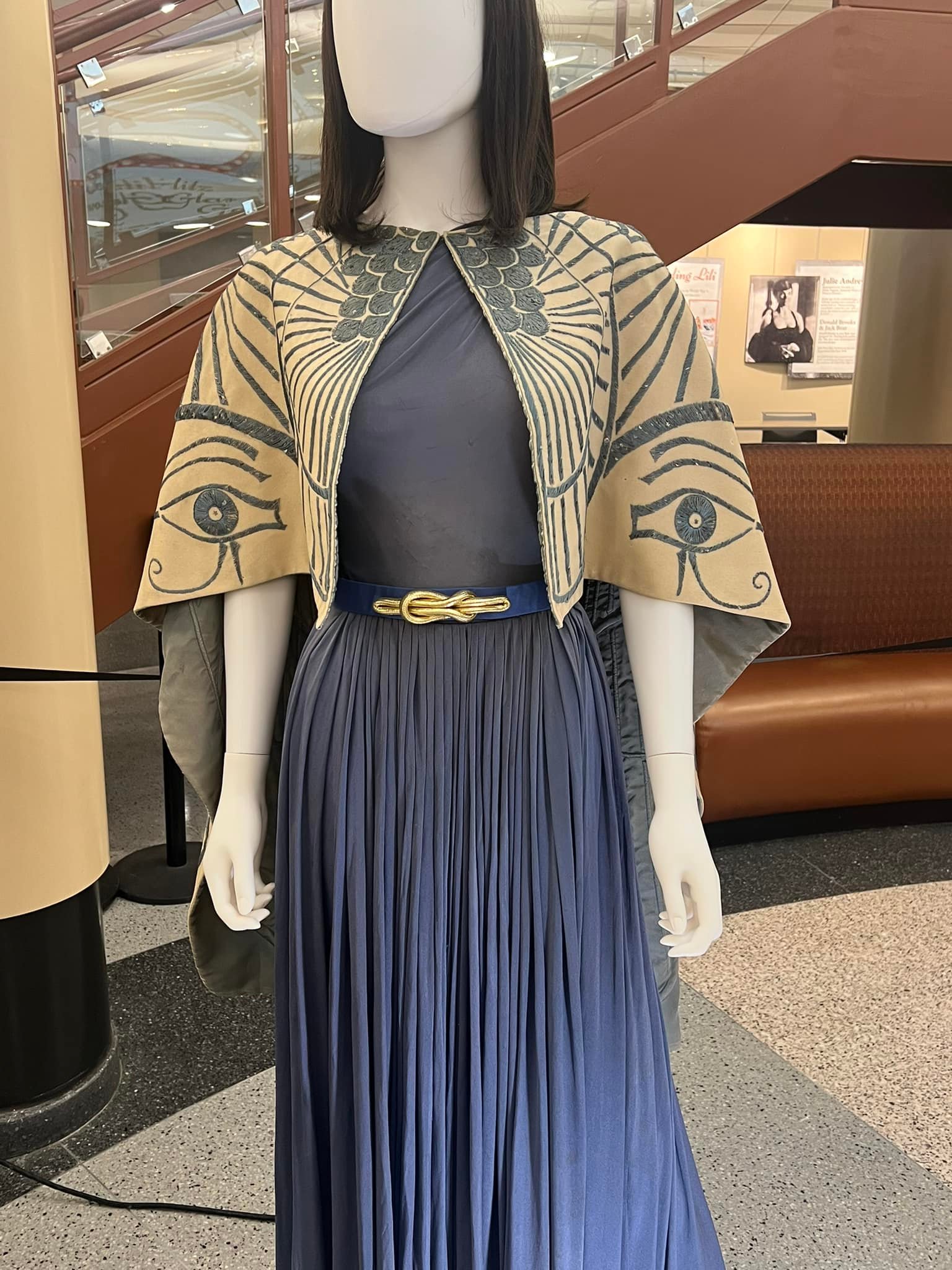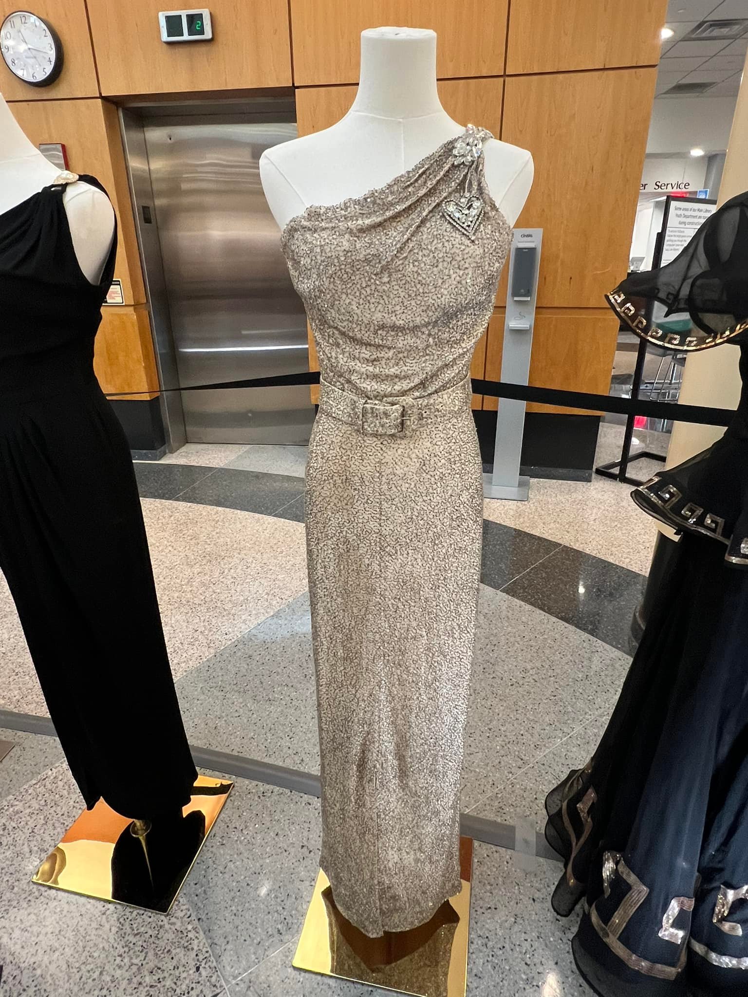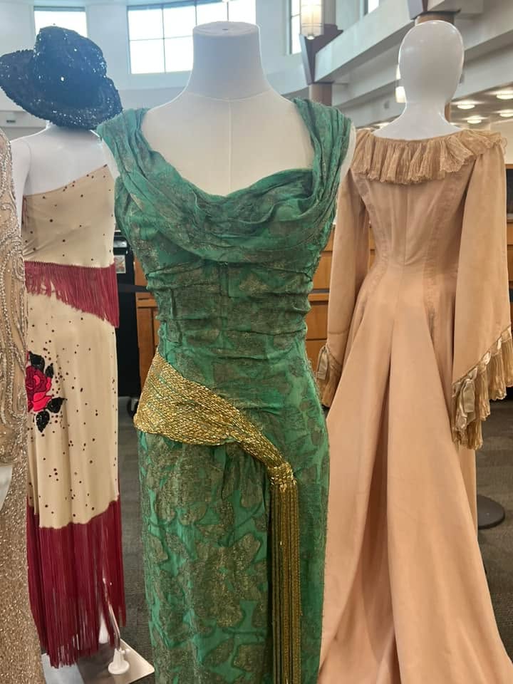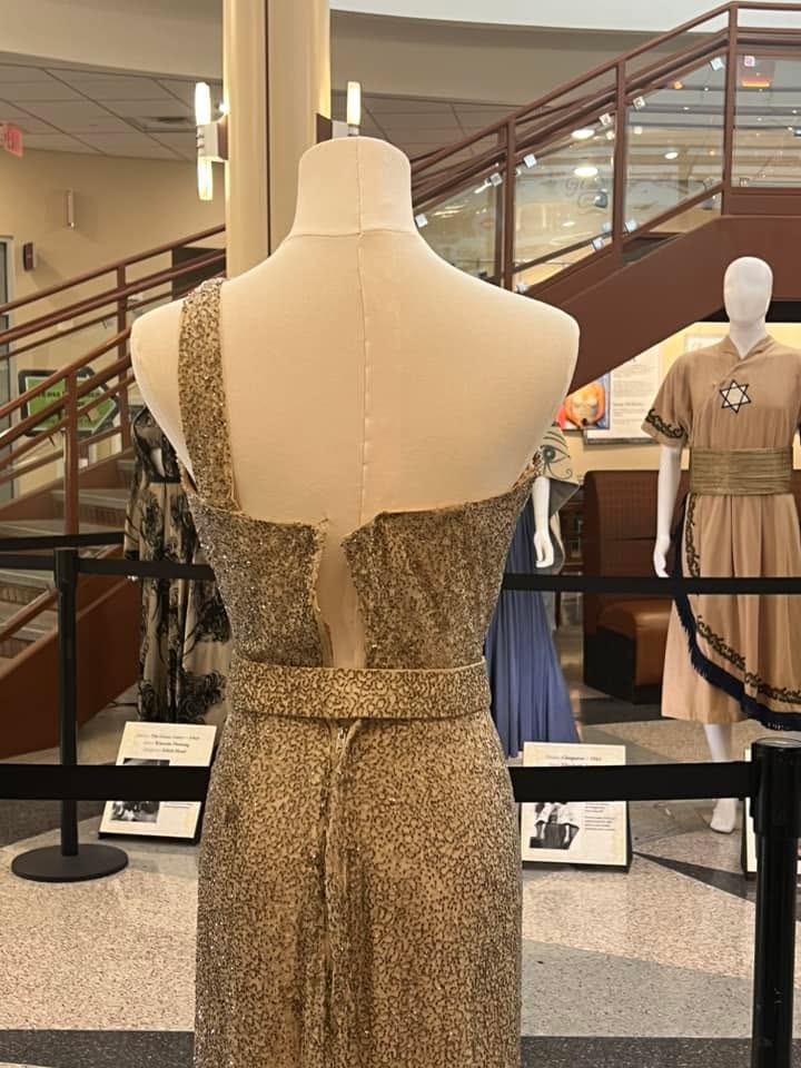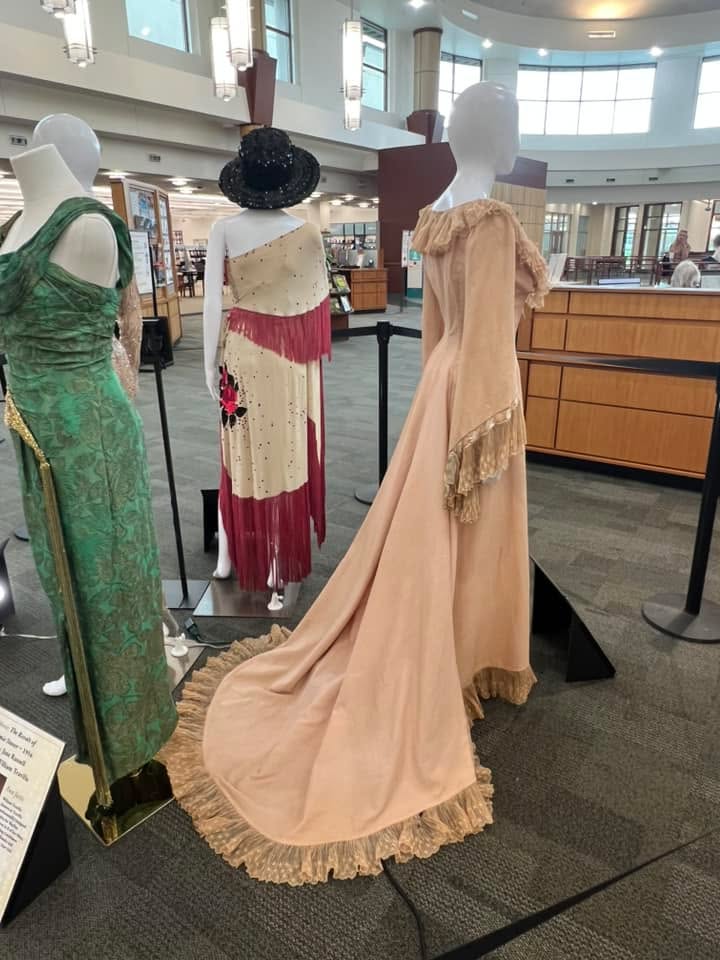 In Summer 2025, I was delighted to visit the Gail Borden Public Library’s exhibition entitled “Glitz-Glamour-Gorgeous: A Tribute to Hollywood Movie Costumes.” This exhibit showcased costumes from the collection of Greg Schreiner on display at the library in Elgin, Illinois. The exhibit included 33 screen-worn costumes. I am thrilled to share some photographs of the costumes, specifically focusing on ones with stronger ties to Hollywood’s Golden Age.
