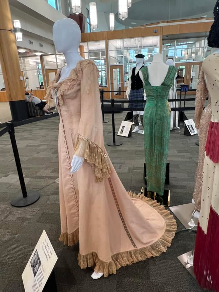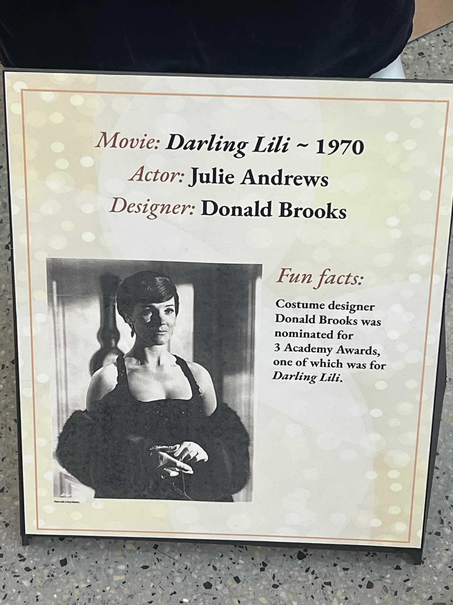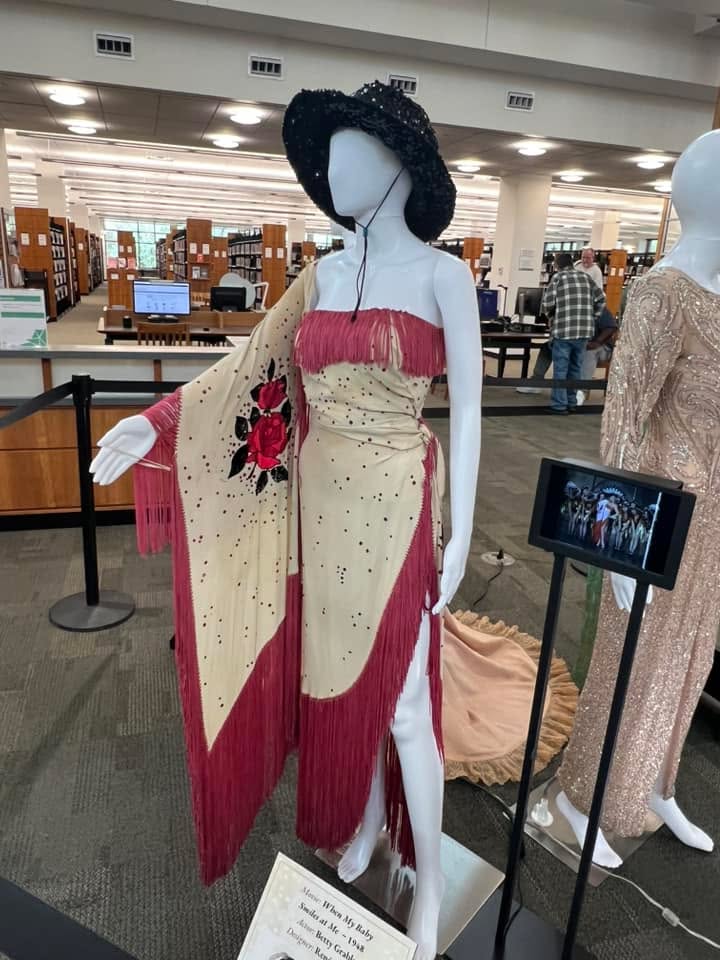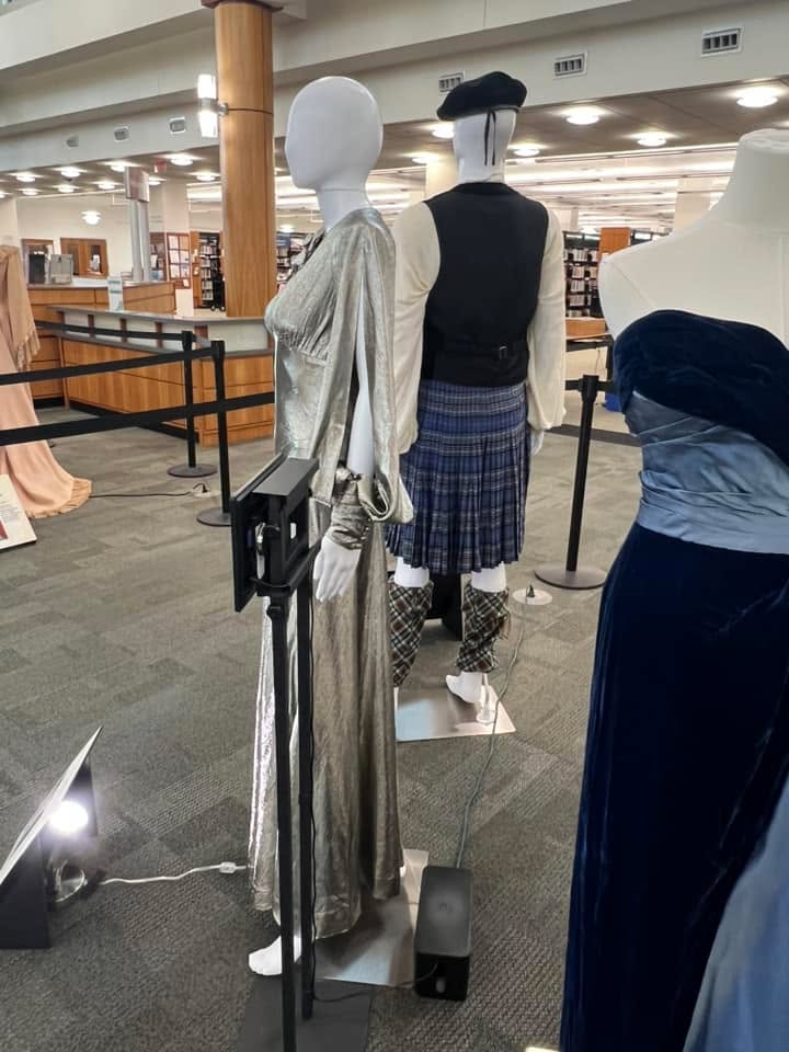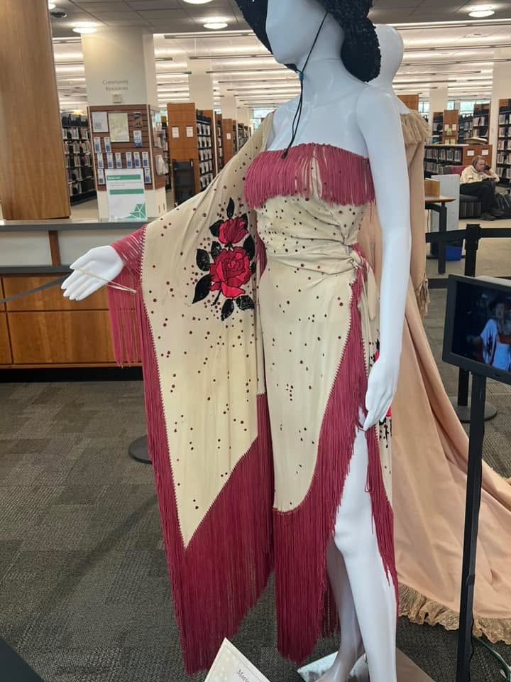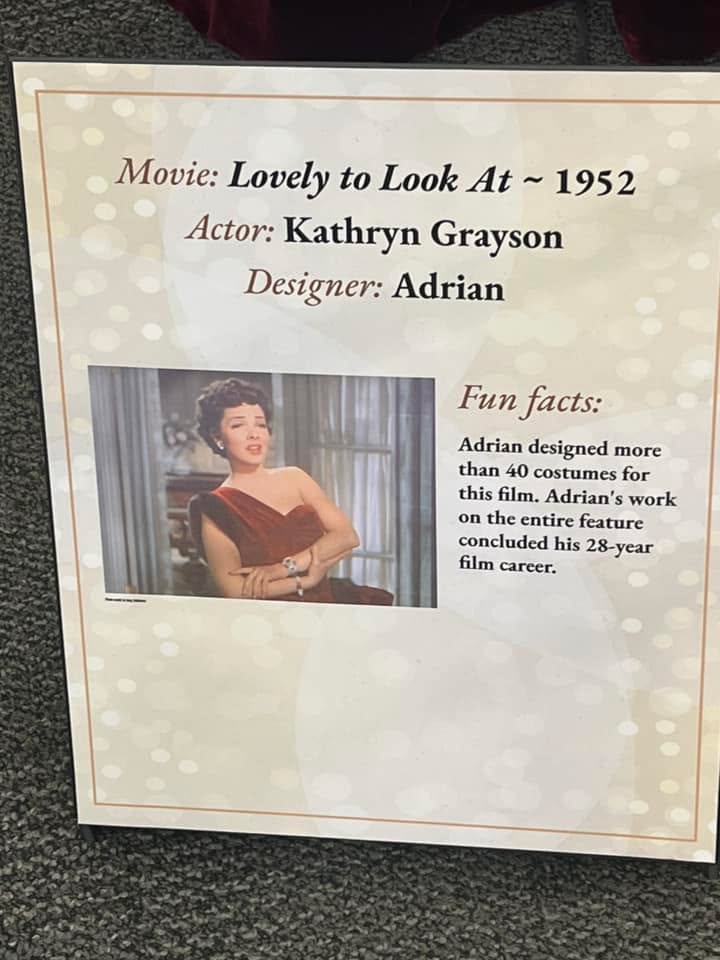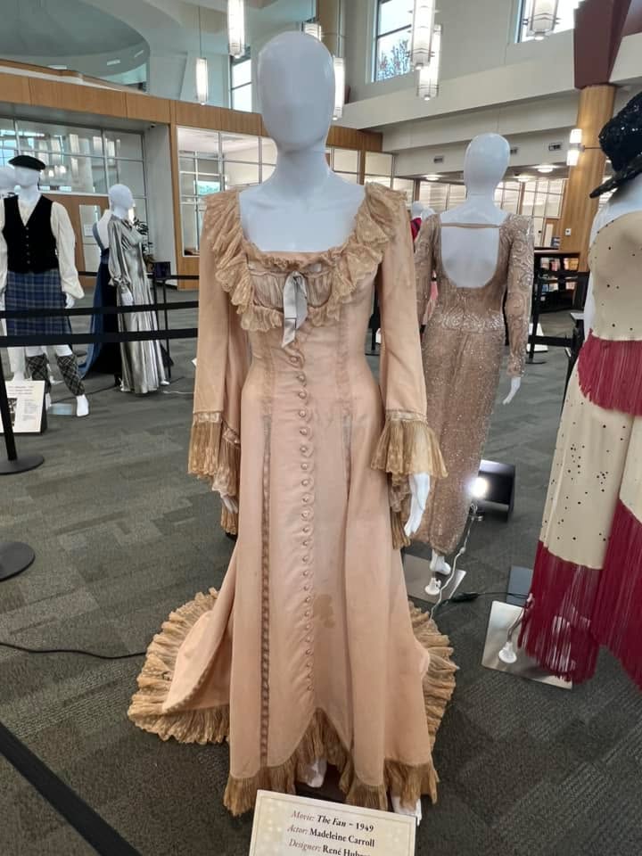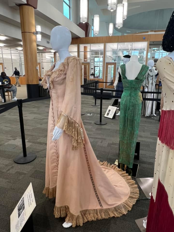 In Summer 2025, I was delighted to visit the Gail Borden Public Library’s exhibition entitled “Glitz-Glamour-Gorgeous: A Tribute to Hollywood Movie Costumes.” This exhibit showcased costumes from the collection of Greg Schreiner on display at the library in Elgin, Illinois. The exhibit included 33 screen-worn costumes. I am thrilled to share some photographs of the costumes, specifically focusing on ones with stronger ties to Hollywood’s Golden Age.