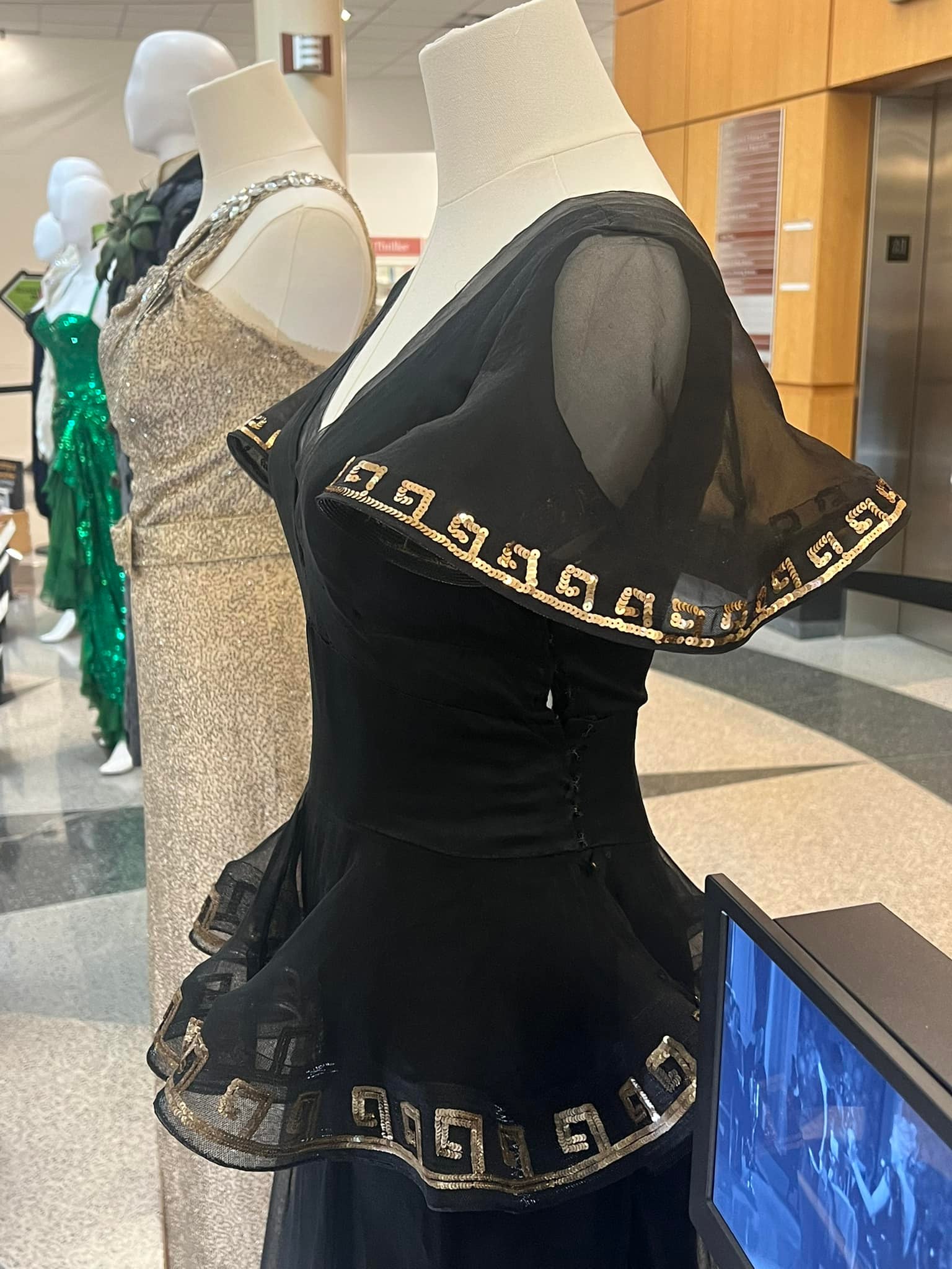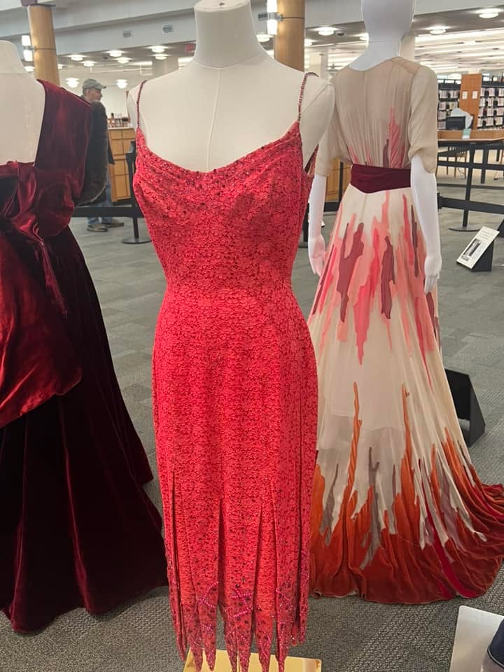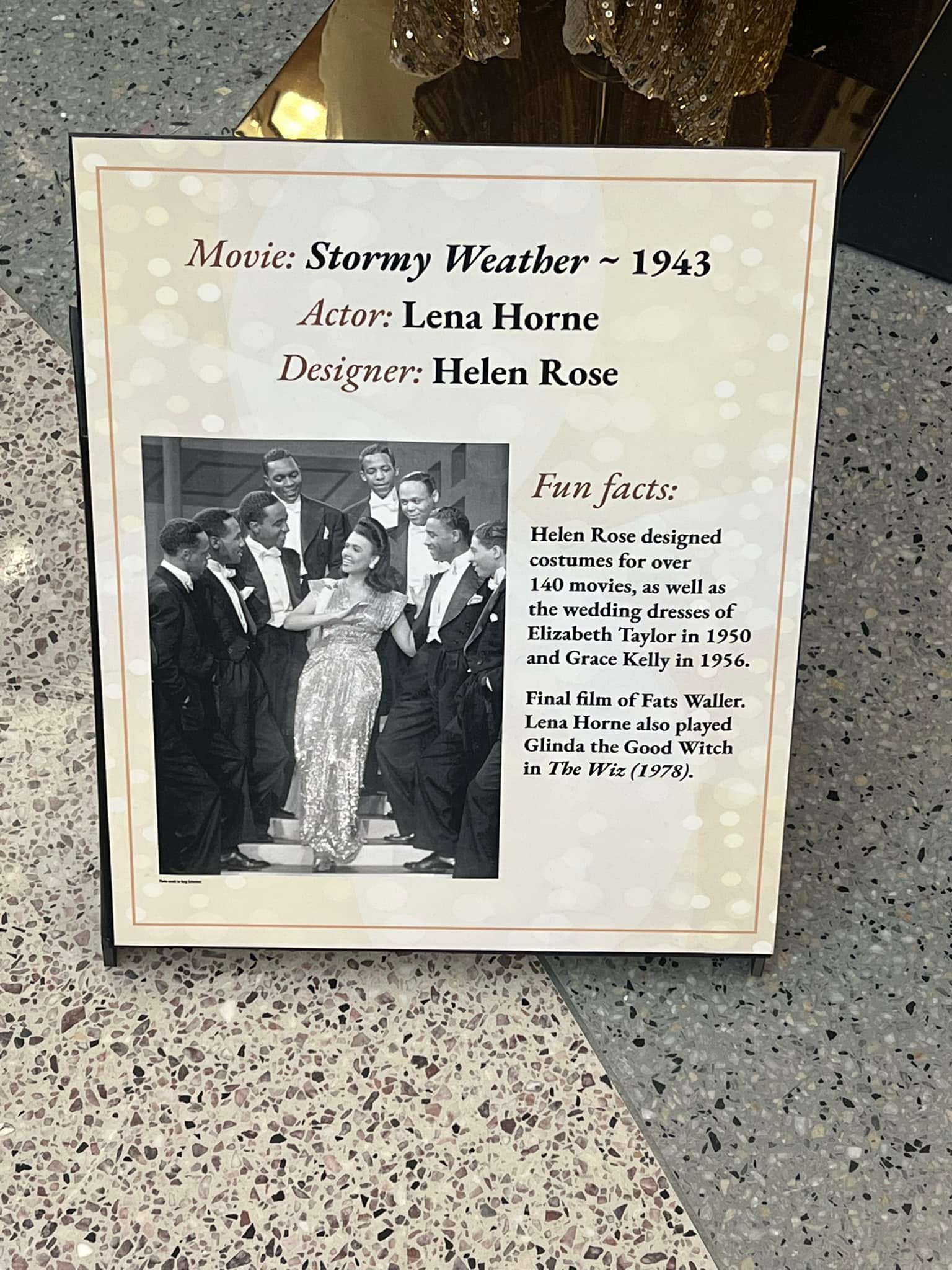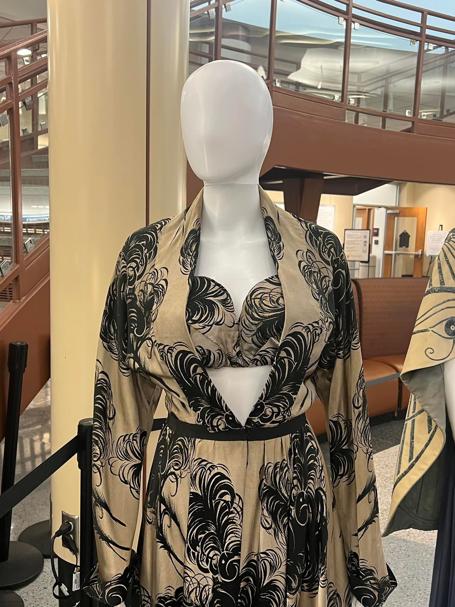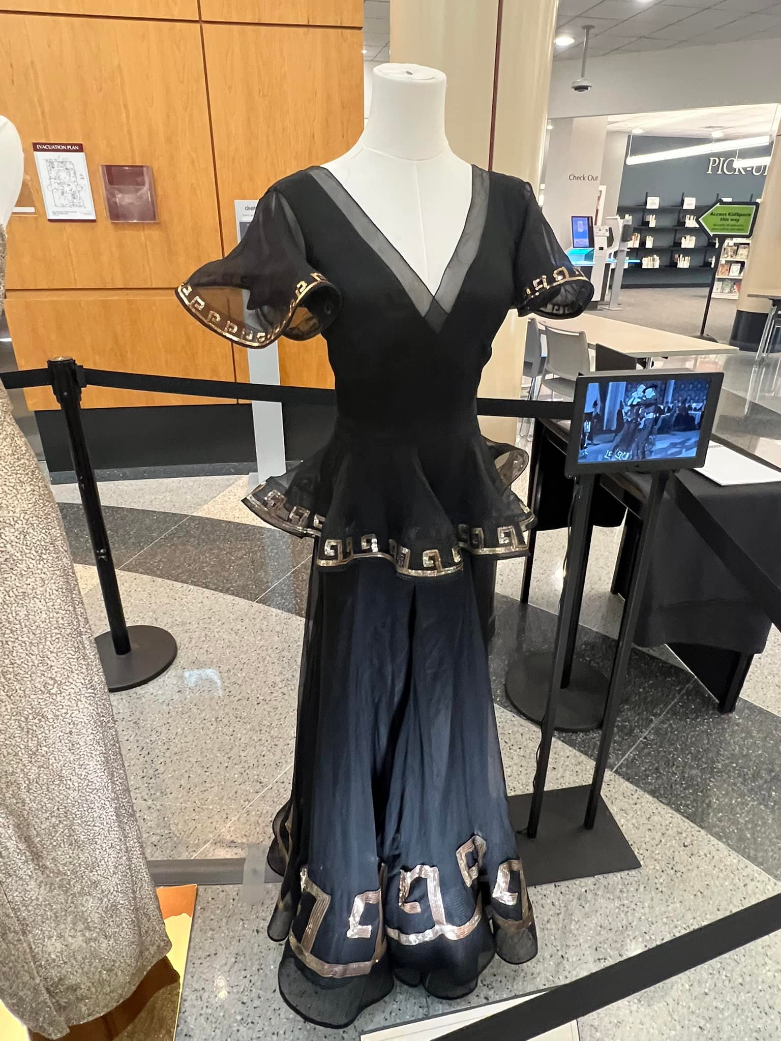 In Summer 2025, I was delighted to visit the Gail Borden Public Library’s exhibition entitled “Glitz-Glamour-Gorgeous: A Tribute to Hollywood Movie Costumes.” This exhibit showcased costumes from the collection of Greg Schreiner on display at the library in Elgin, Illinois. The exhibit included 33 screen-worn costumes. I am thrilled to share some photographs of the costumes, specifically focusing on ones with stronger ties to Hollywood’s Golden Age.