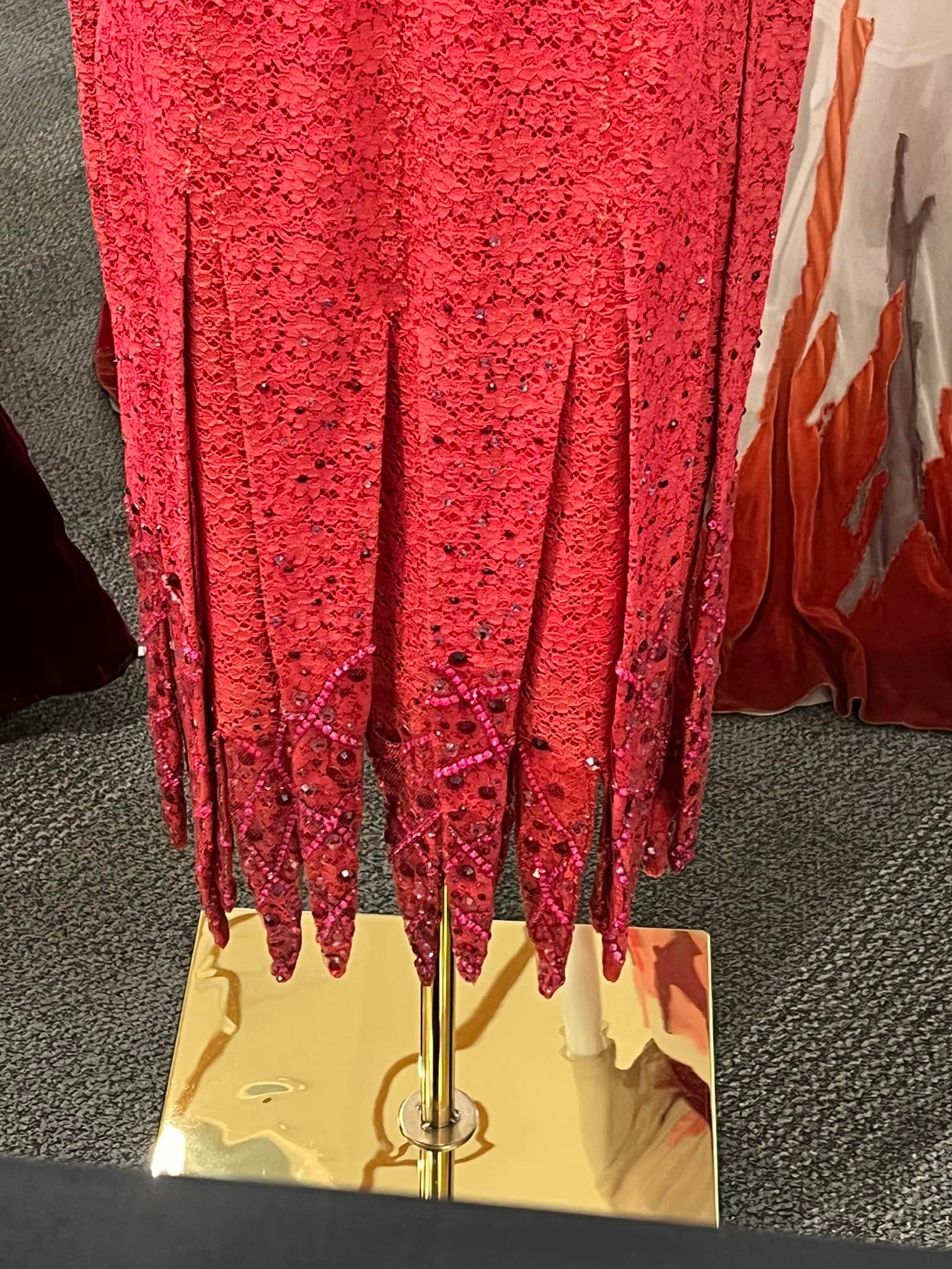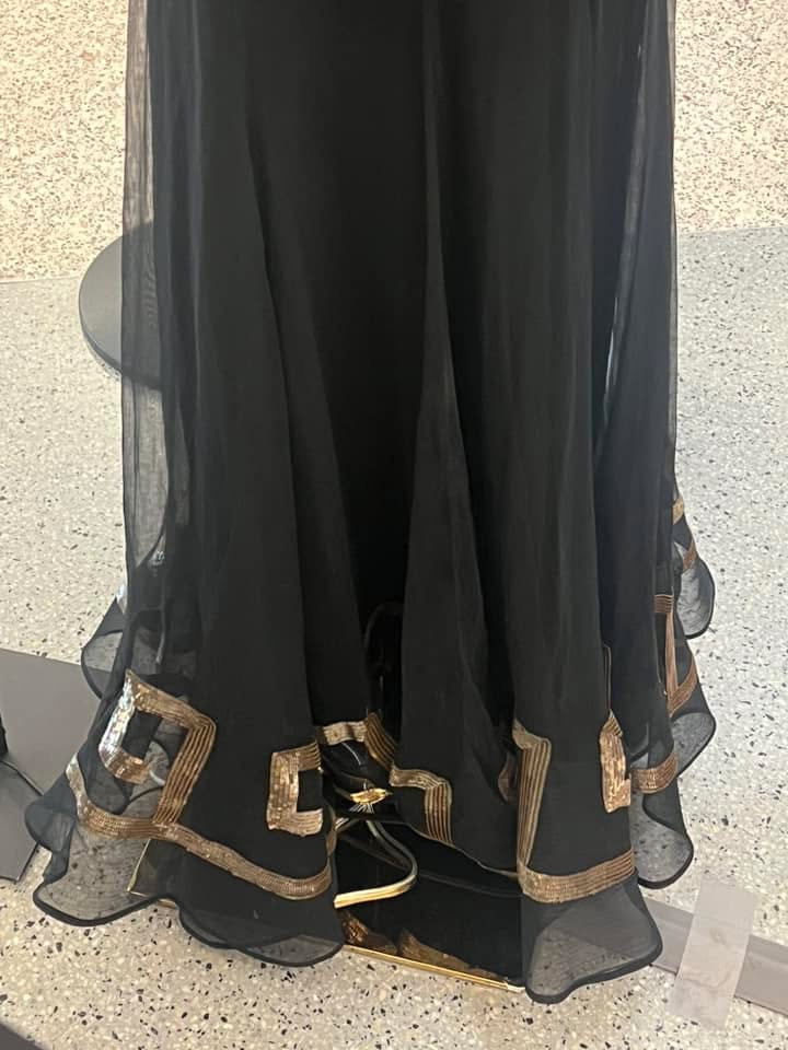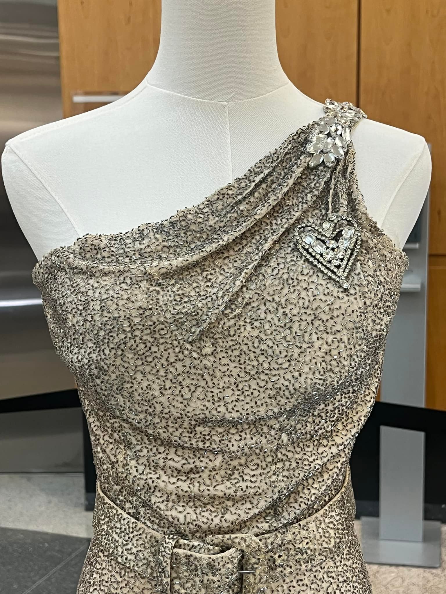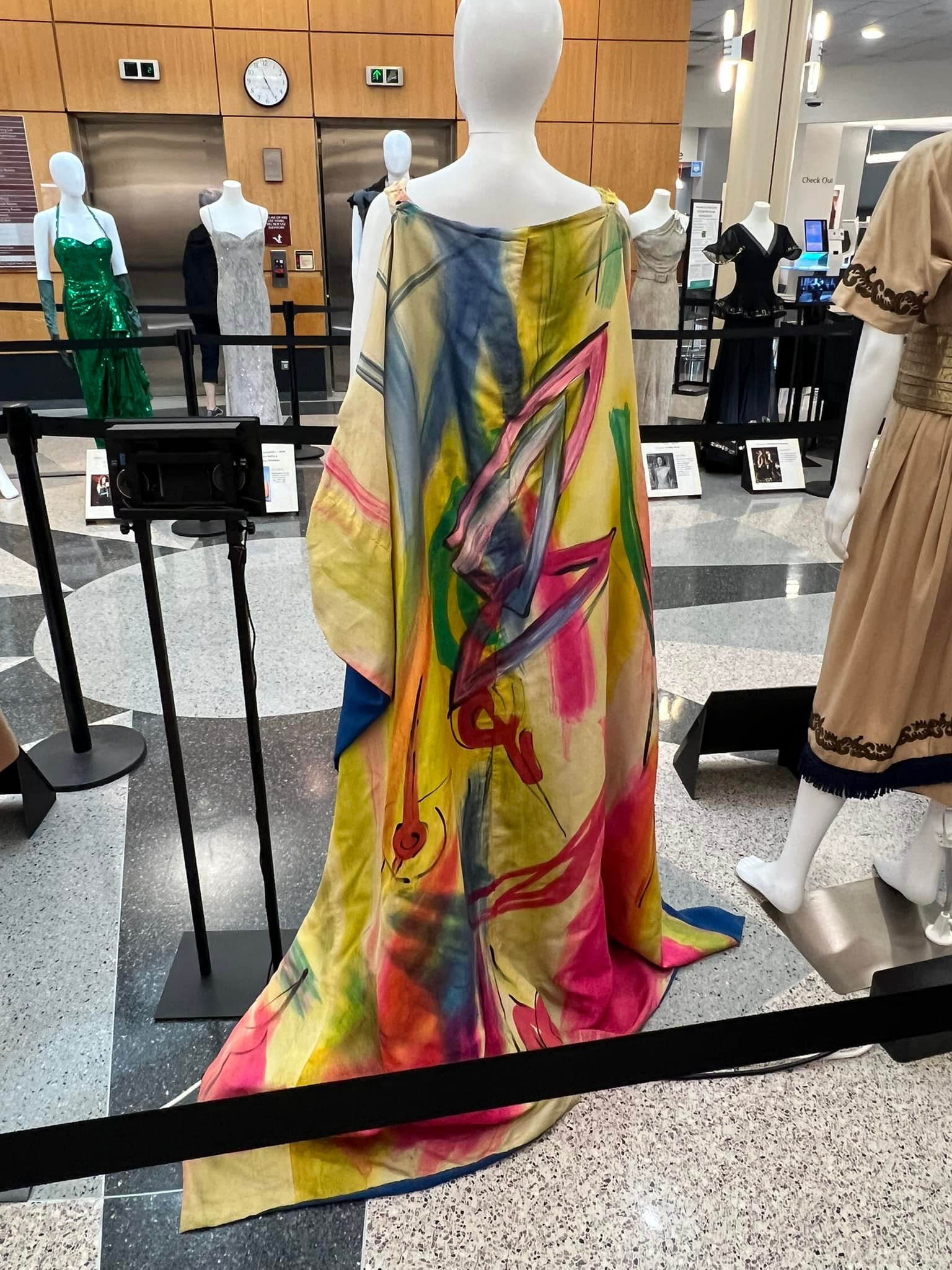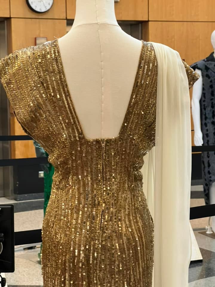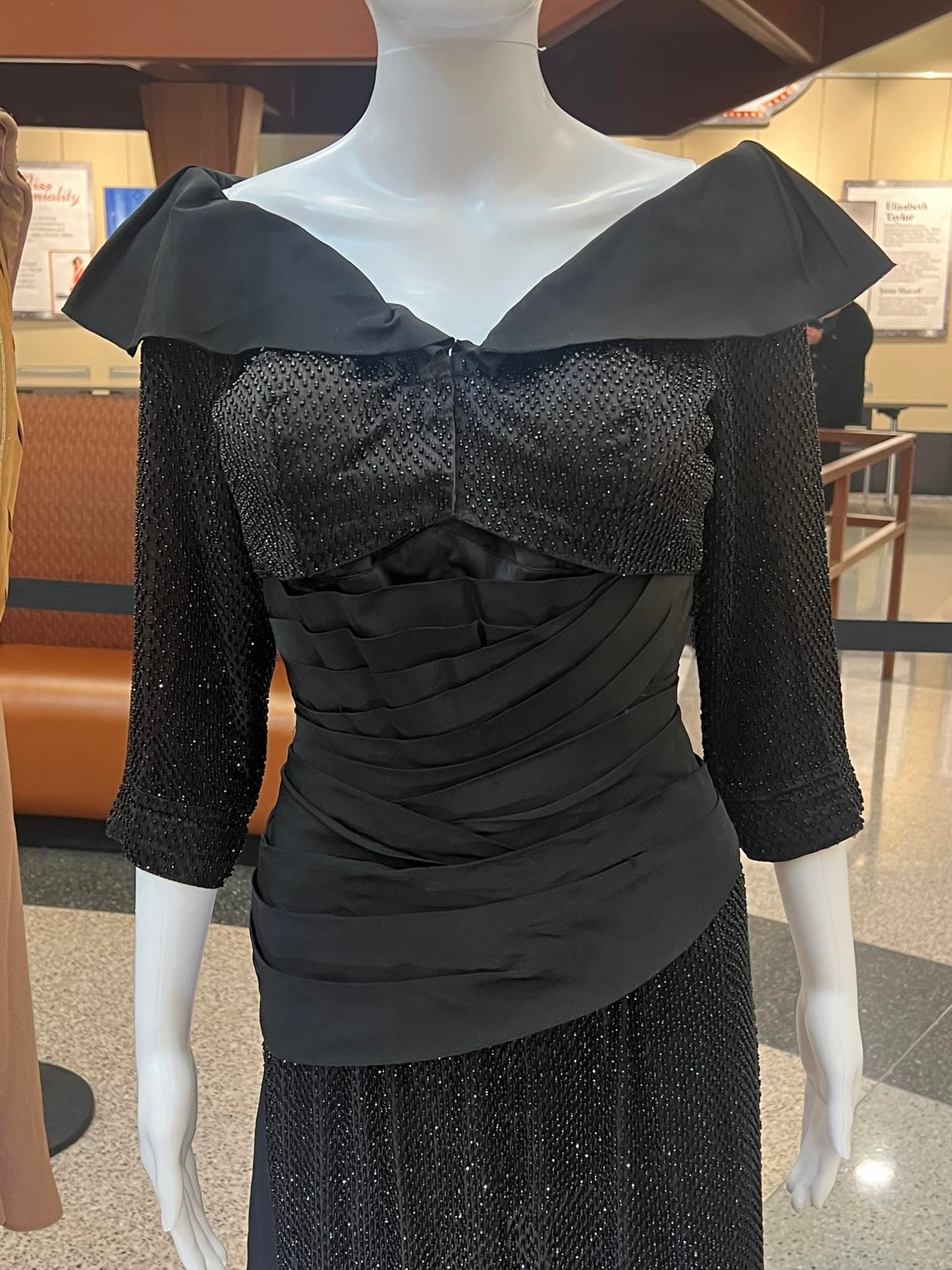 In Summer 2025, I was delighted to visit the Gail Borden Public Library’s exhibition entitled “Glitz-Glamour-Gorgeous: A Tribute to Hollywood Movie Costumes.” This exhibit showcased costumes from the collection of Greg Schreiner on display at the library in Elgin, Illinois. The exhibit included 33 screen-worn costumes. I am thrilled to share some photographs of the costumes, specifically focusing on ones with stronger ties to Hollywood’s Golden Age.
