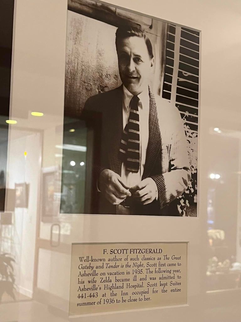 In the mid-1930s, F. Scott Fitzgerald and Zelda Fitzgerald resided in Asheville. As Zelda required more care for her mental health, F. Scott stayed at the inn during this trying period. He occupied rooms 441 and 443, which are now marked with a plaque.