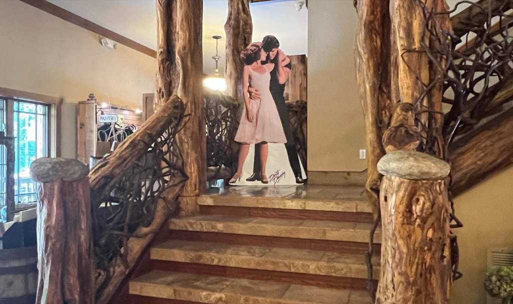 Of course, the most famous moment in the film is Baby’s lift stunt, performed by Patrick Swayze and Jennifer Grey. This particular shot was filmed at a gymnasium, which was ultimately razed in the 1980s; however, the floor from the dance sequence survives in the lobby of the Esmerelda Inn in Chimney Rock, North Carolina.