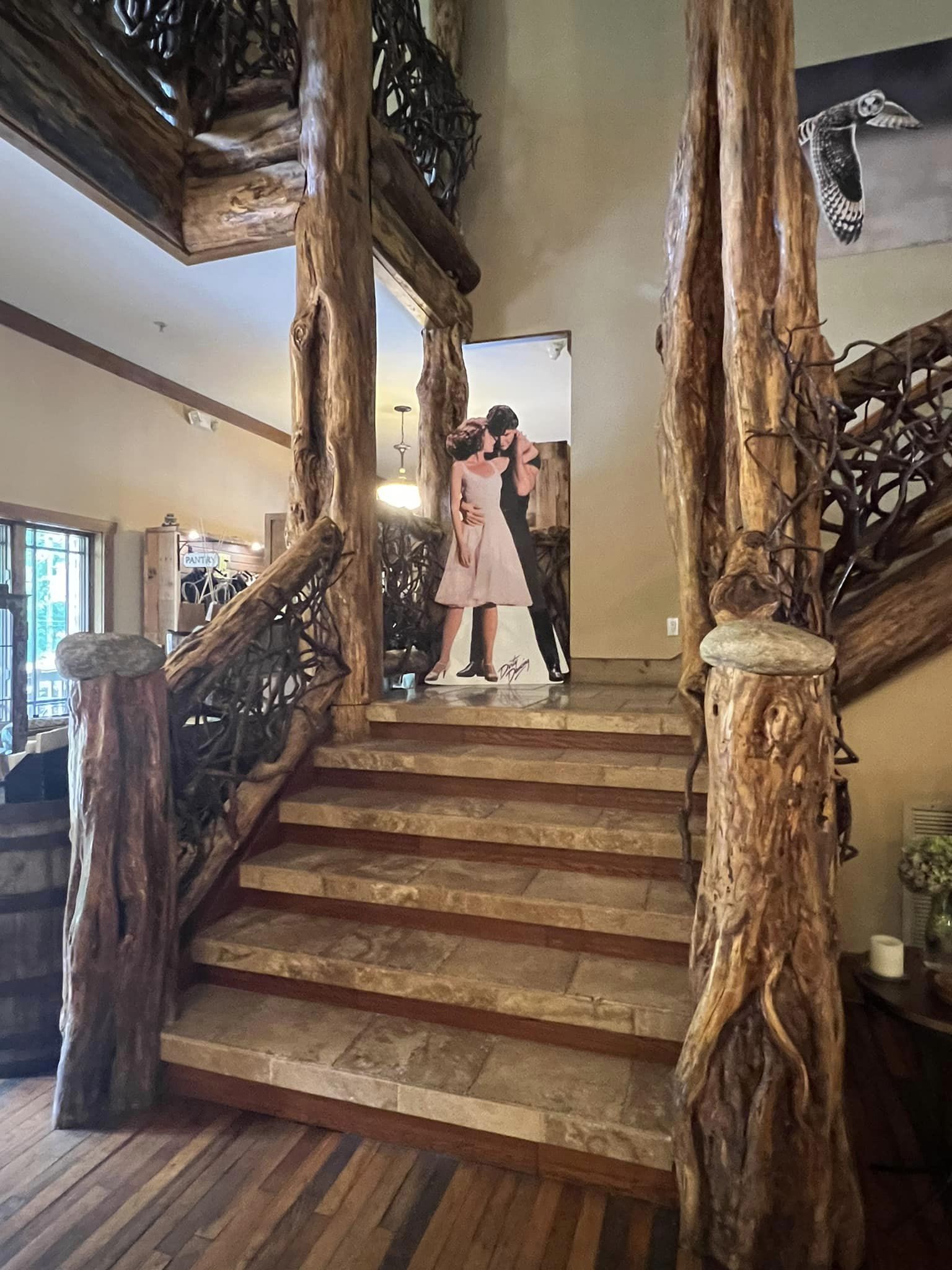 Of course, the most famous moment in the film is Baby’s lift stunt, performed by Patrick Swayze and Jennifer Grey. This particular shot was filmed at a gymnasium, which was ultimately razed in the 1980s; however, the floor from the dance sequence survives in the lobby of the Esmerelda Inn in Chimney Rock, North Carolina.
