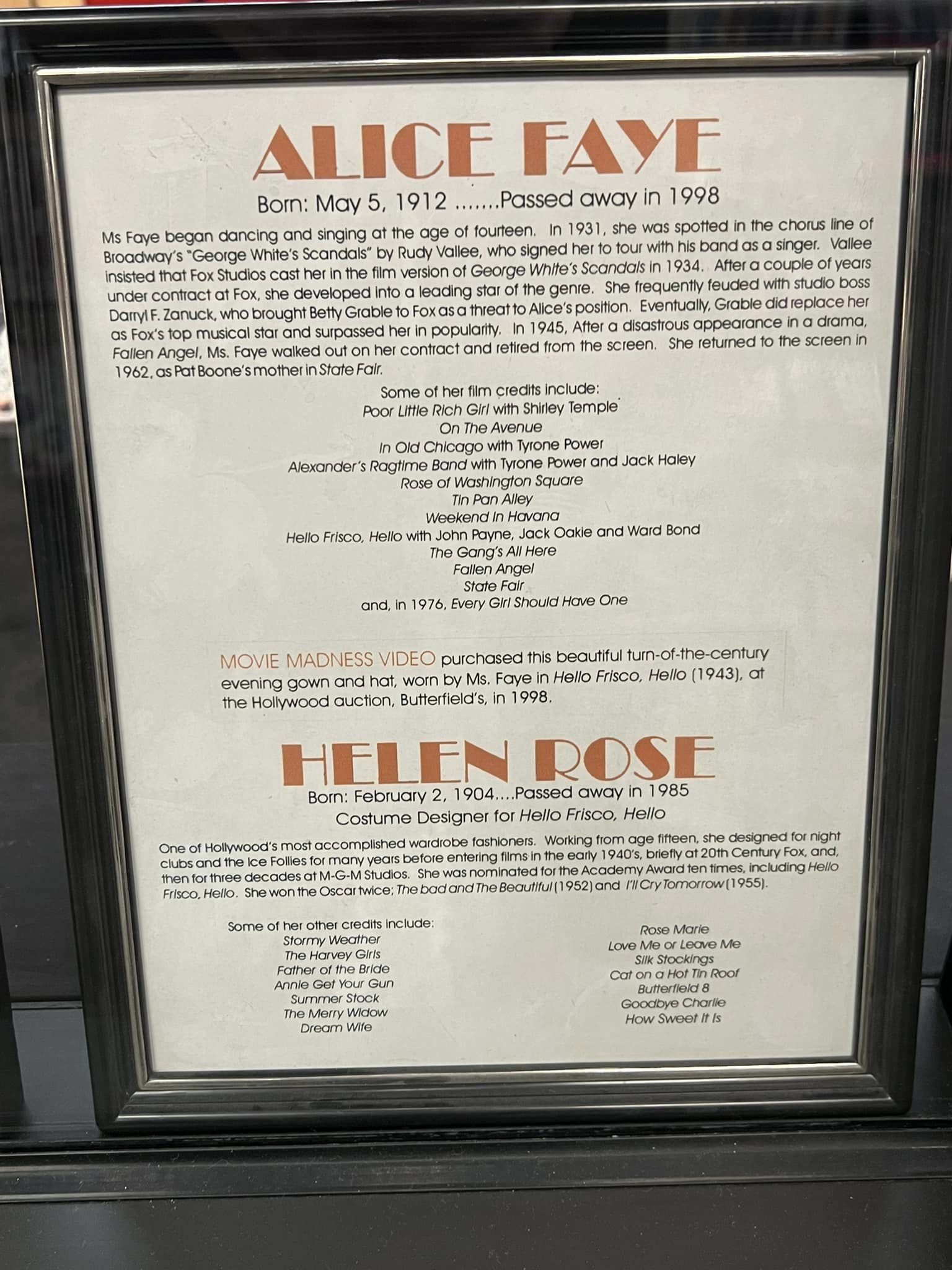 Alice Faye’s costume from Hello Frisco, Hello (1943)