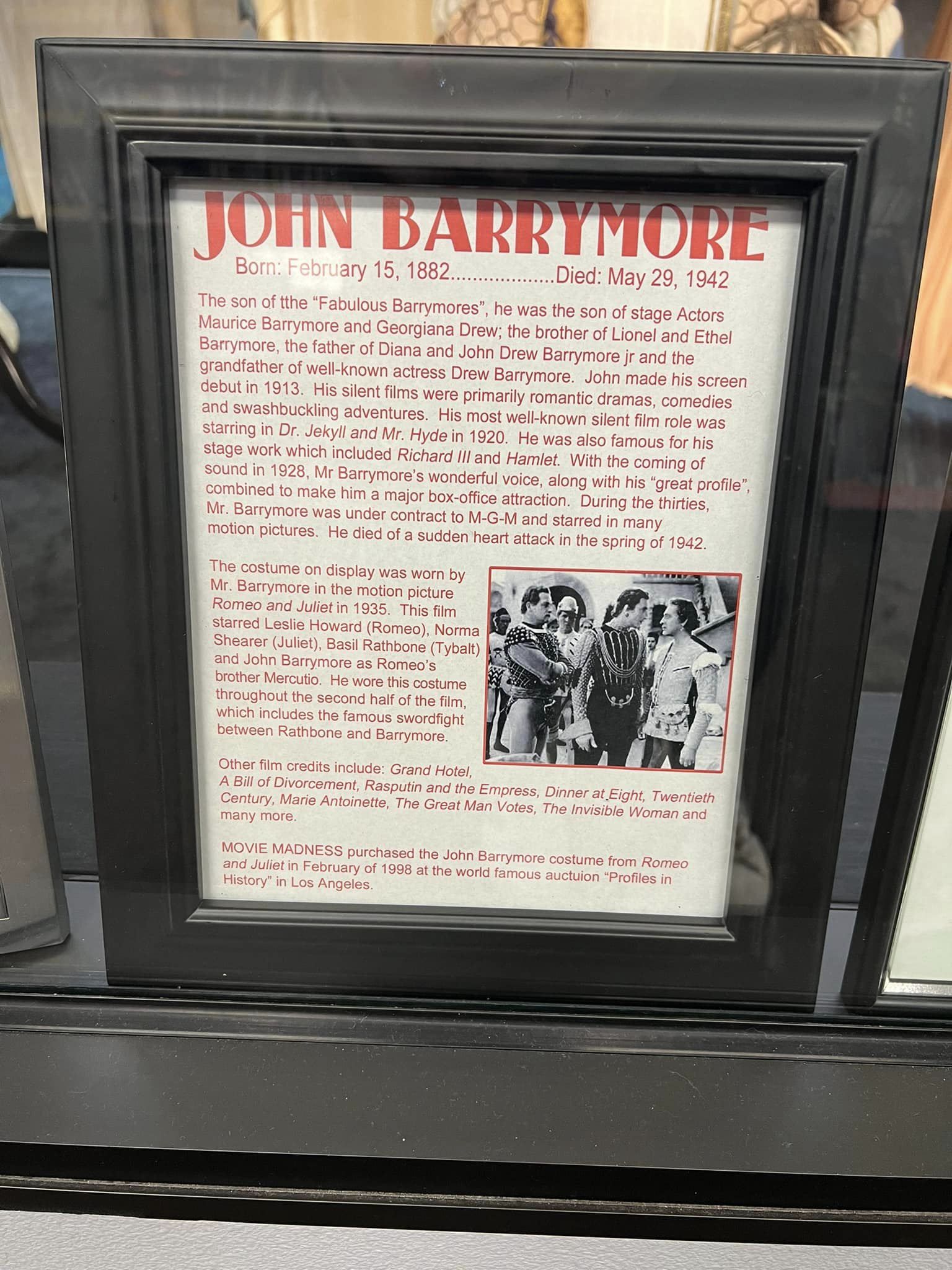 John Barrymore’s costume from Romeo and Juliet (1936)