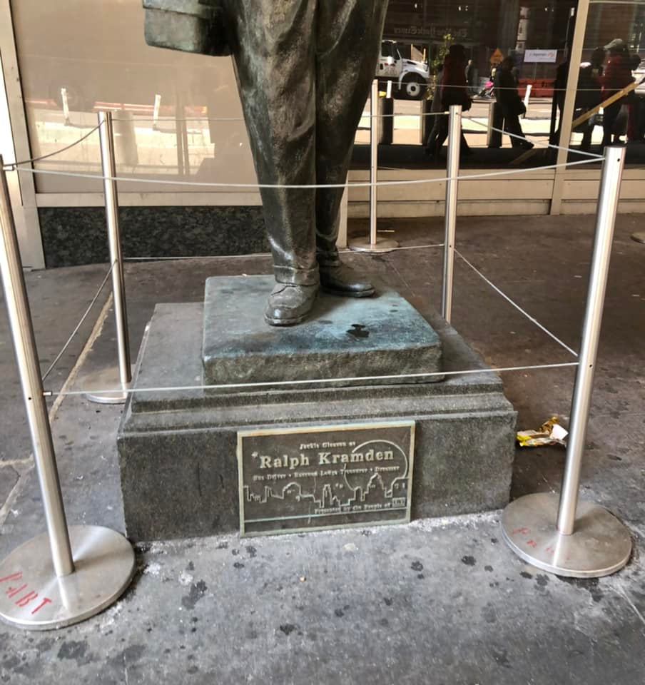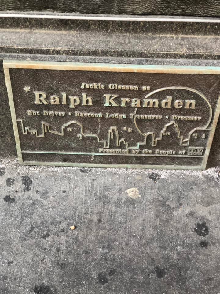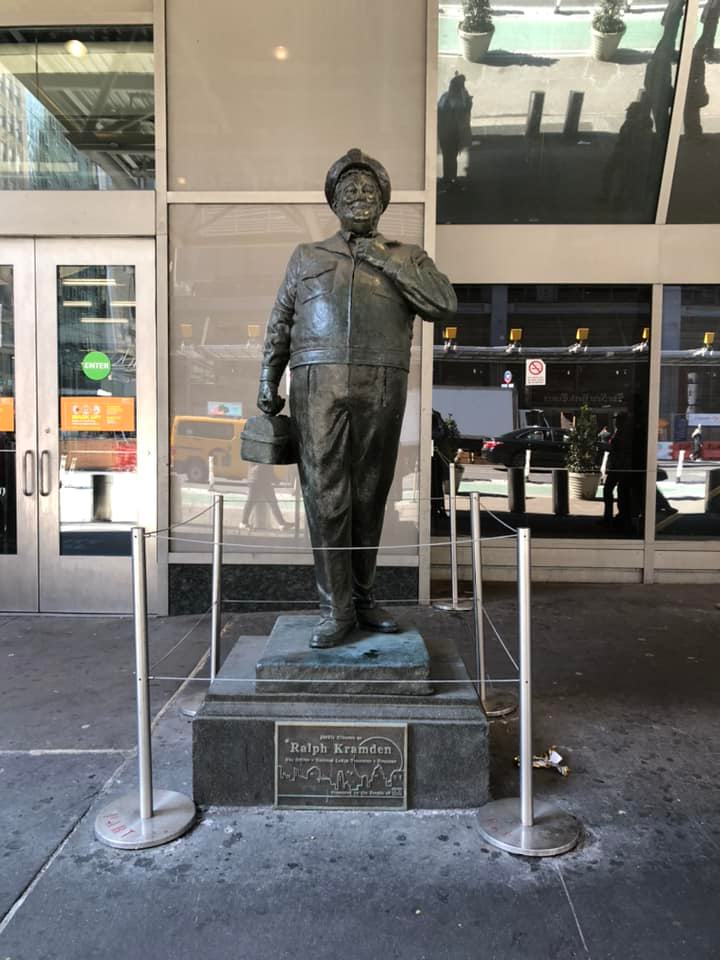 The Ralph Kramden statue was the first statue to be placed by the TV Land Landmarks campaign. As his character in the hit sitcom is a bus driver in New York City, this bronze statue was placed at the Port Authority Bus Terminal.