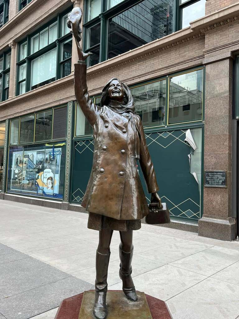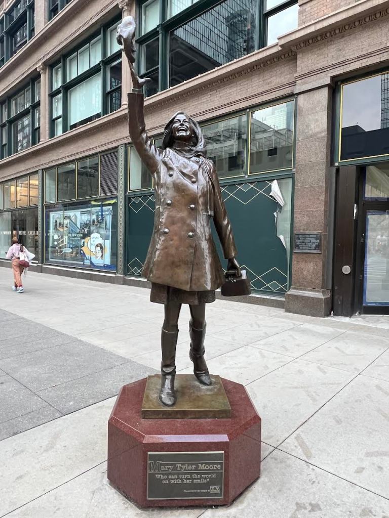 The show features Mary Tyler Moore’s character, Mary Richards, moving to Minneapolis and becoming an associate producer of the evening news on a local station. The last shot of the opening features Moore in an iconic pose, throwing her beret into the air. The statue was placed at the location in which this scene was filmed.
