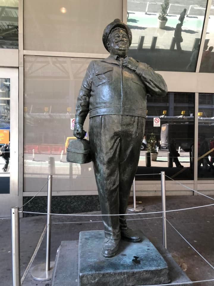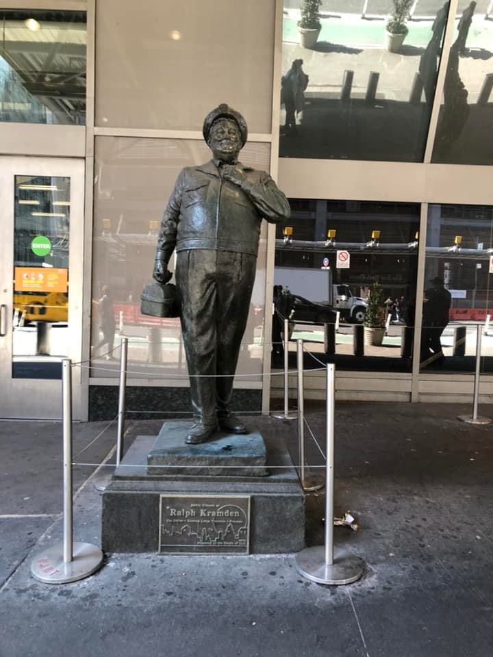 The Ralph Kramden statue was the first statue to be placed by the TV Land Landmarks campaign. As his character in the hit sitcom is a bus driver in New York City, this bronze statue was placed at the Port Authority Bus Terminal.