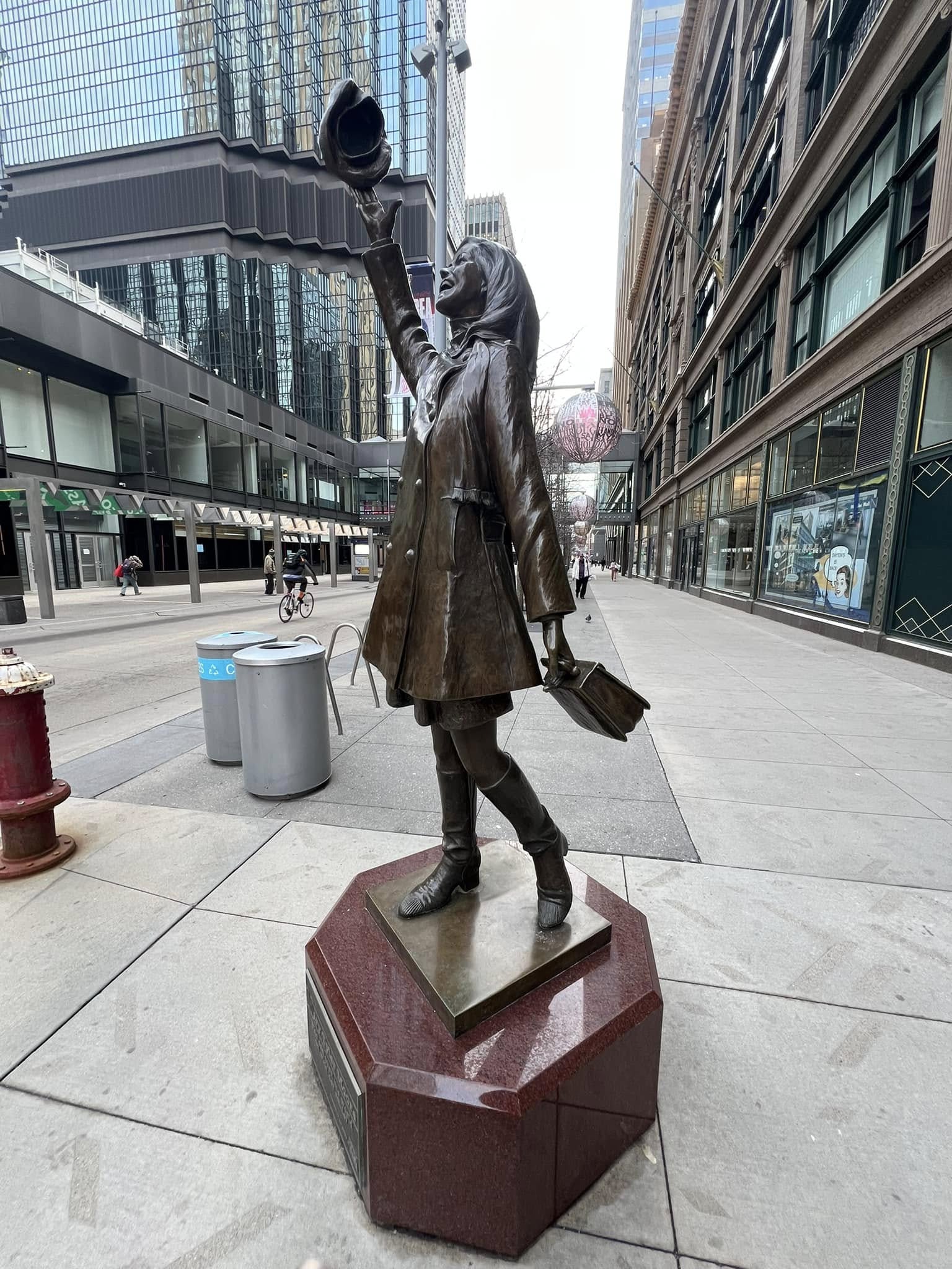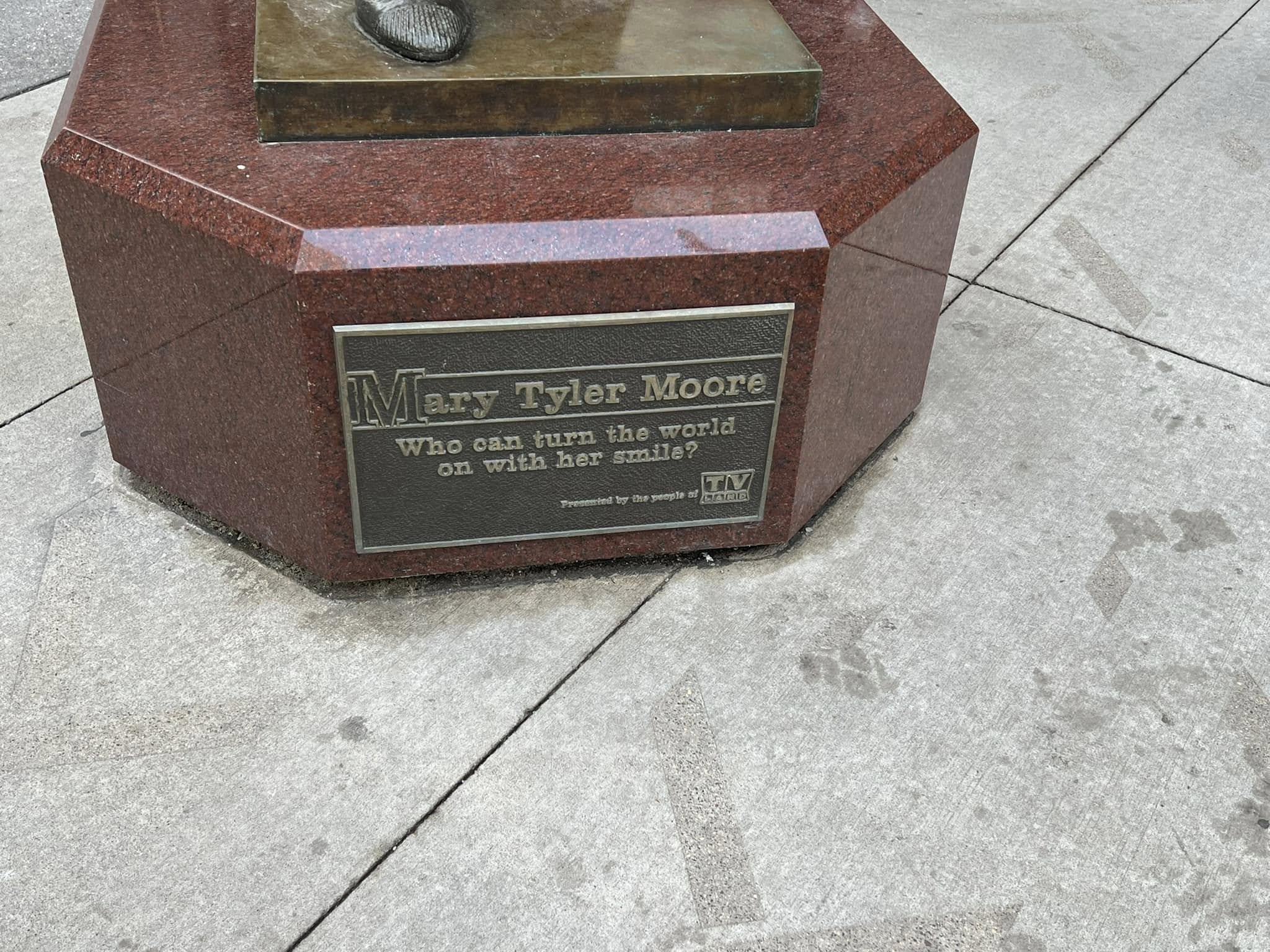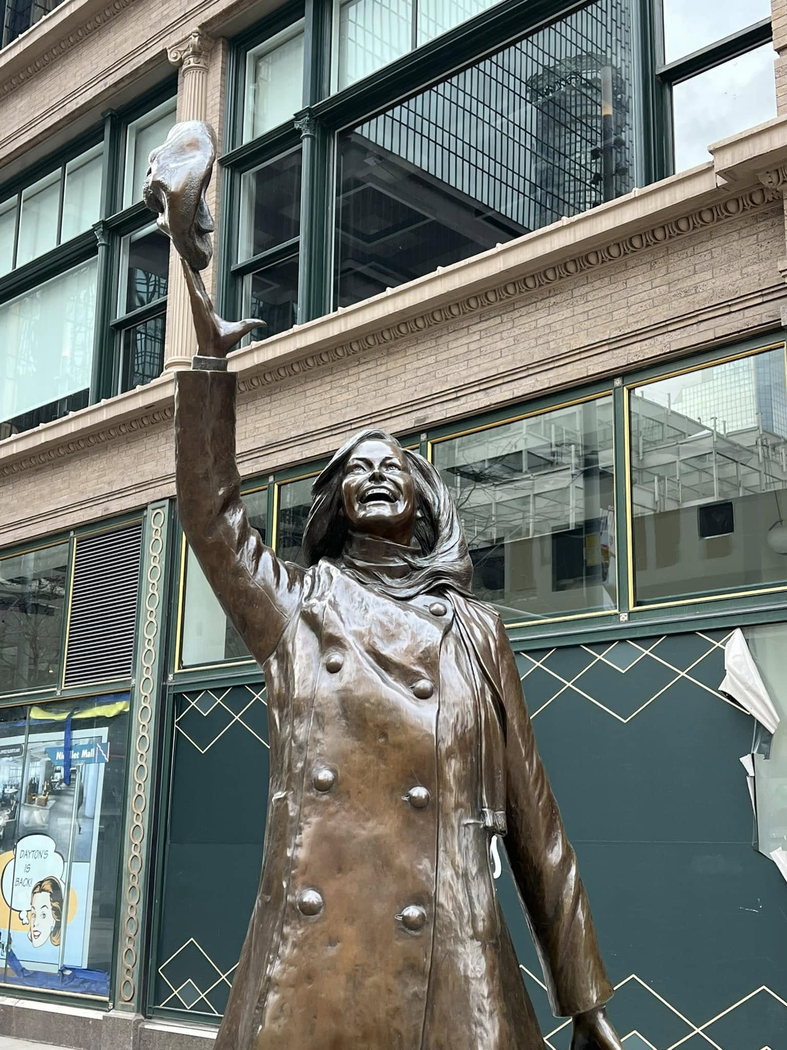 The show features Mary Tyler Moore’s character, Mary Richards, moving to Minneapolis and becoming an associate producer of the evening news on a local station. The last shot of the opening features Moore in an iconic pose, throwing her beret into the air. The statue was placed at the location in which this scene was filmed.