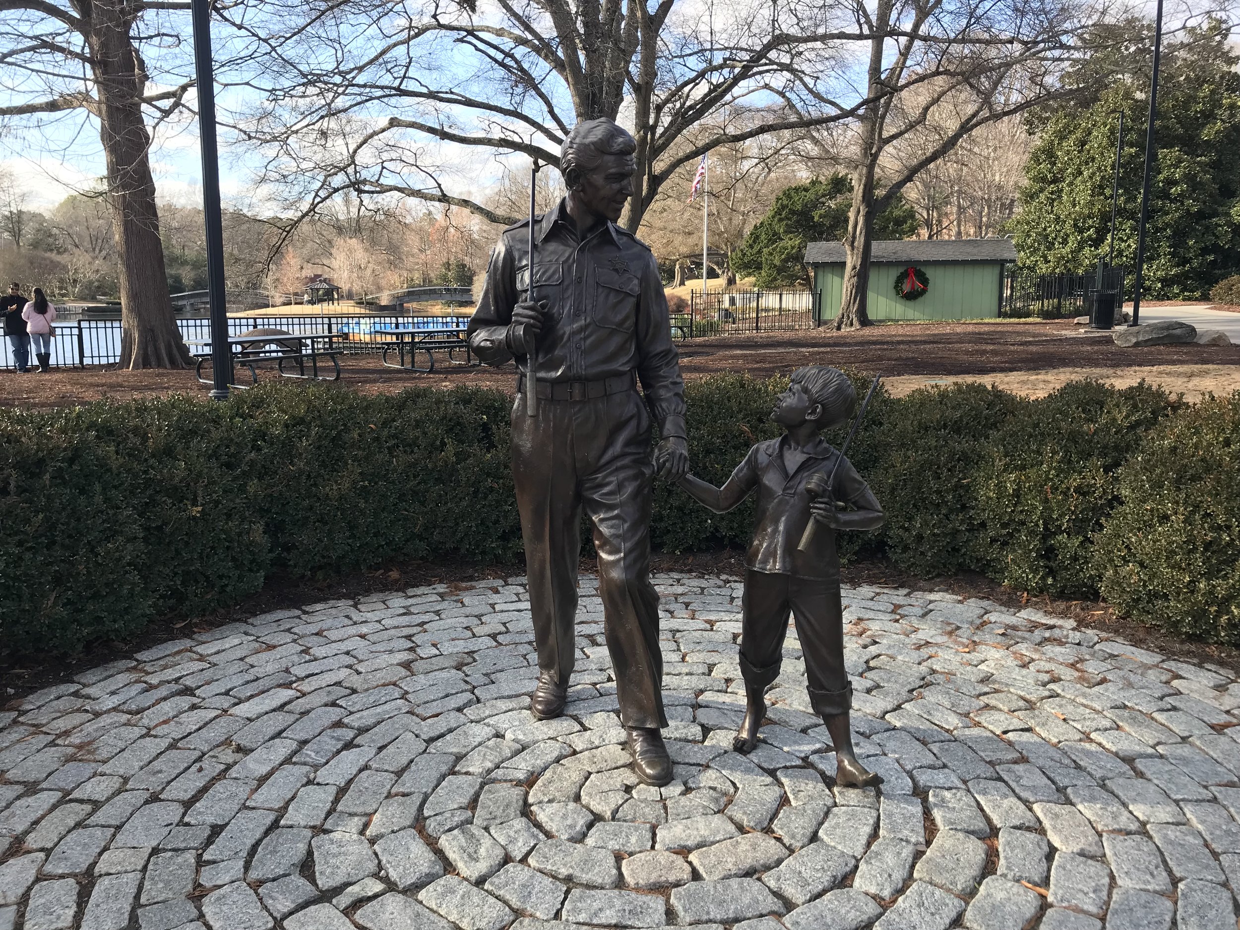 In 2003, TV Land dedicated an Andy Griffith Show statue in Raleigh, NC, showcasing the fishing scene that happens in the show’s opening credits. However, the people of Mount Airy–the town that inspired Mayberry–and Andy Griffith himself objected to the statue’s placement in Raleigh, which brings us to…