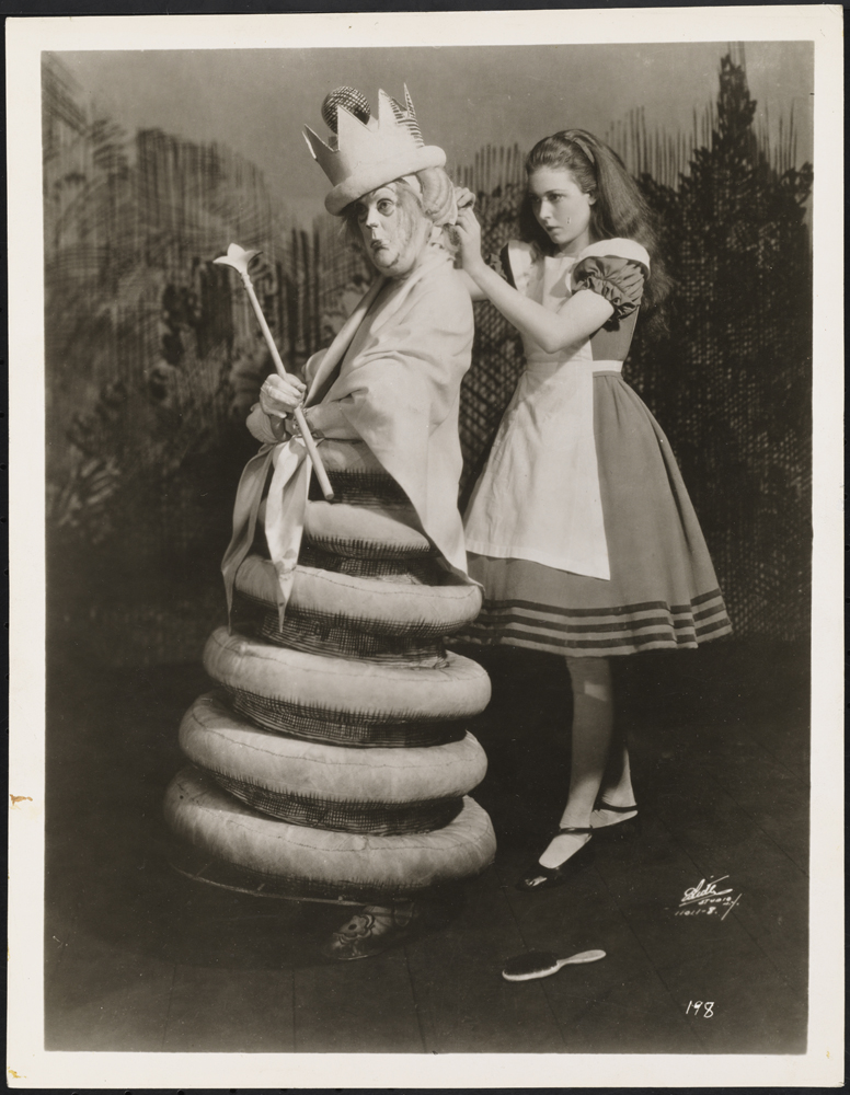 [Eva Le Gallienne as the White Queen and Josephine Hutchinson as