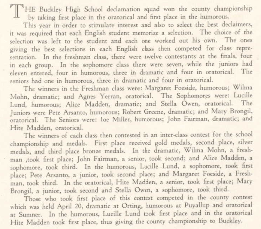 In the 1920s and early 1930s, Lund and her family lived at 1506 A St., Buckley, Washington. The home no longer stands.